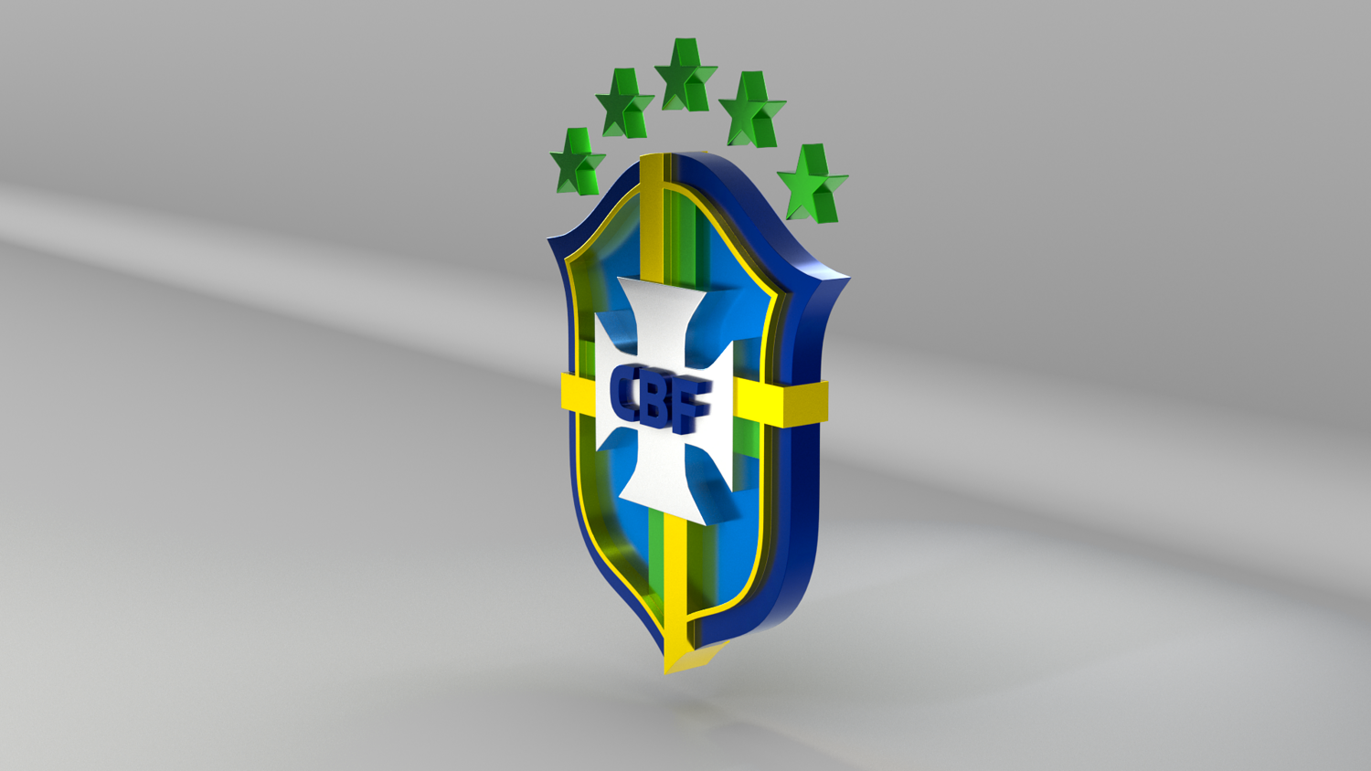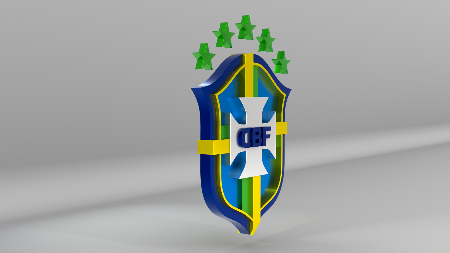 "Brazil National Soccer Team Logo, modeled and rendered in Maya using Redshift, PBR Textures included (BaseColor, Metallic, Roughness and Normal Maps).