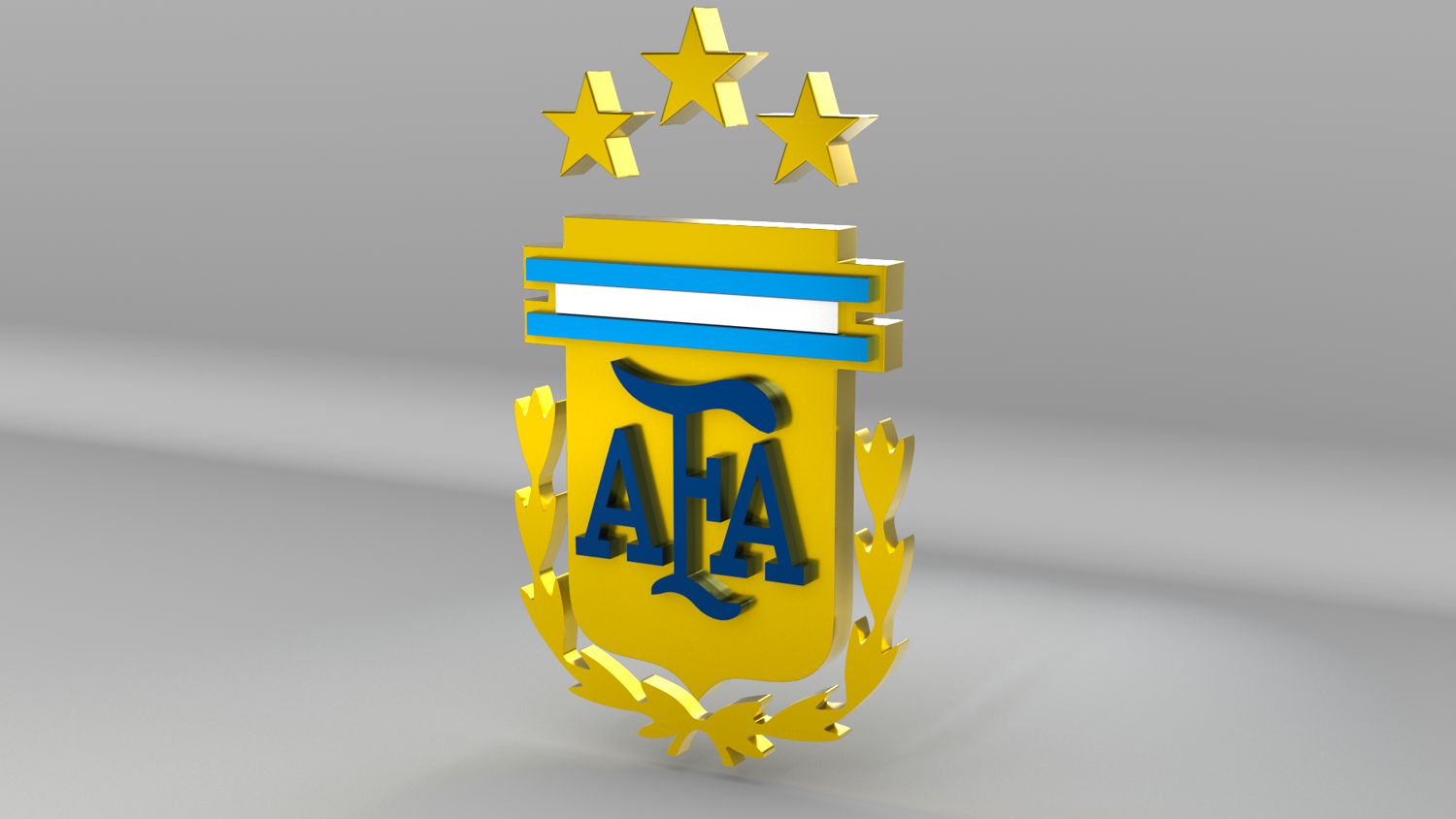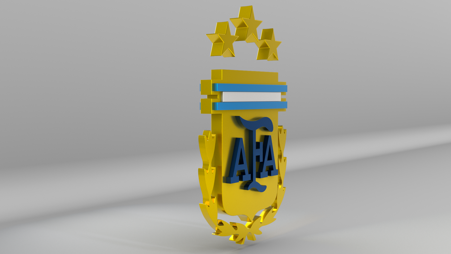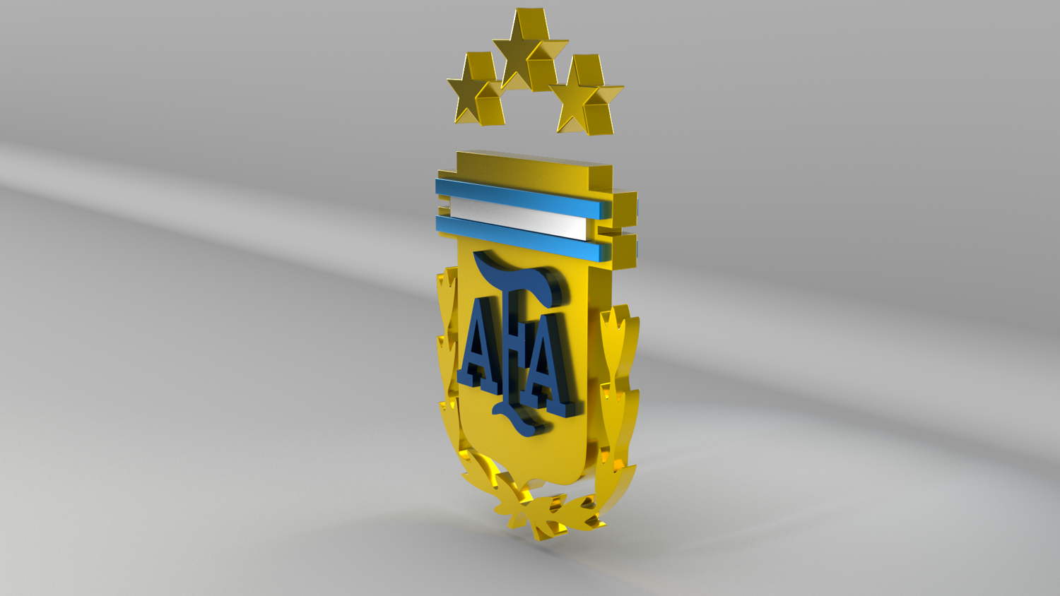 "Argentina National Soccer Team Logo, modeled and rendered in Maya using Redshift, PBR Textures included (BaseColor, Metallic, Roughness and Normal Maps).