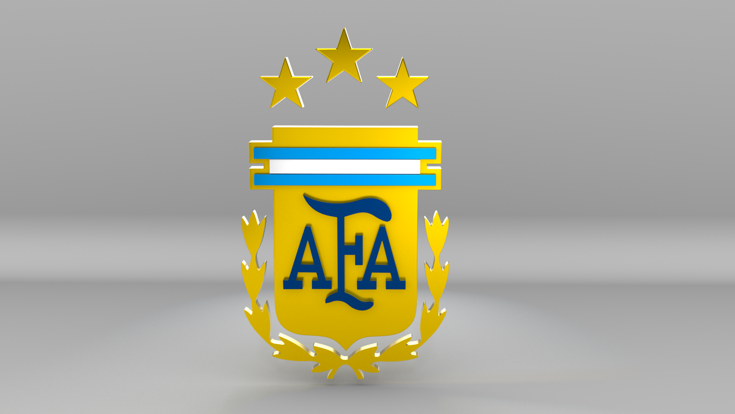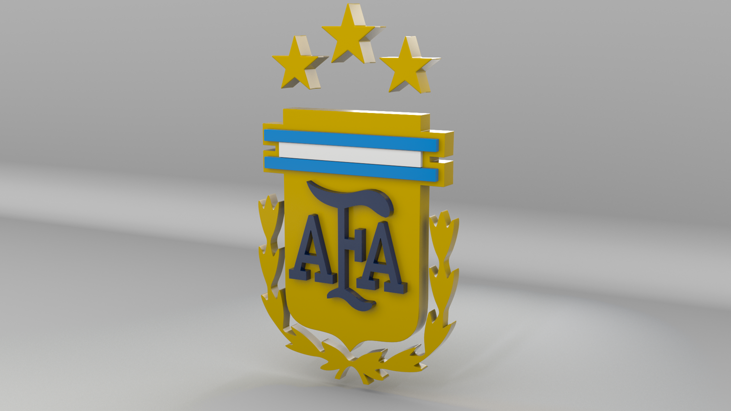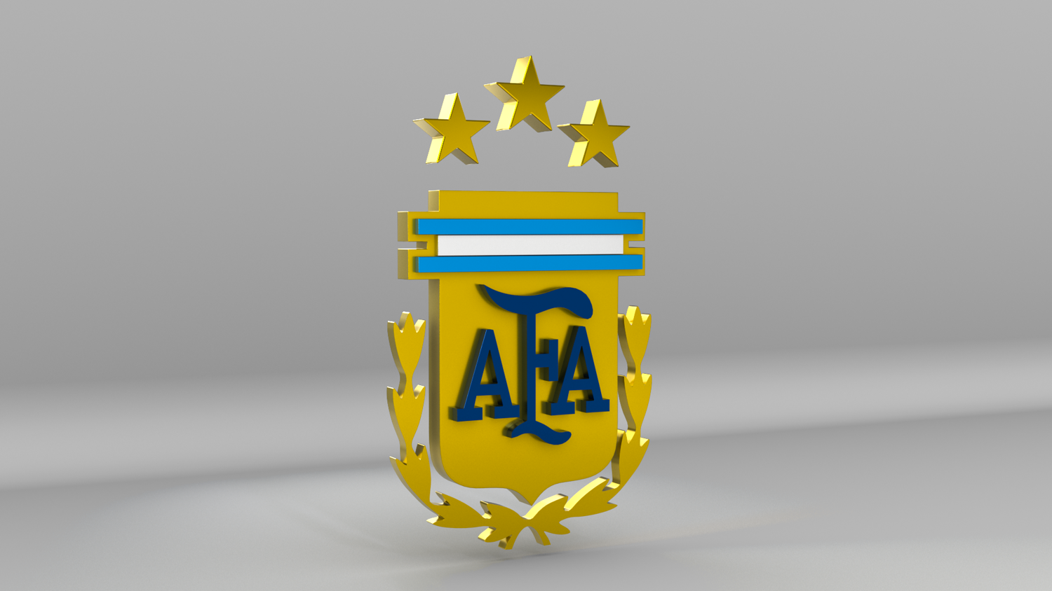 "Argentina National Soccer Team Logo, modeled and rendered in Maya using Redshift, PBR Textures included (BaseColor, Metallic, Roughness and Normal Maps).