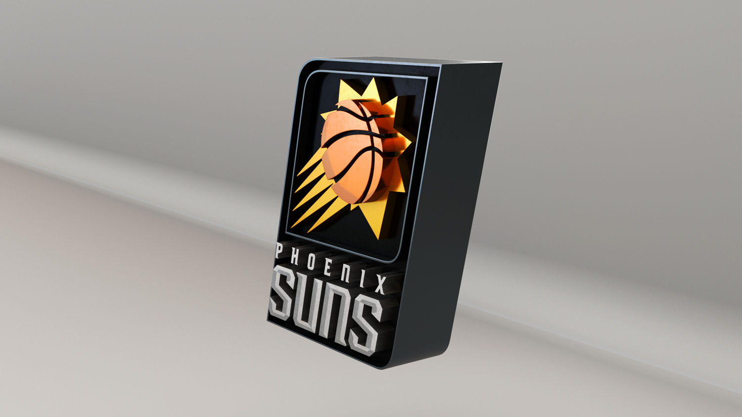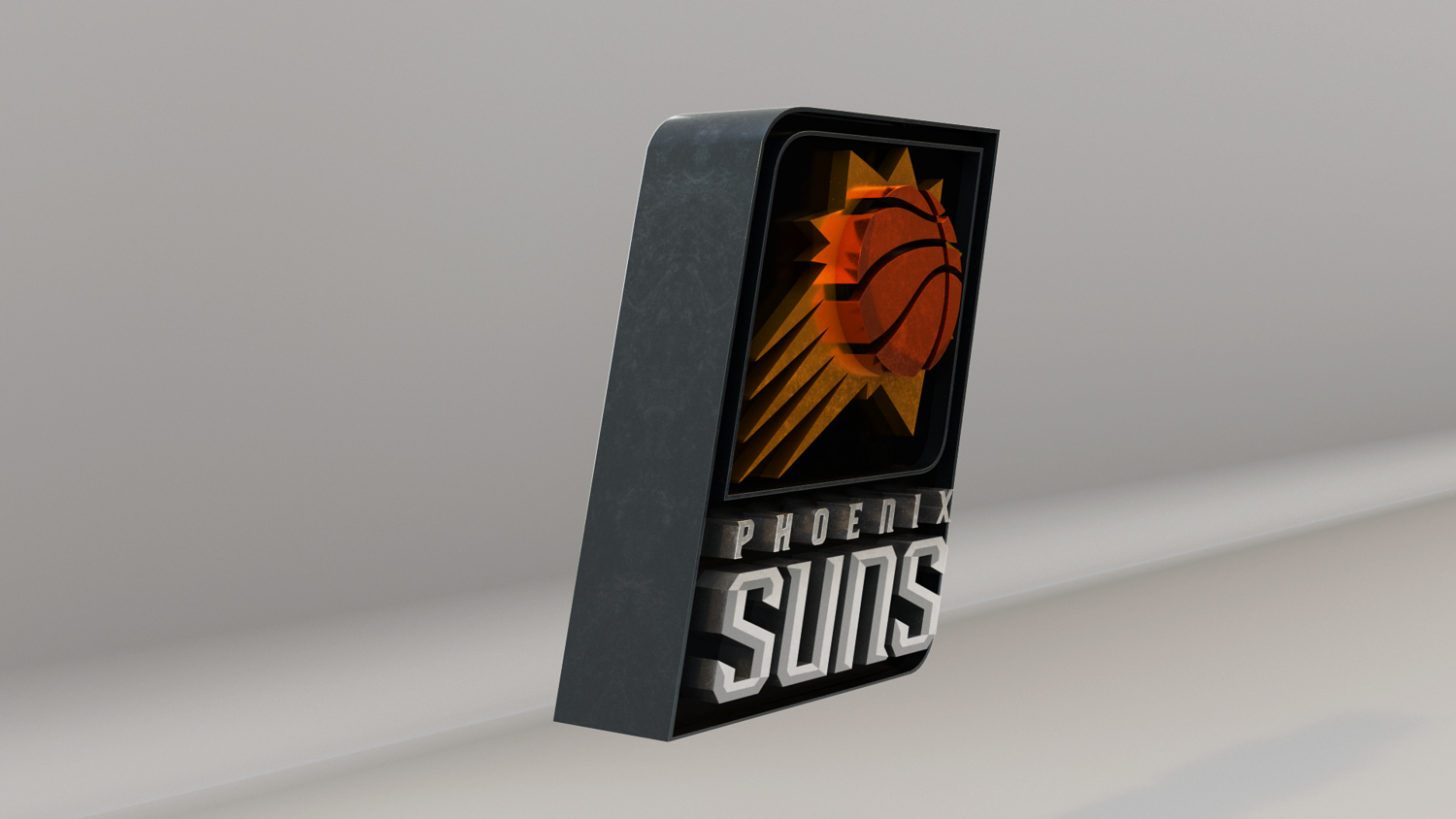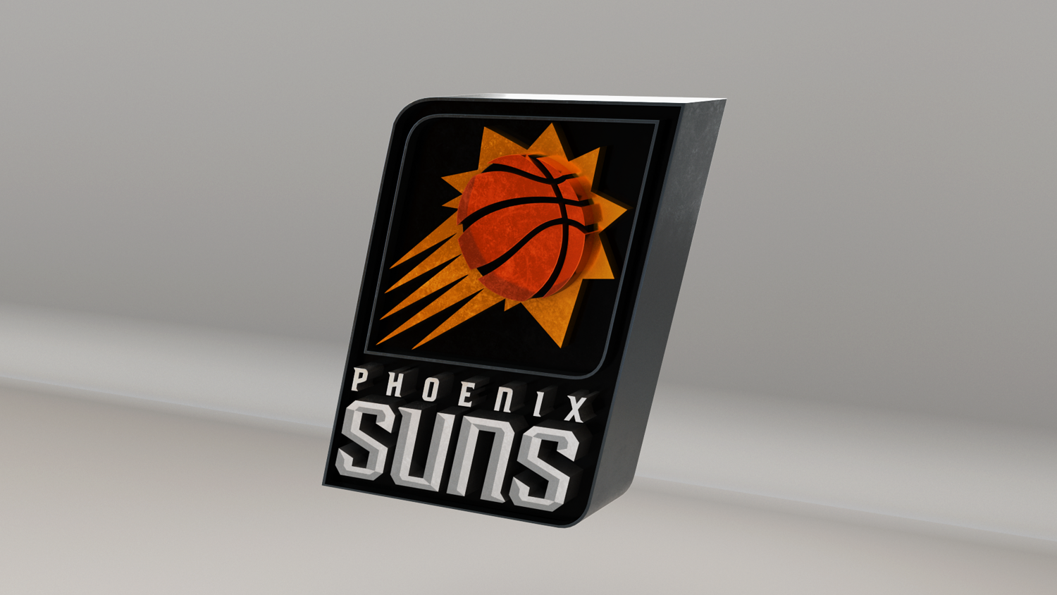 NBA Phoenix Suns Team Logo, modeled and rendered in Maya using Redshift and textured in Substance Painter. It contains a base color and a packed metallic, roughness and AO. The renders are using the metallic texture, but if you don't use it you have the logo with it's original color, like the last picture.