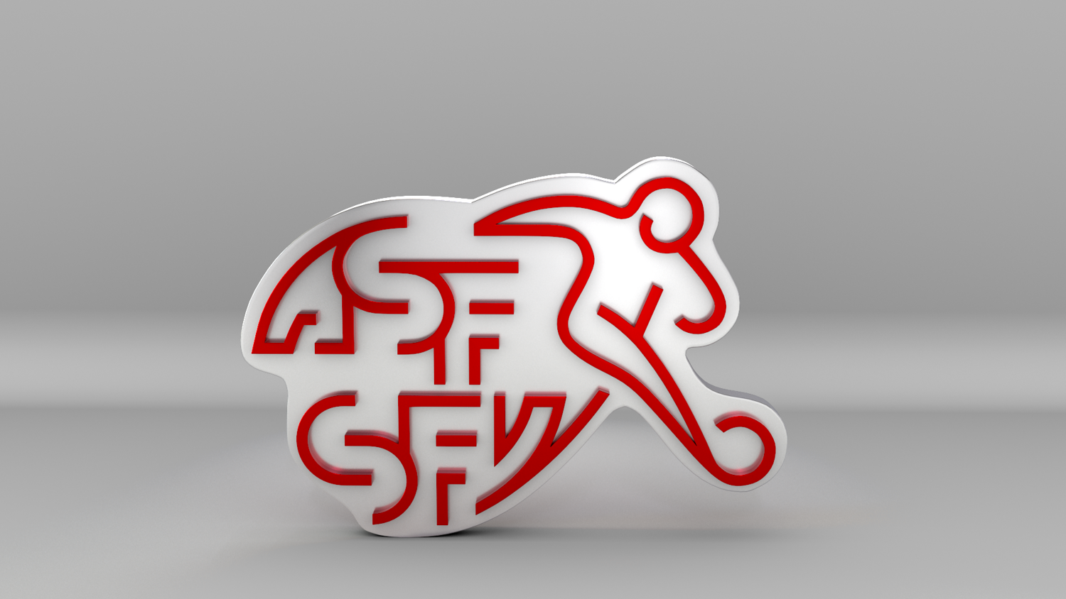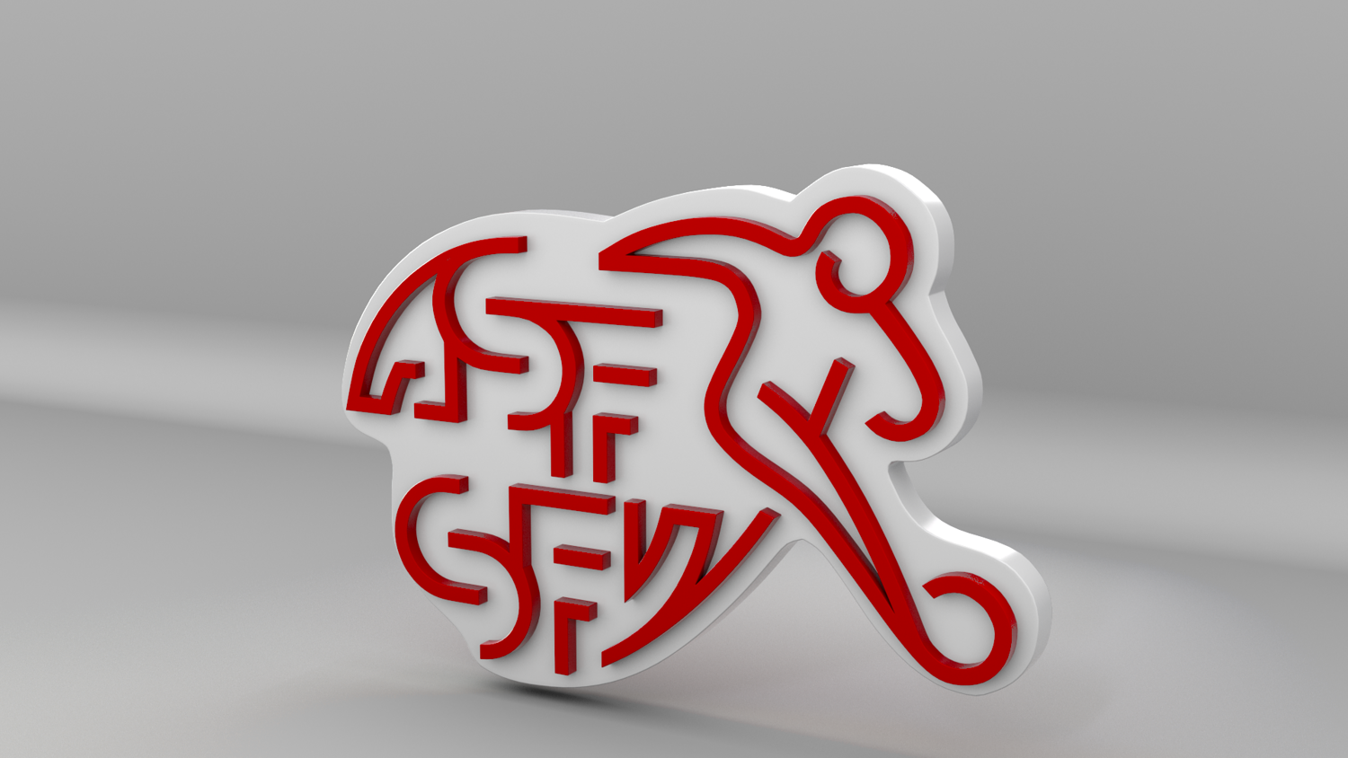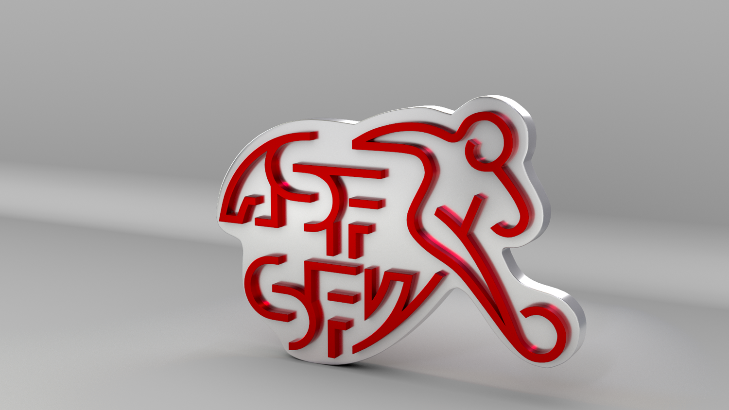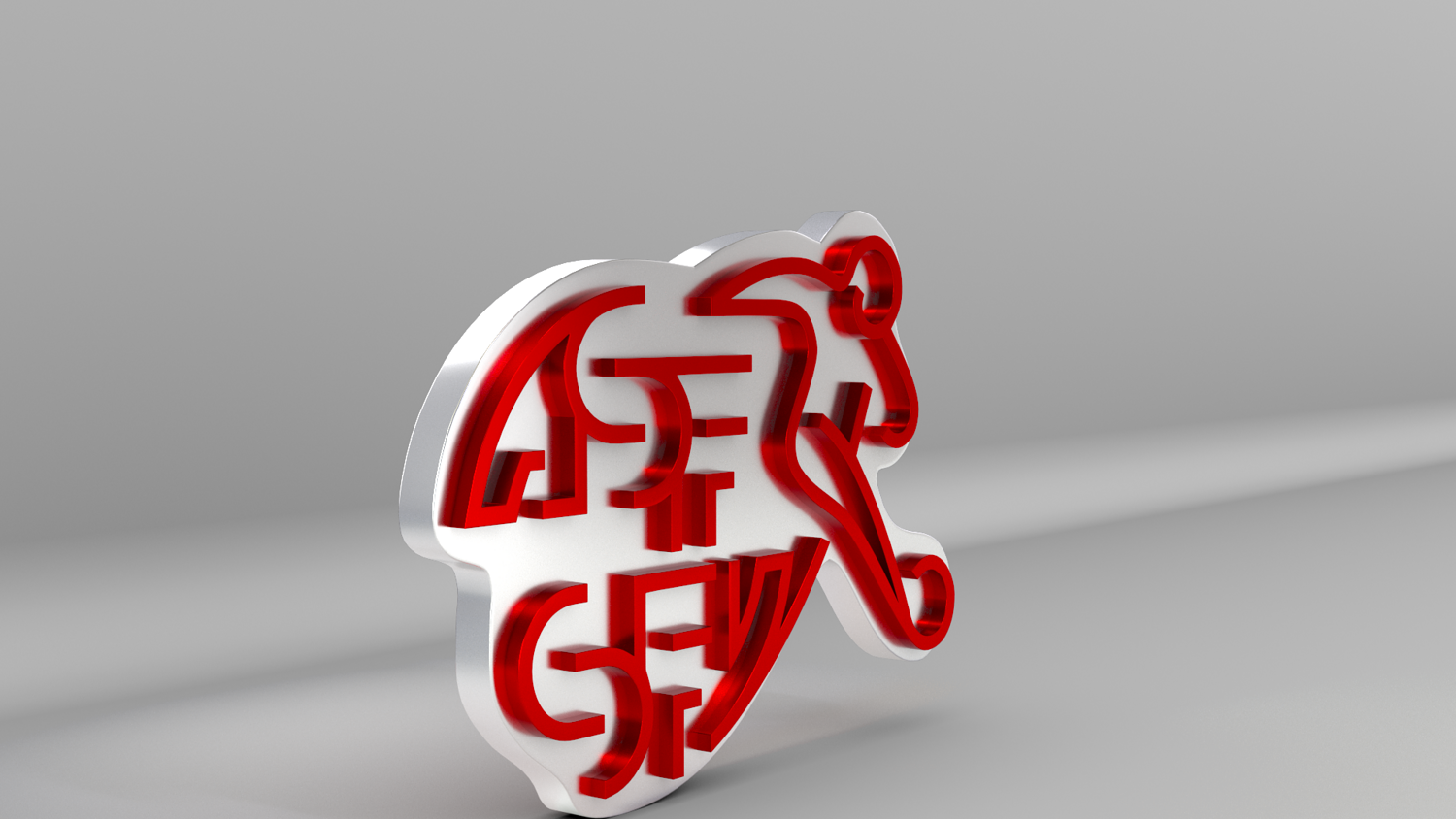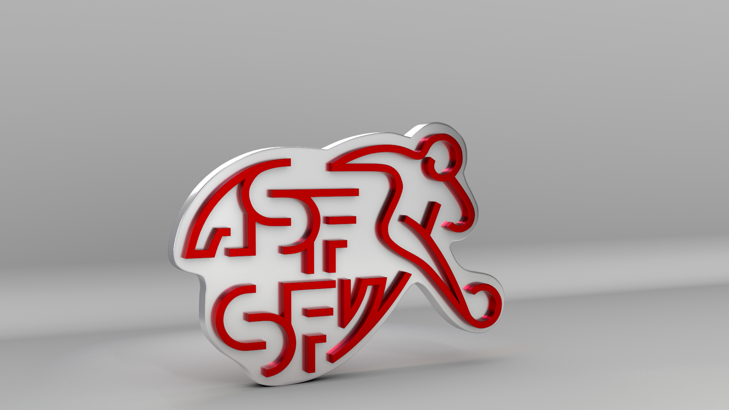 "Switzerland National Soccer Team Logo, modeled and rendered in Maya using Redshift, PBR Textures included (BaseColor, Metallic, Roughness and Normal Maps).