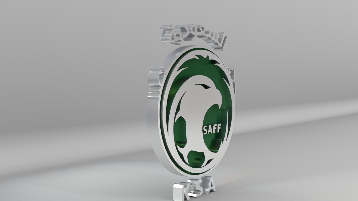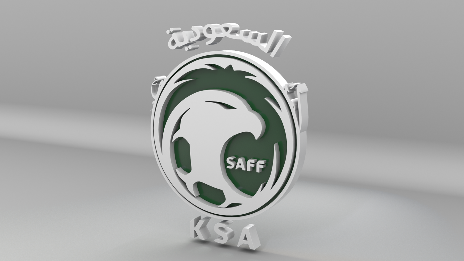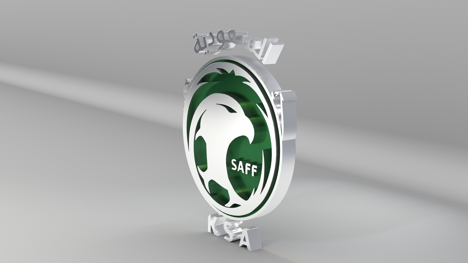 "Saudi Arabia National Soccer Team Logo, modeled and rendered in Maya using Redshift, PBR Textures included (BaseColor, Metallic, Roughness and Normal Maps).