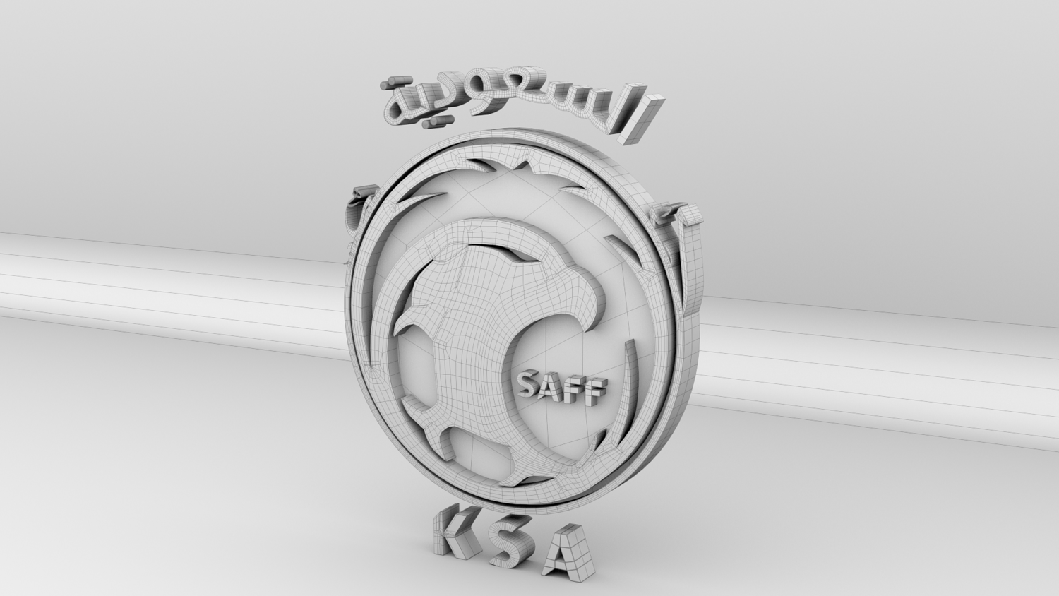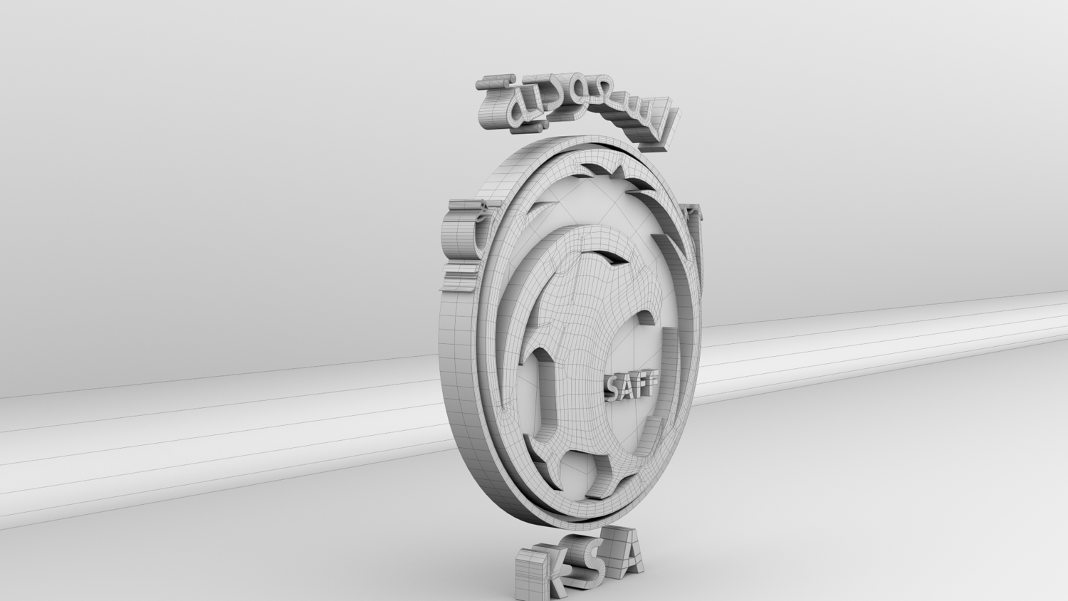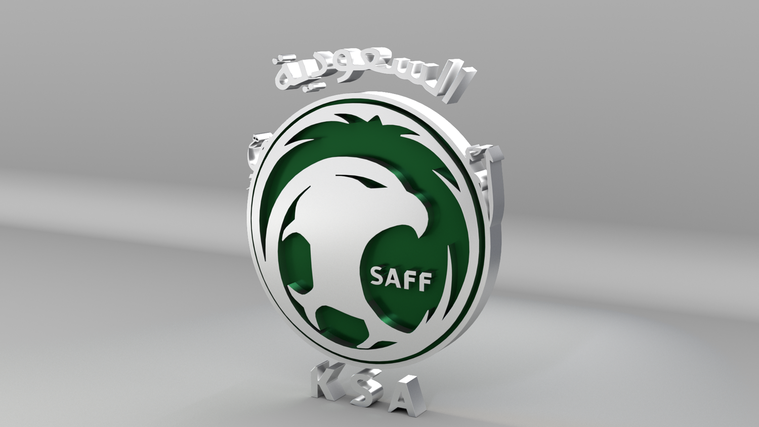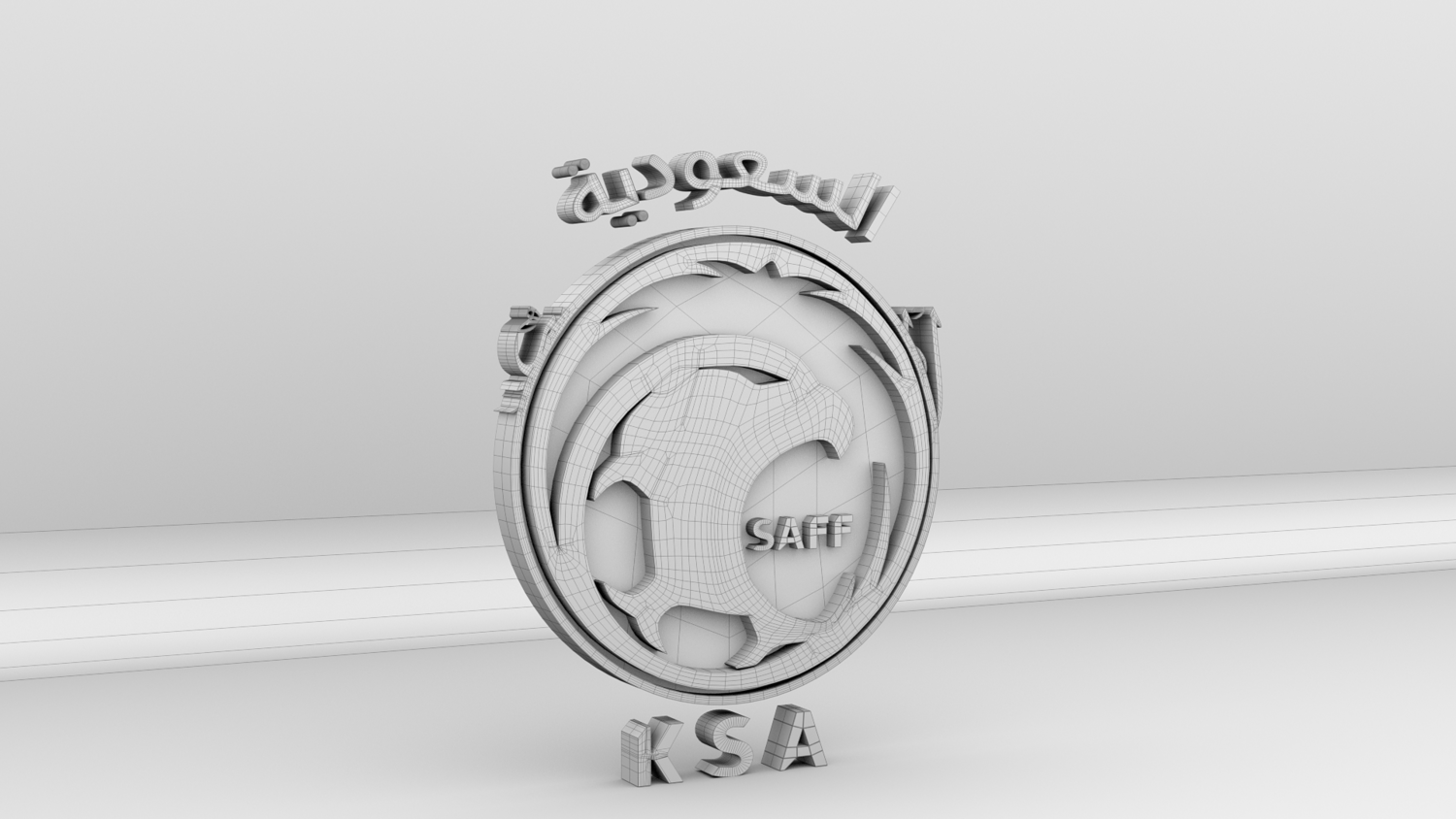 "Saudi Arabia National Soccer Team Logo, modeled and rendered in Maya using Redshift, PBR Textures included (BaseColor, Metallic, Roughness and Normal Maps).