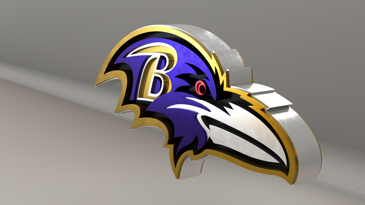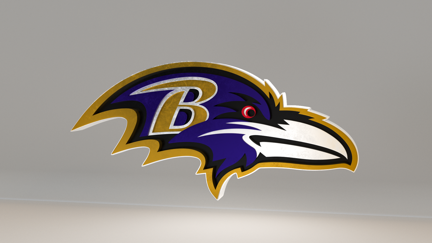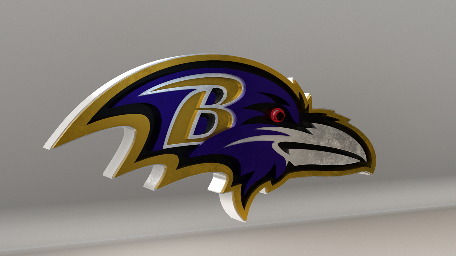 NFL Baltimore Ravens Logo, modeled and rendered in Maya using Redshift and textured in Substance Painter. It contains a base color and a packed metallic, roughness and AO. The renders are using the metallic texture, but if you don't use it you have the logo with it's original color, like the last picture.