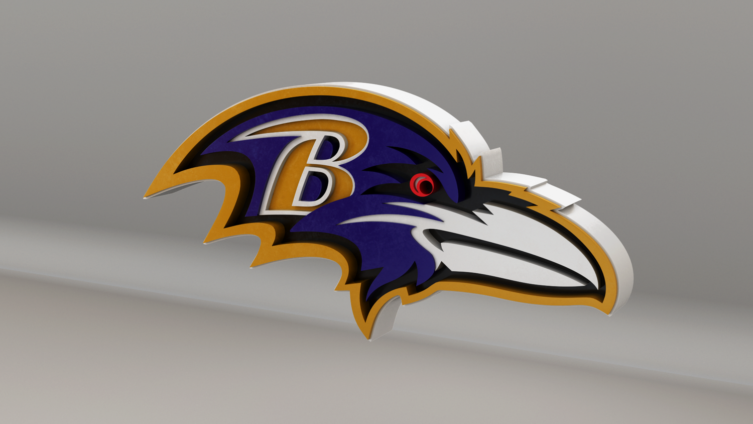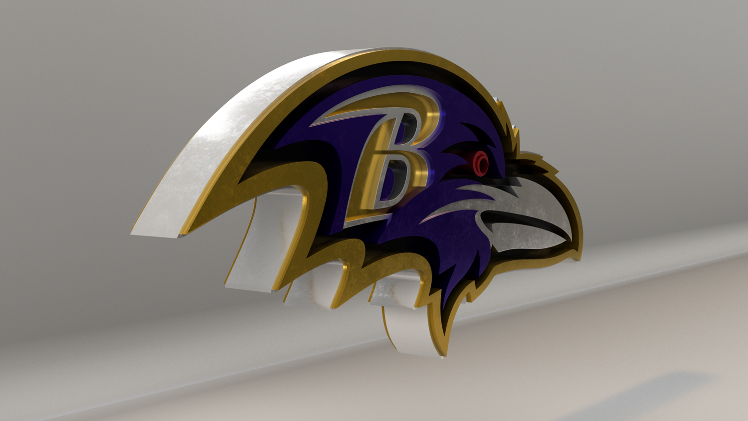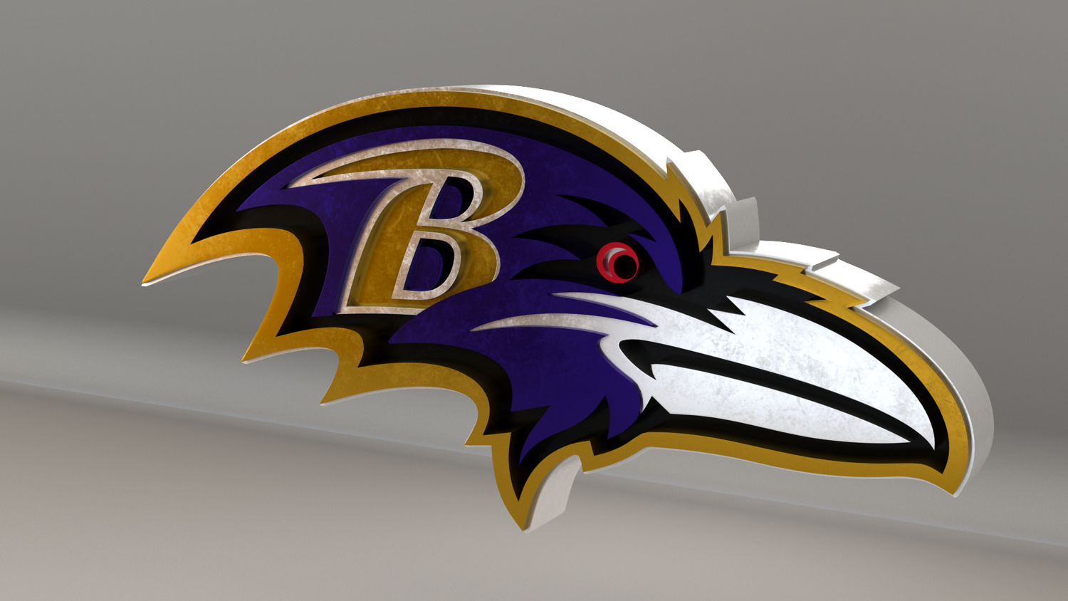 NFL Baltimore Ravens Logo, modeled and rendered in Maya using Redshift and textured in Substance Painter. It contains a base color and a packed metallic, roughness and AO. The renders are using the metallic texture, but if you don't use it you have the logo with it's original color, like the last picture.