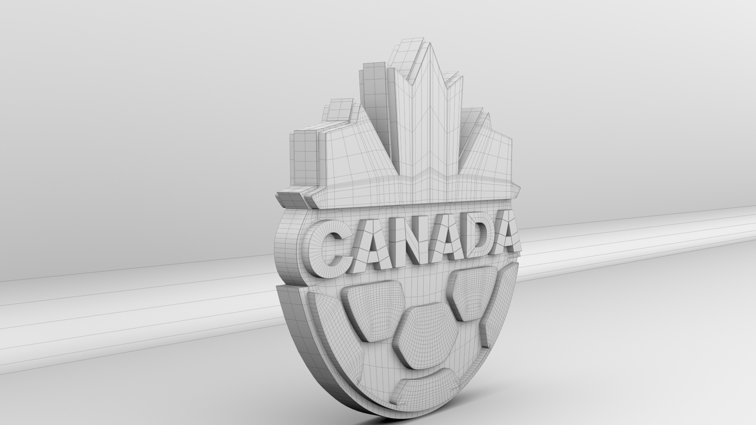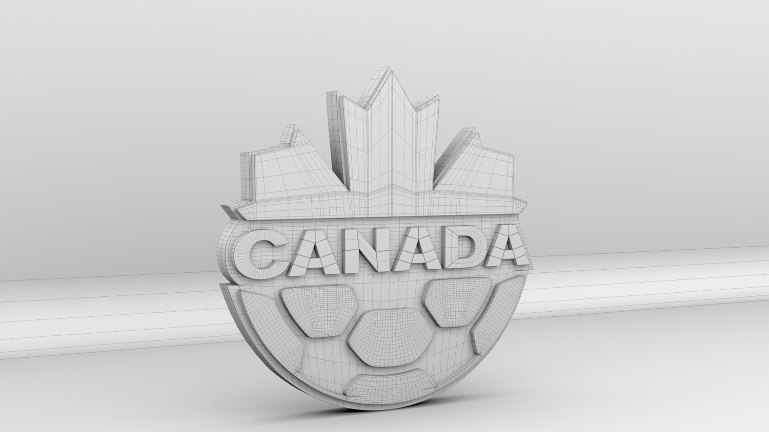 "Canada National Soccer Team Logo, modeled and rendered in Maya using Redshift, PBR Textures included (BaseColor, Metallic, Roughness and Normal Maps).