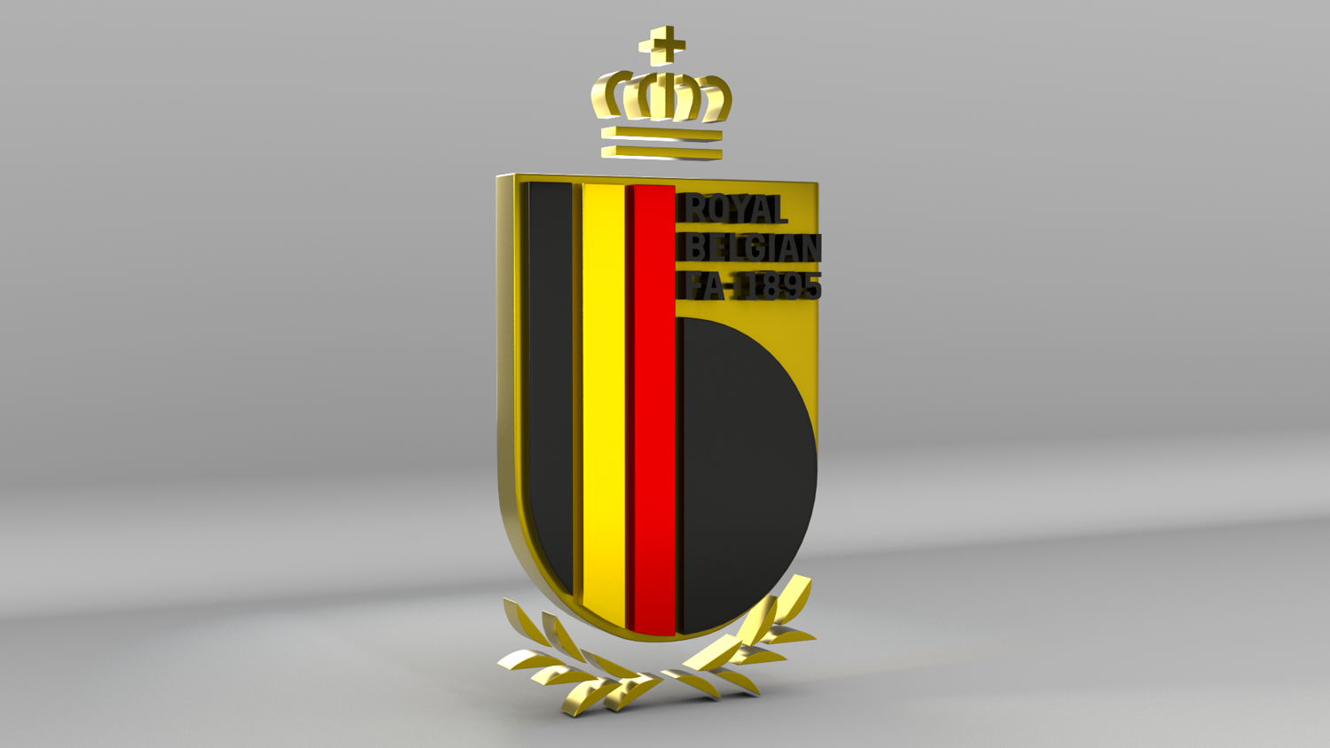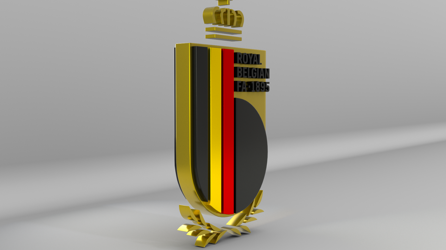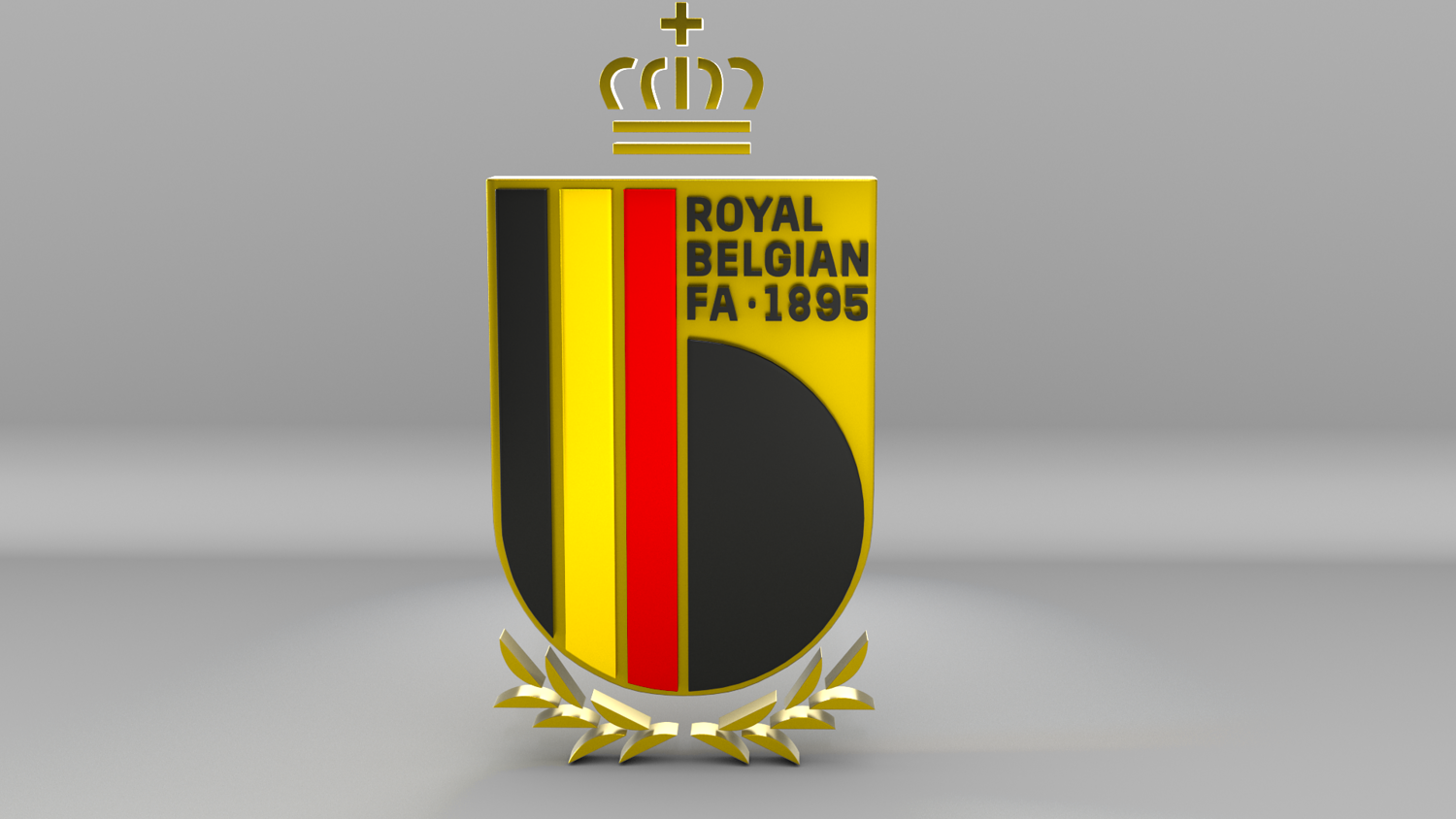 "Belgium National Soccer Team Logo, modeled and rendered in Maya using Redshift, PBR Textures included (BaseColor, Metallic, Roughness and Normal Maps).