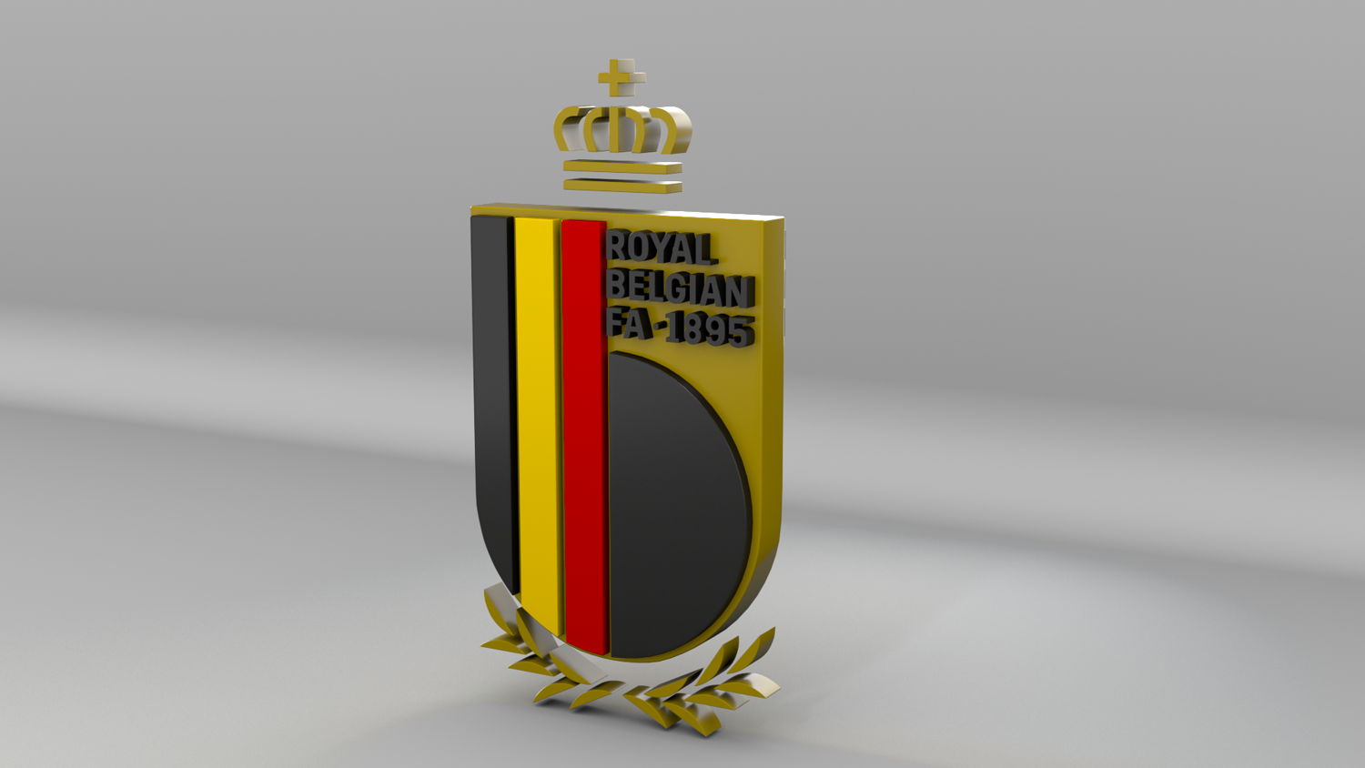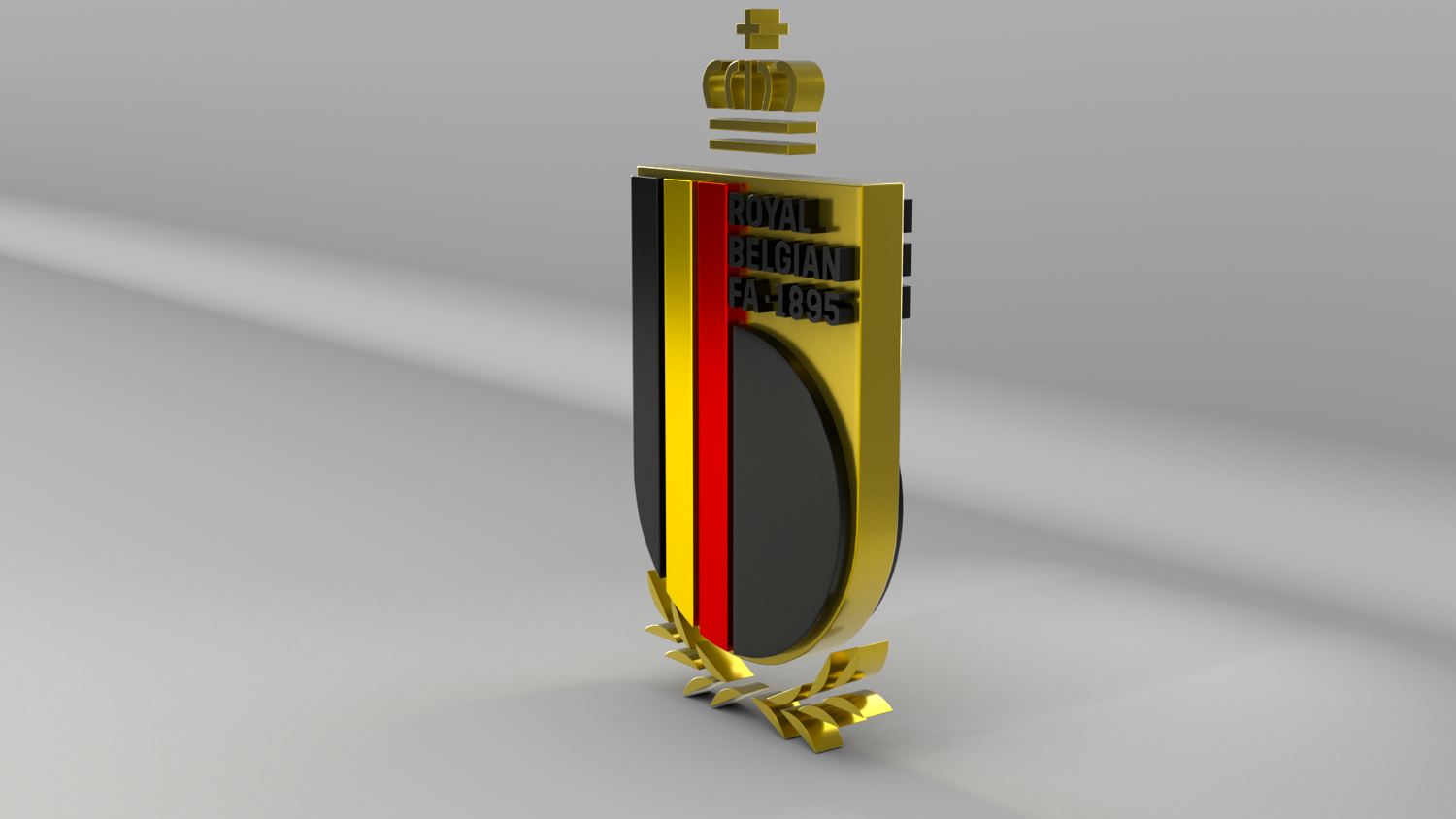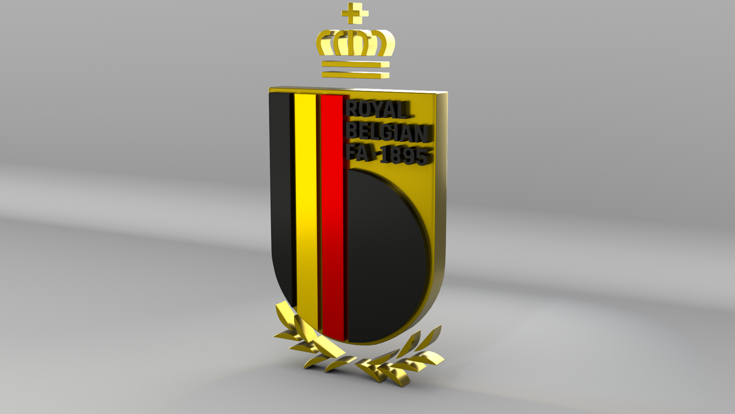 "Belgium National Soccer Team Logo, modeled and rendered in Maya using Redshift, PBR Textures included (BaseColor, Metallic, Roughness and Normal Maps).