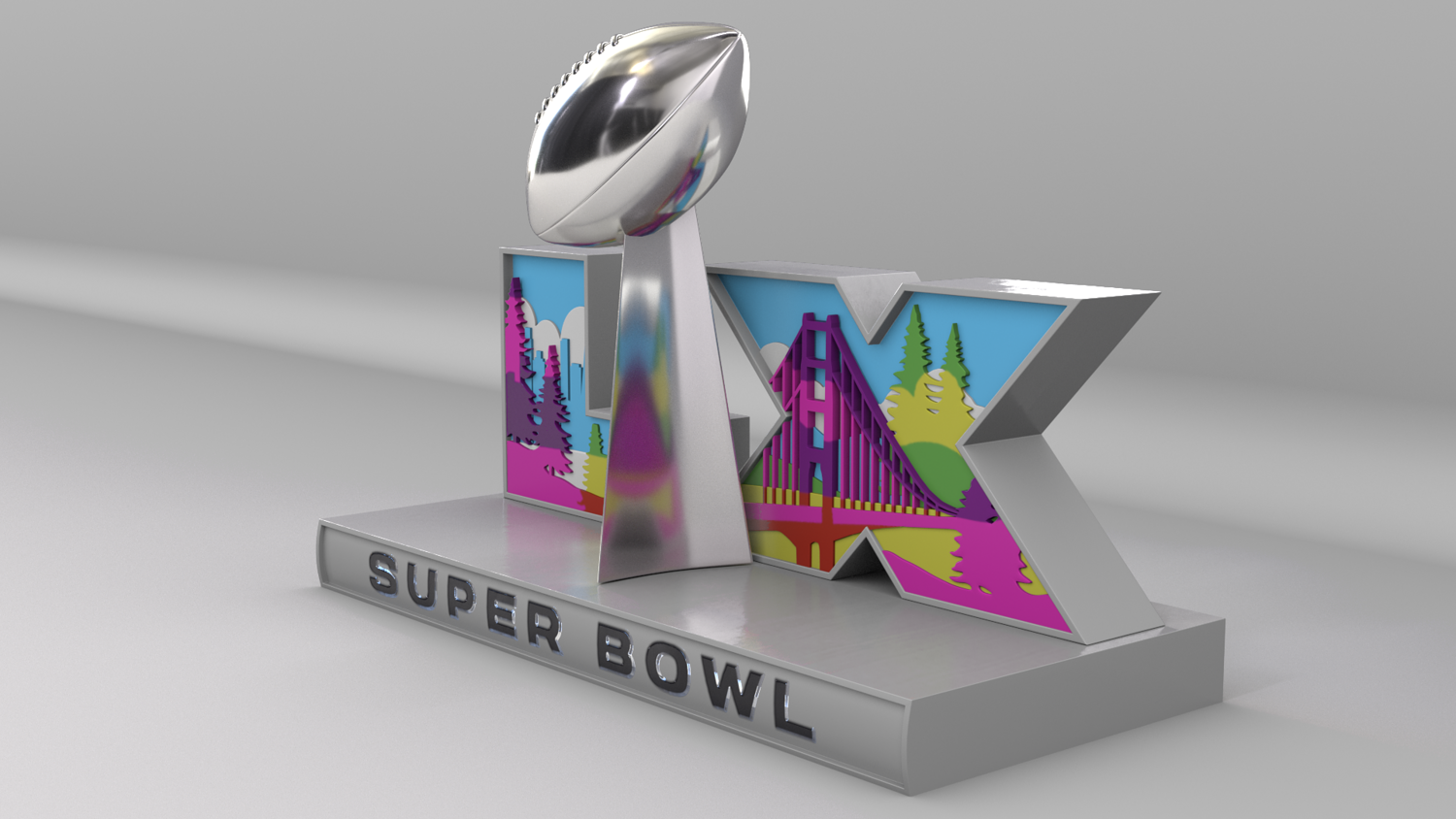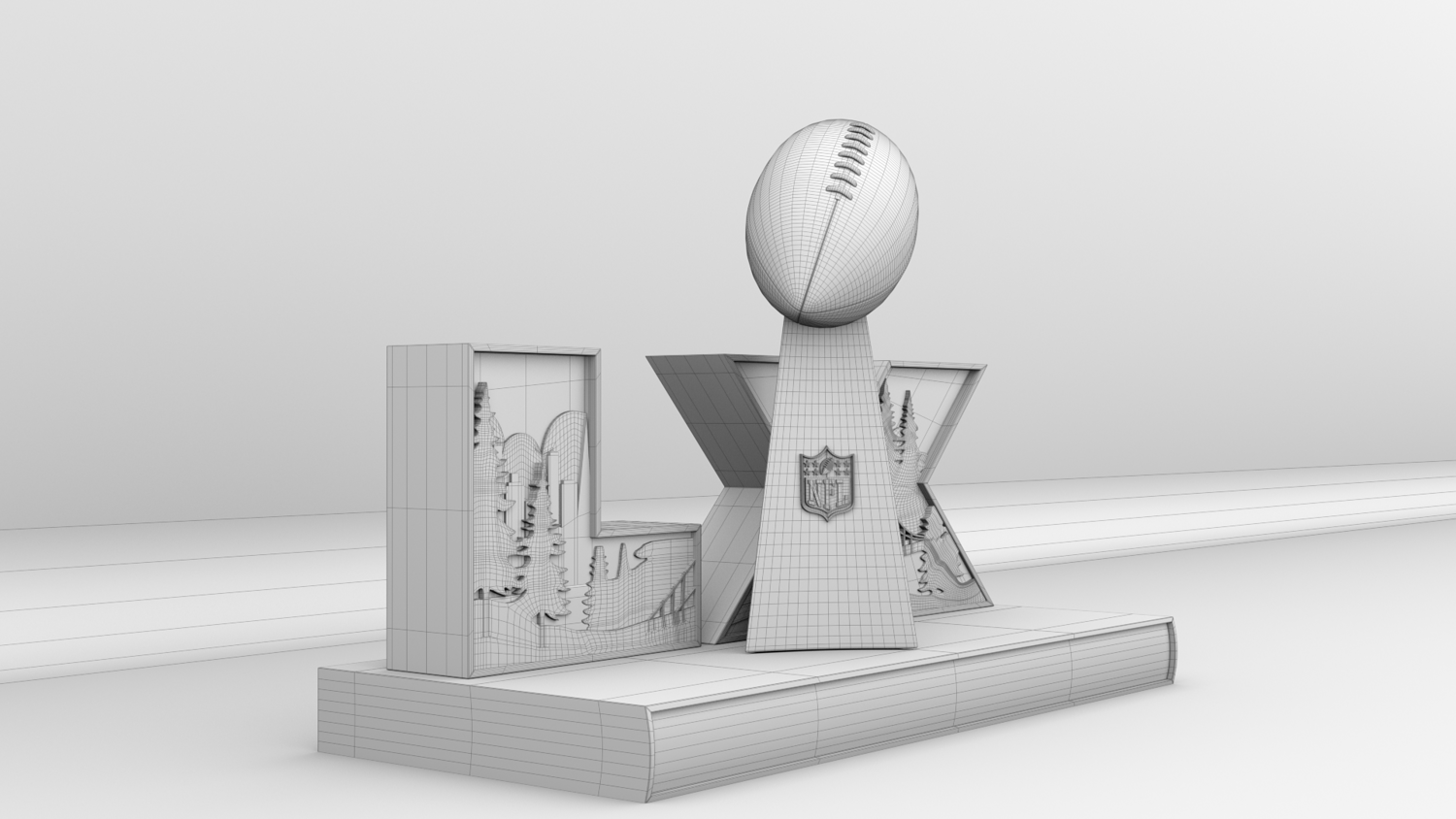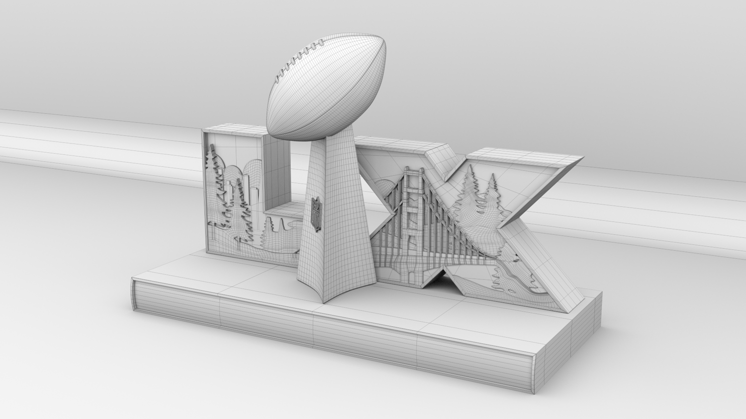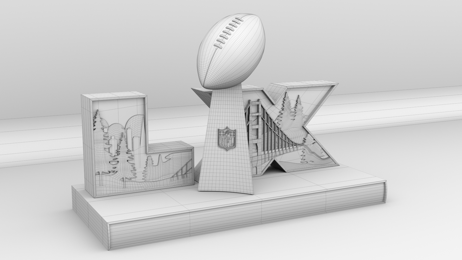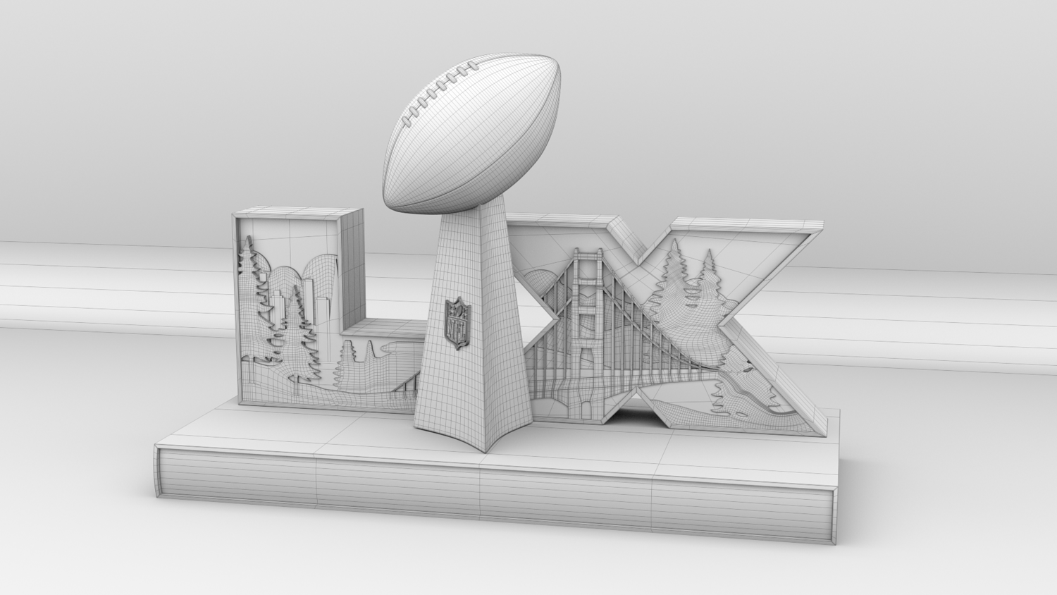 This is the 3d representation of the Superbowl LIX logo. It contains PBR textures (Color, Metallic, Roughness, and Normal maps) . Renders were made in Maya using Redshift, textures were painted in Substance Painter.