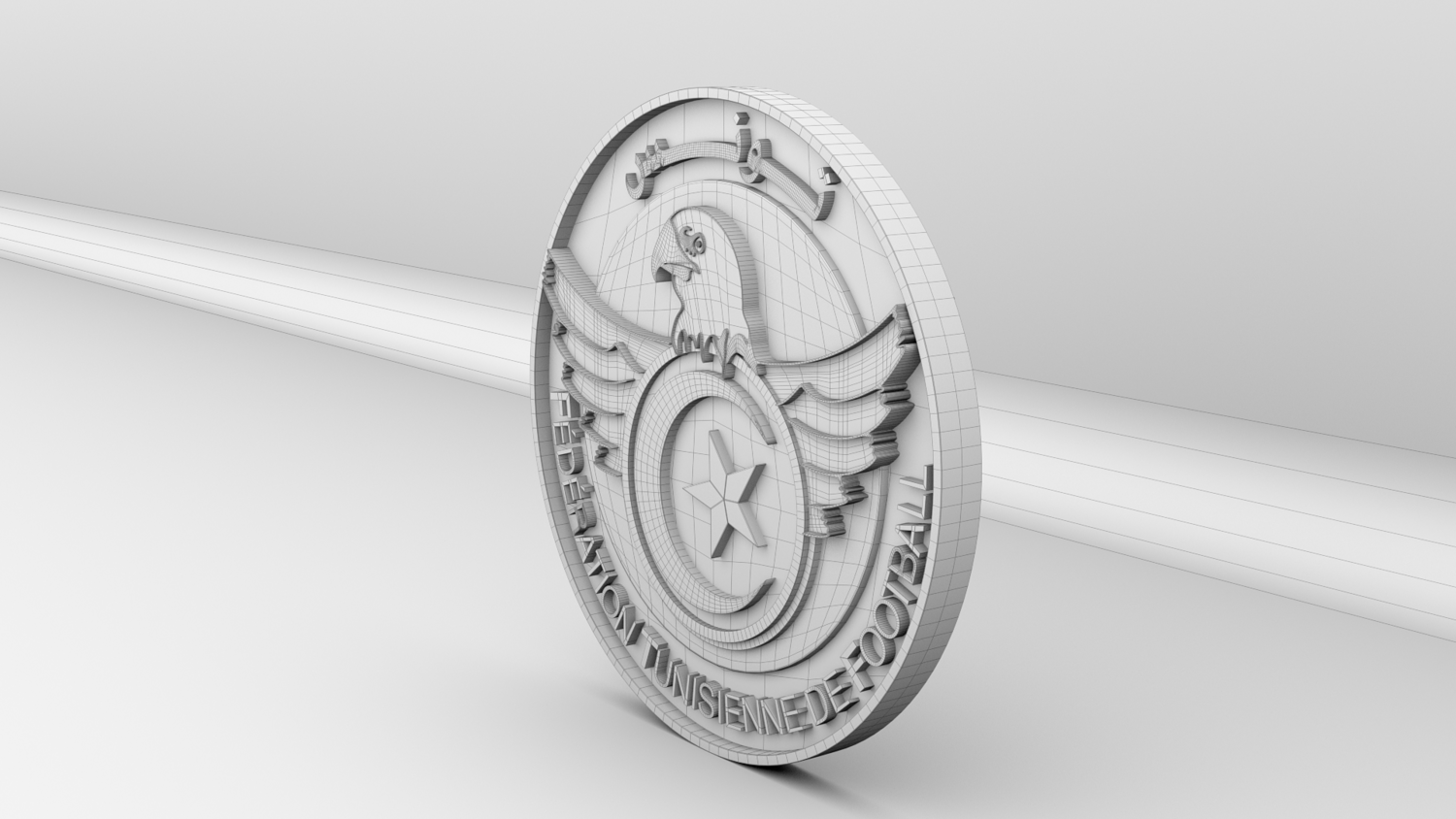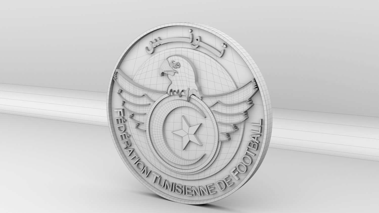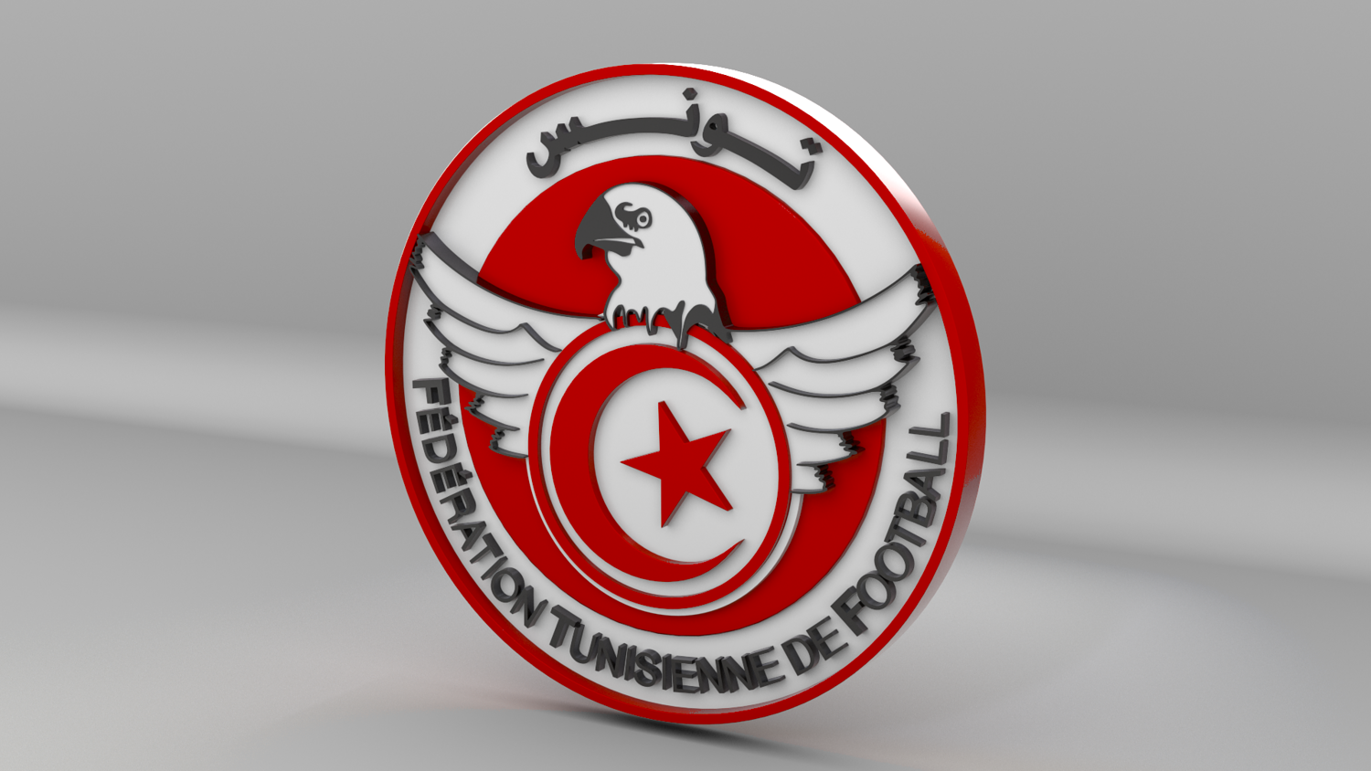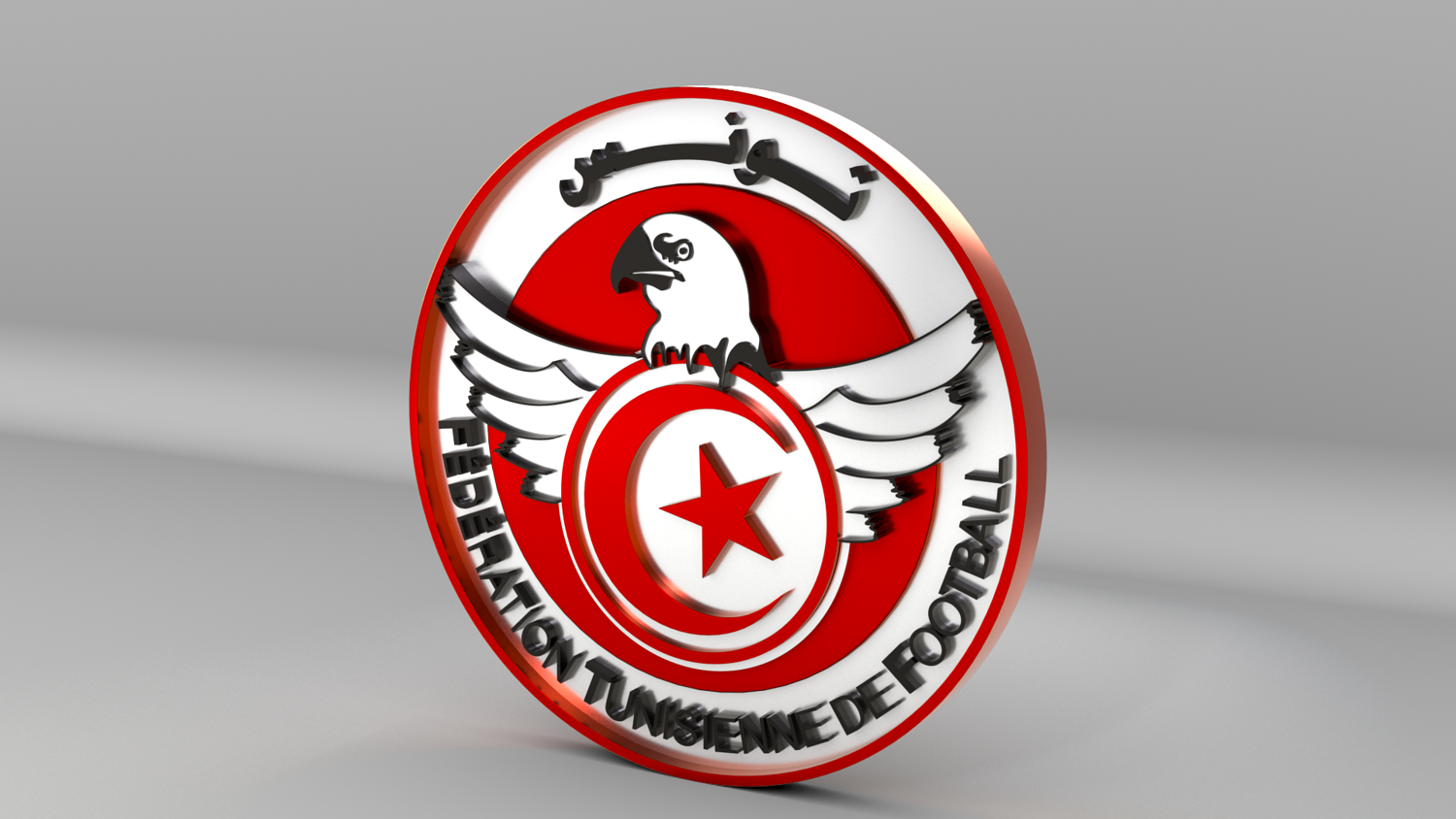 "Tunisia National Soccer Team Logo, modeled and rendered in Maya using Redshift, PBR Textures included (BaseColor, Metallic, Roughness and Normal Maps).
