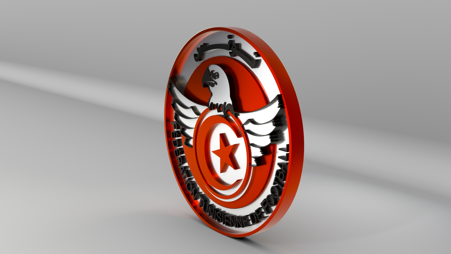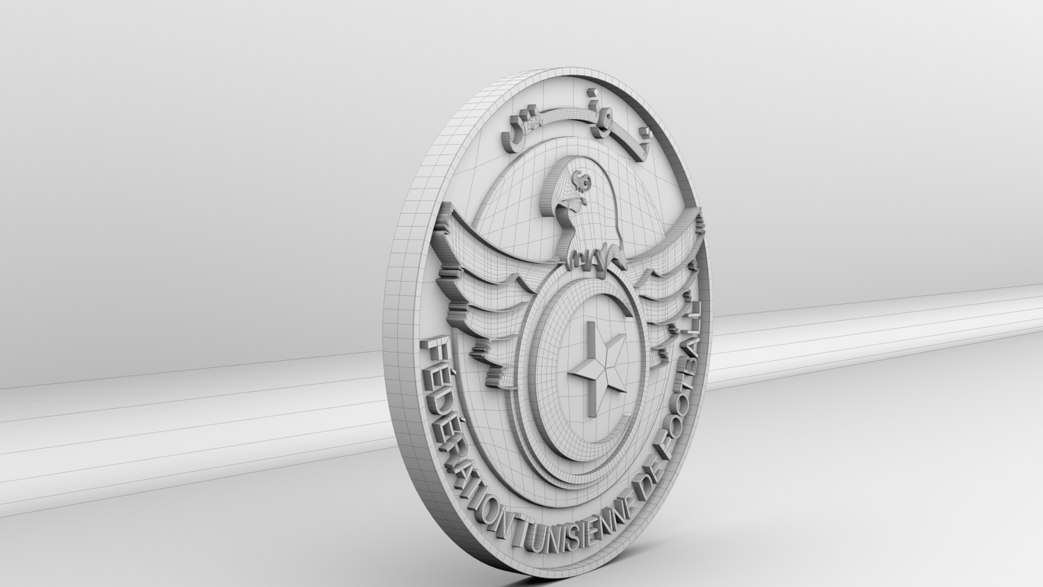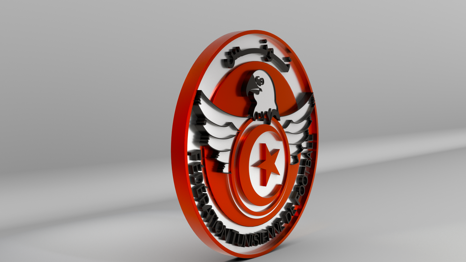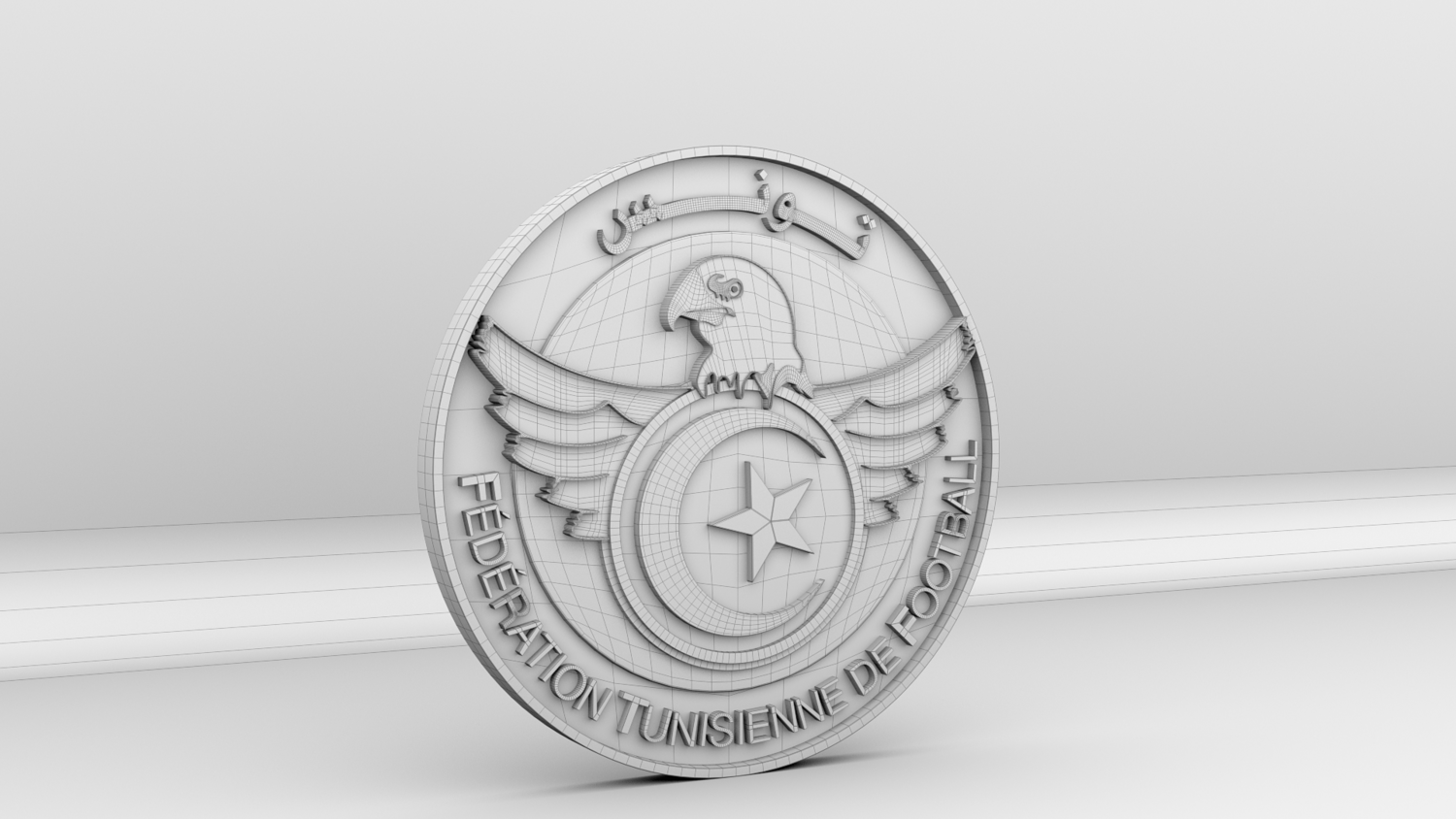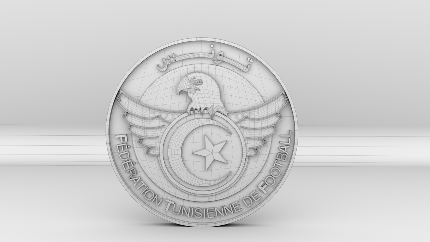 "Tunisia National Soccer Team Logo, modeled and rendered in Maya using Redshift, PBR Textures included (BaseColor, Metallic, Roughness and Normal Maps).