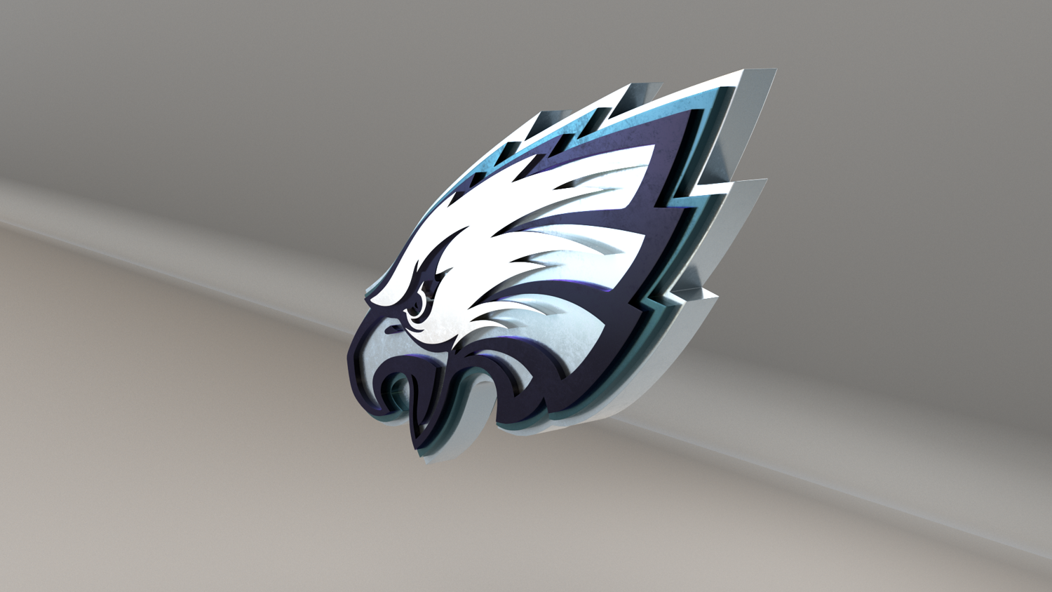 NFL Philadelphia Eagles Logo, modeled and rendered in Maya using Redshift and textured in Substance Painter. It contains a base color and a packed metallic, roughness and AO. The renders are using the metallic texture, but if you don't use it you have the logo with it's original color, like the last picture.
