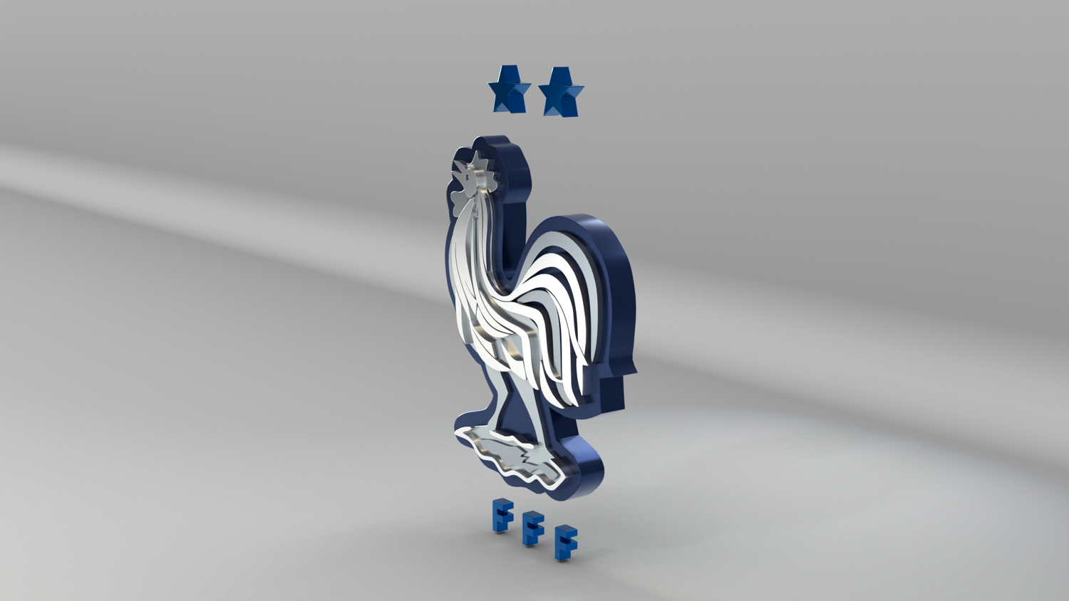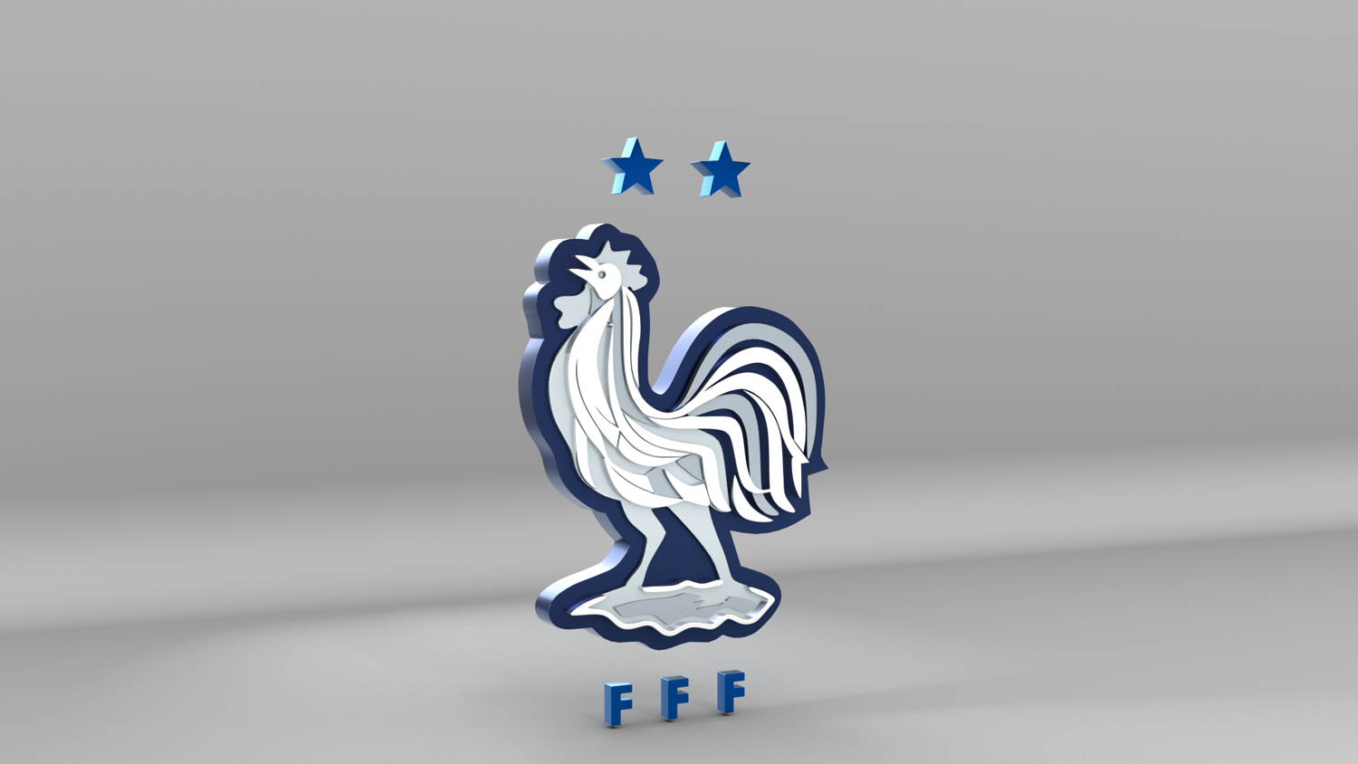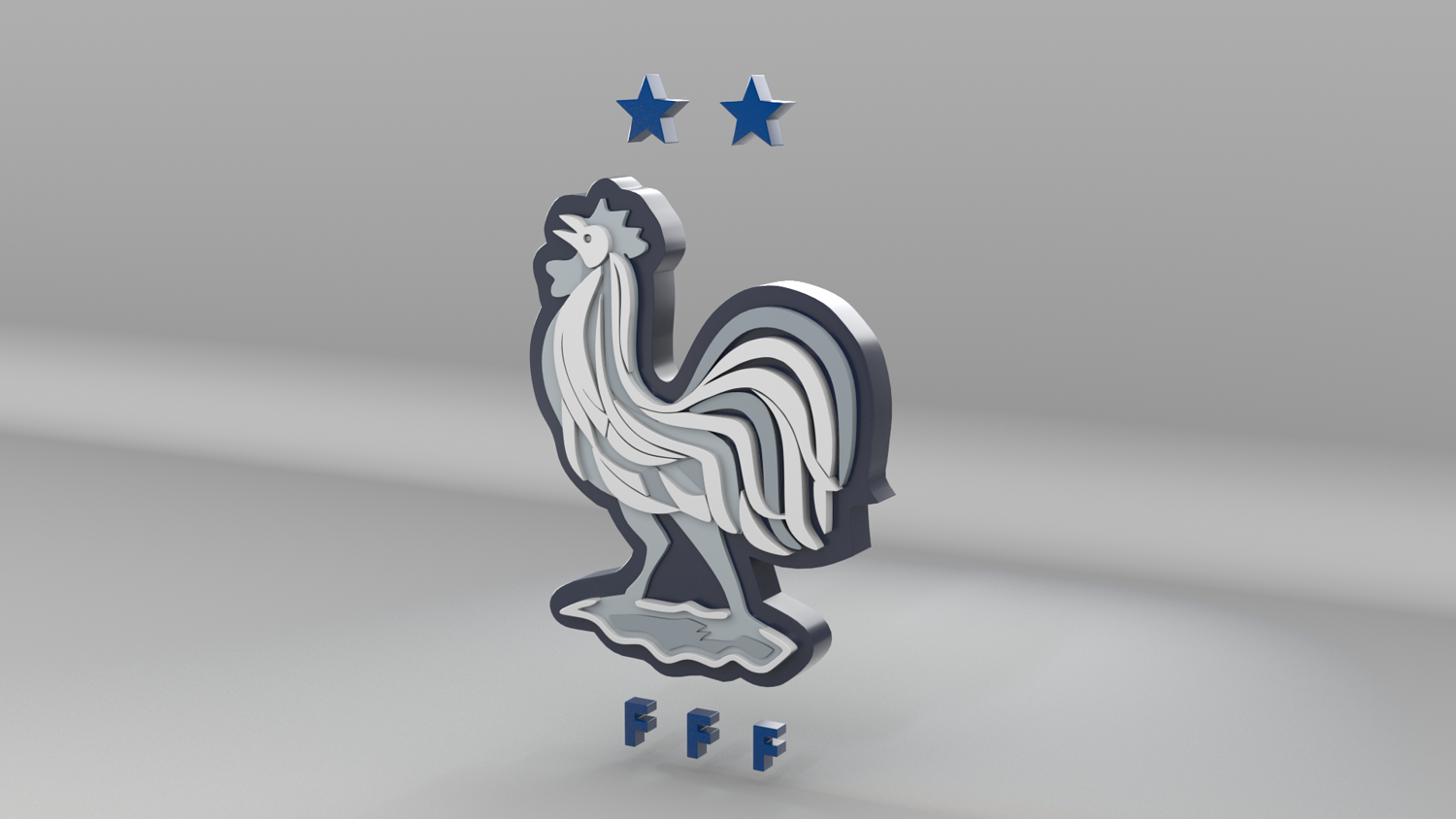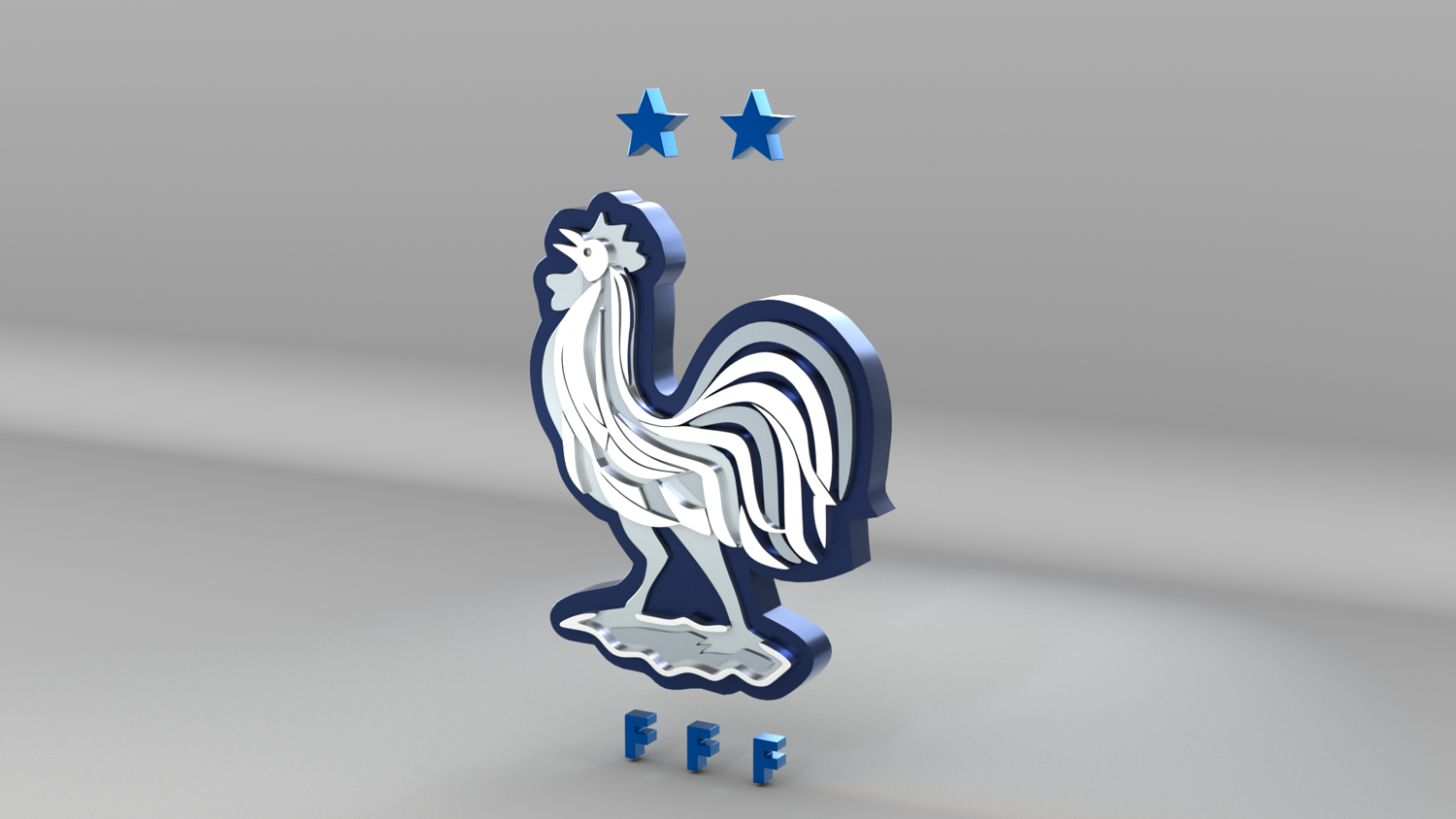 "France National Soccer Team Logo, modeled and rendered in Maya using Redshift, PBR Textures included (BaseColor, Metallic, Roughness and Normal Maps).