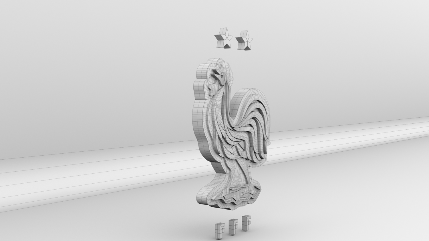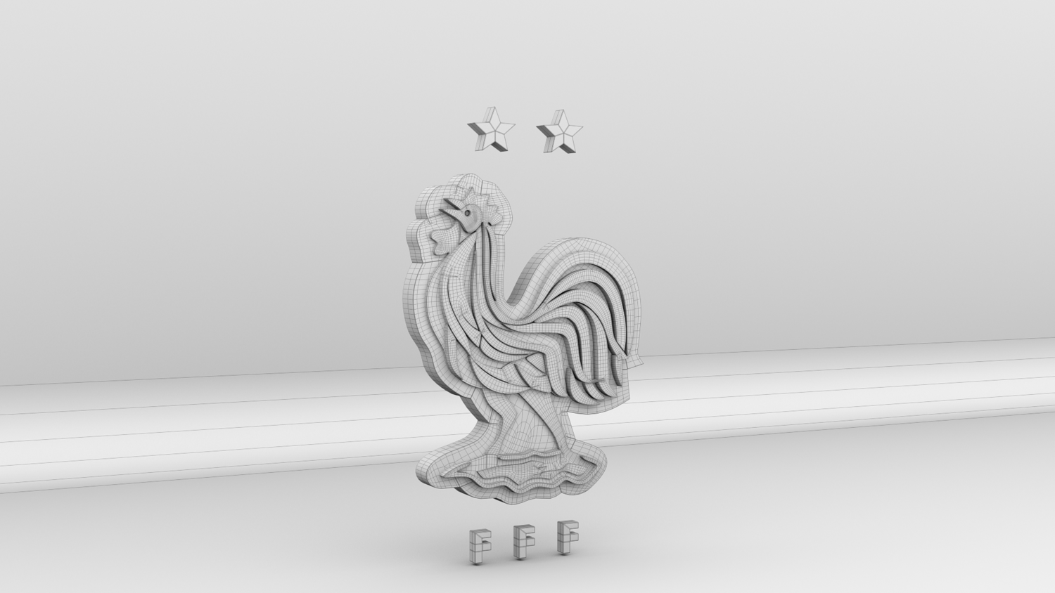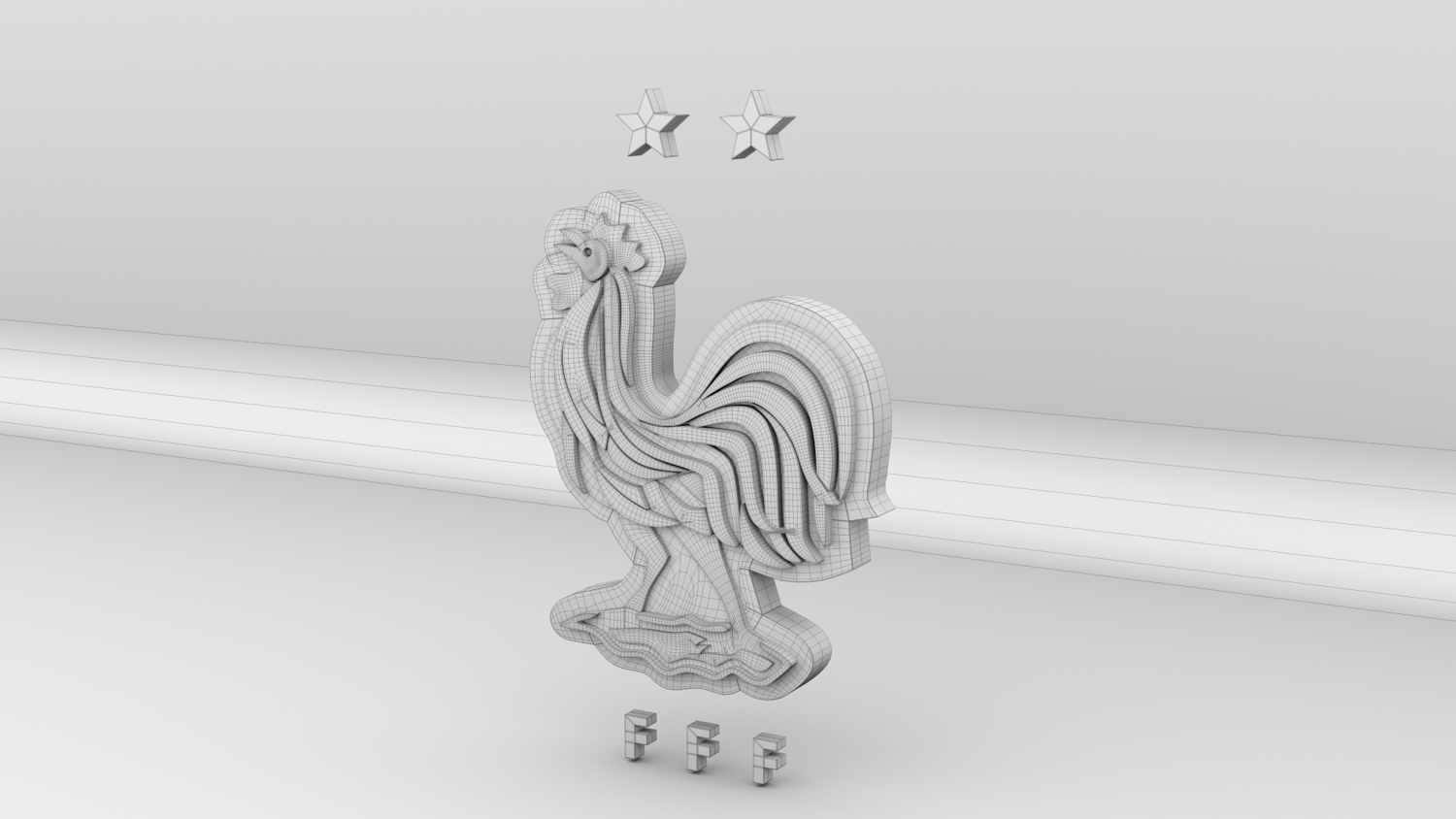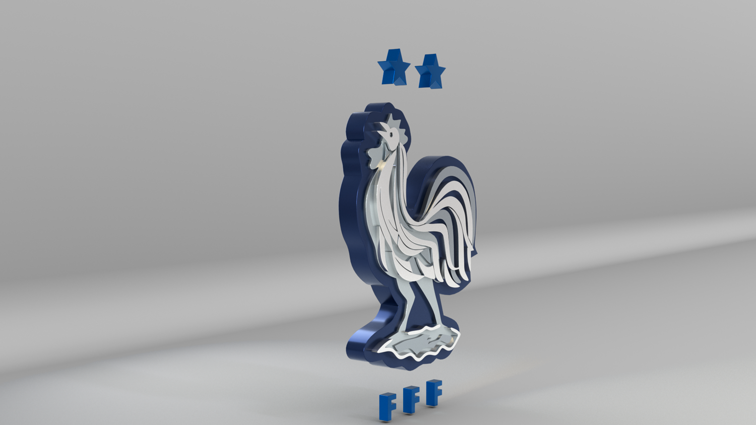 "France National Soccer Team Logo, modeled and rendered in Maya using Redshift, PBR Textures included (BaseColor, Metallic, Roughness and Normal Maps).