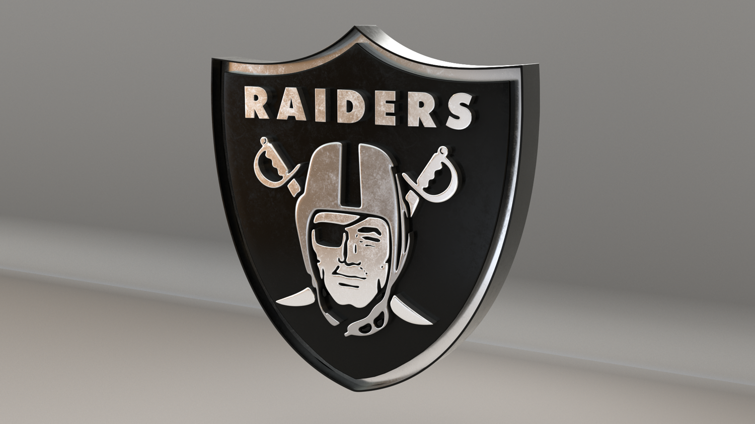 NFL Las Vegas Raiders Logo, modeled and rendered in Maya using Redshift and textured in Substance Painter. It contains a base color and a packed metallic, roughness and AO. The renders are using the metallic texture, but if you don't use it you have the logo with it's original color, like the last picture.