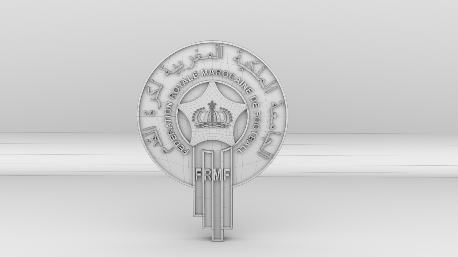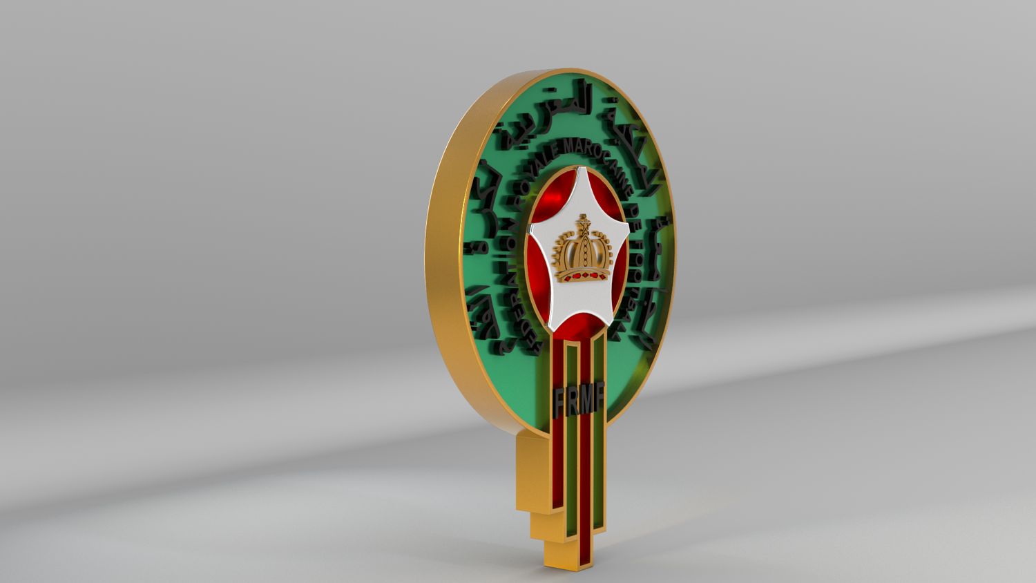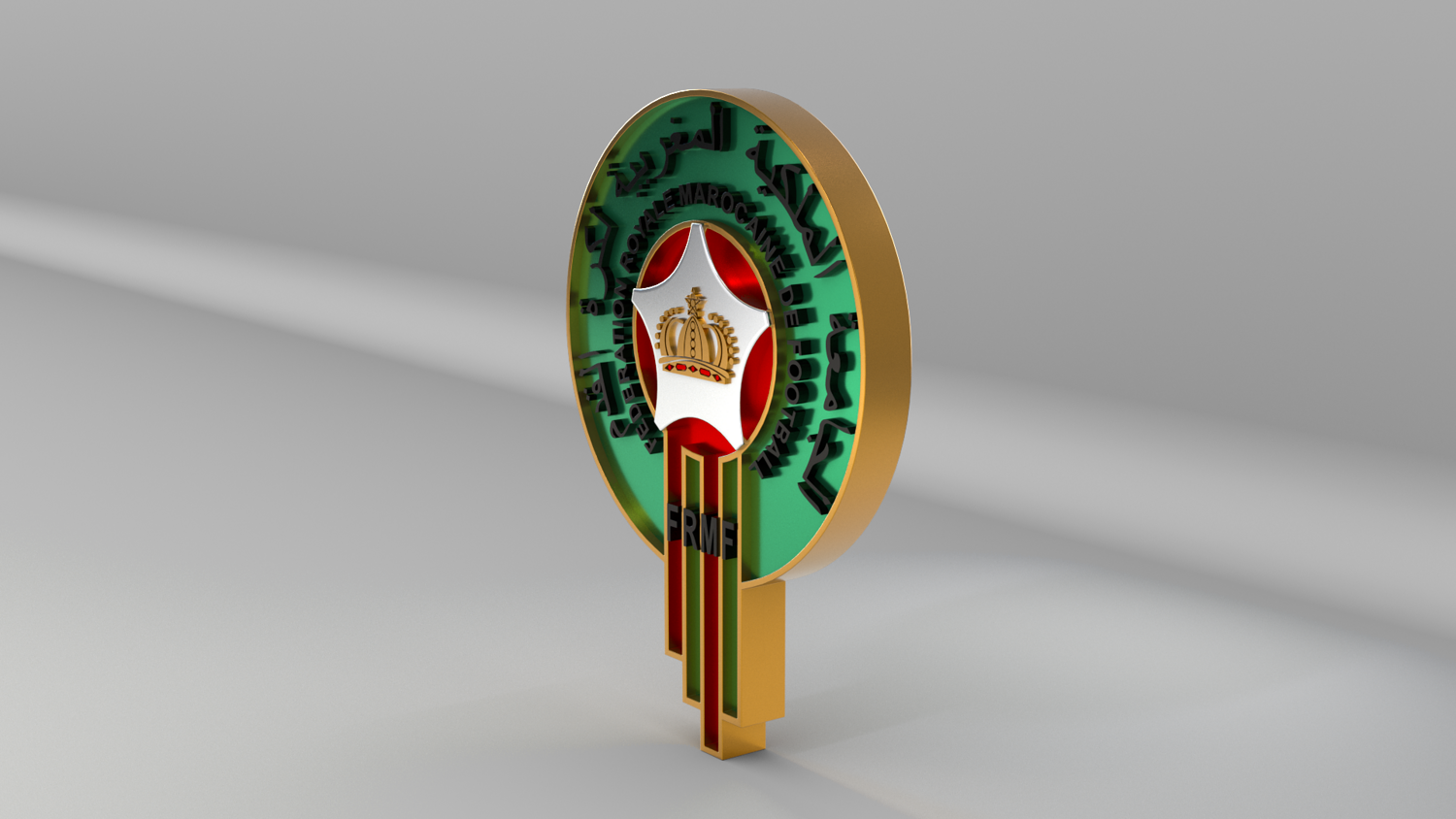 "Morocco National Soccer Team Logo, modeled and rendered in Maya using Redshift, PBR Textures included (BaseColor, Metallic, Roughness and Normal Maps).