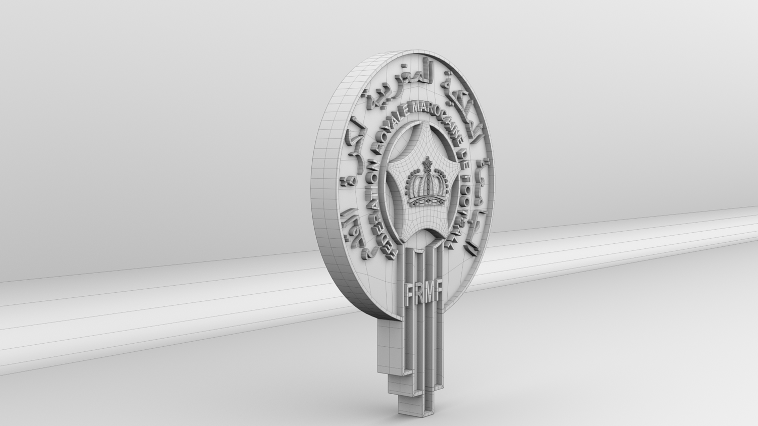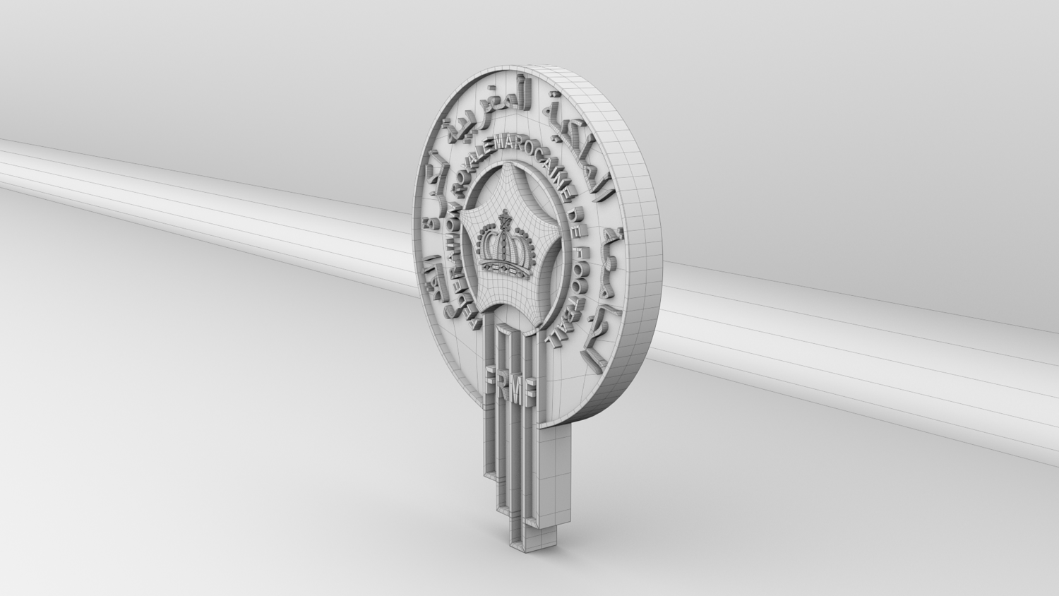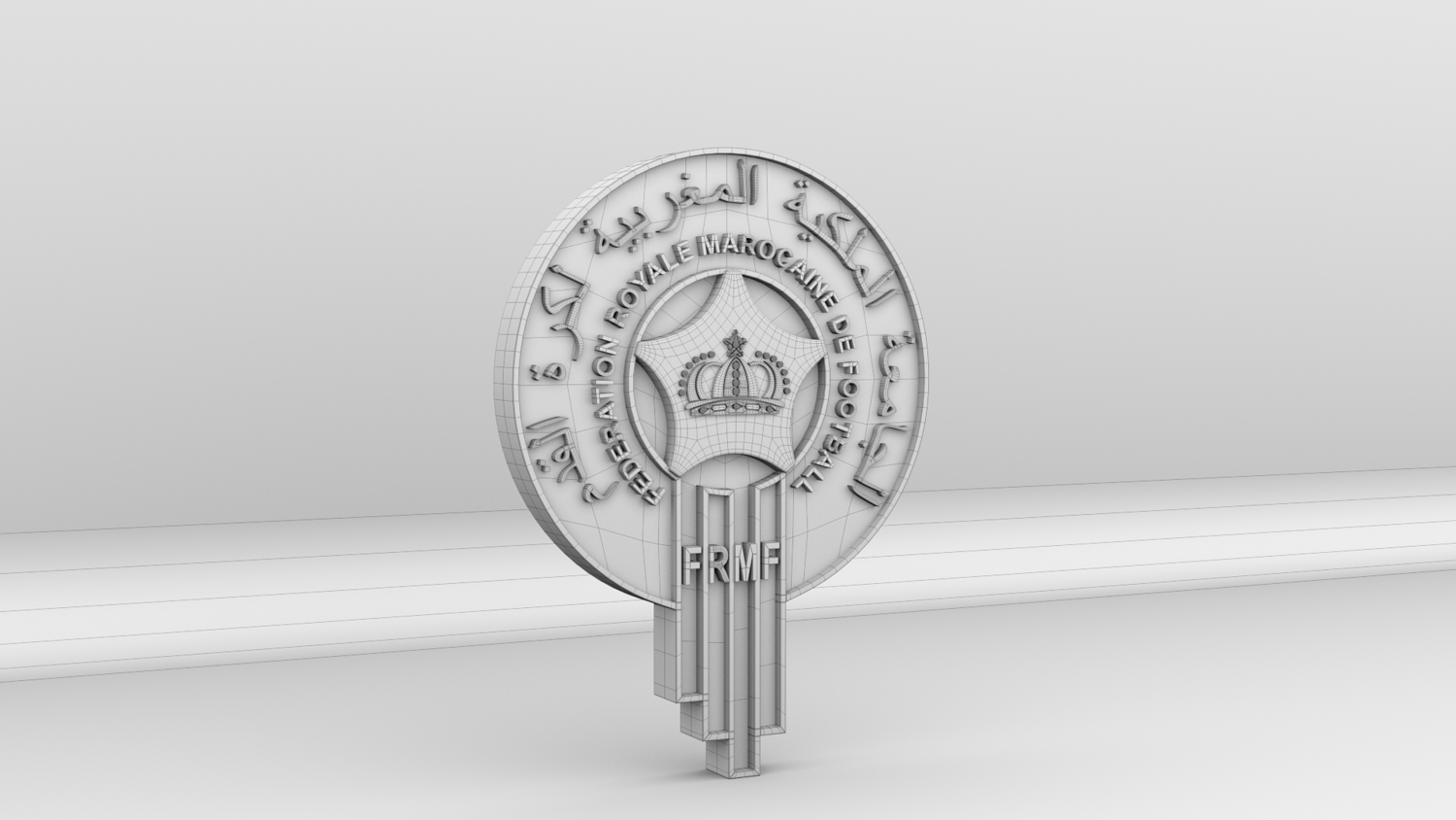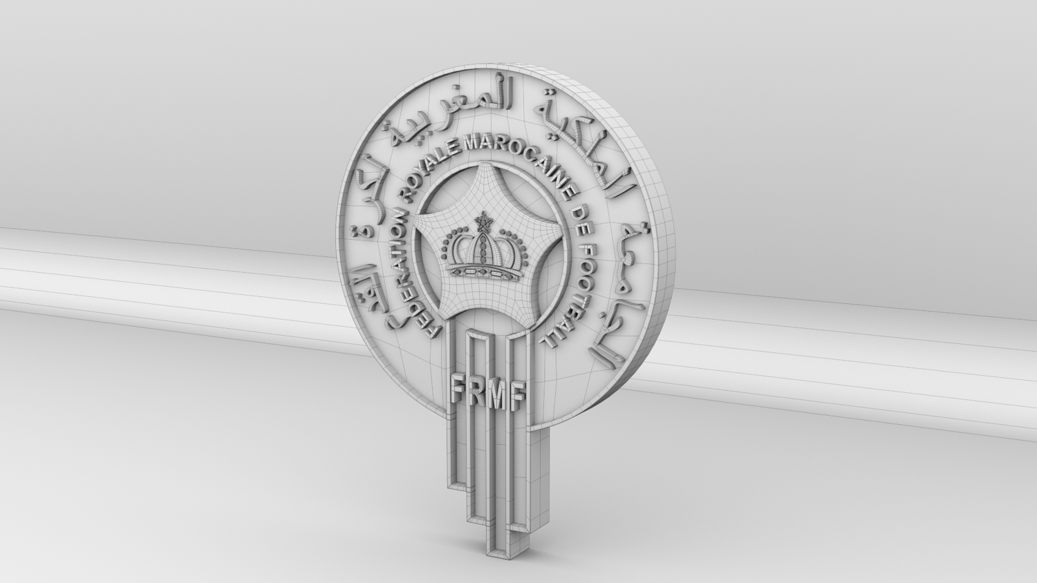 "Morocco National Soccer Team Logo, modeled and rendered in Maya using Redshift, PBR Textures included (BaseColor, Metallic, Roughness and Normal Maps).
