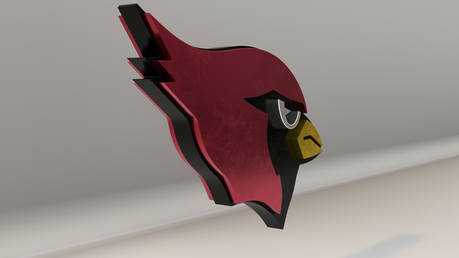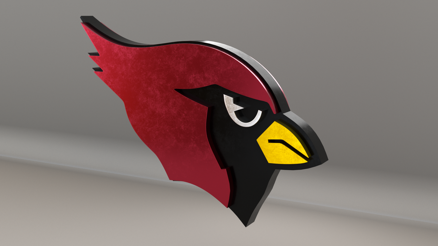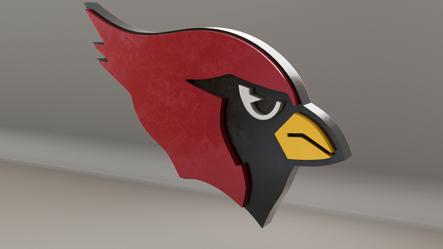 NFL Arizona Cardinals Logo, modeled and rendered in Maya using Redshift and textured in Substance Painter. It contains a base color and a packed metallic, roughness and AO. The renders are using the metallic texture, but if you don't use it you have the logo with it's original color, like the last picture.