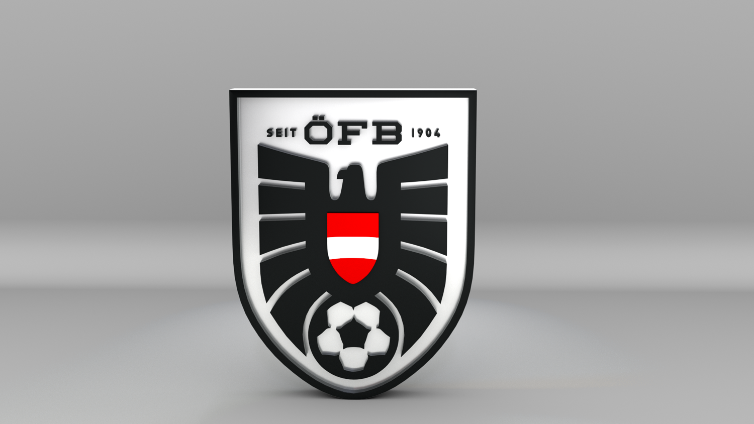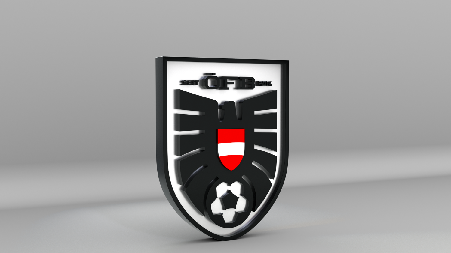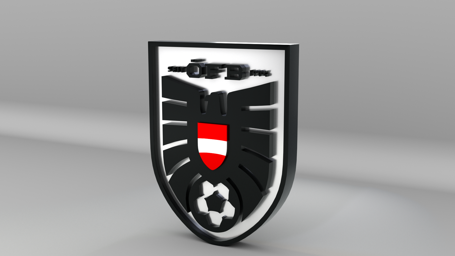 "Austria National Soccer Team Logo, modeled and rendered in Maya using Redshift, PBR Textures included (BaseColor, Metallic, Roughness and Normal Maps).