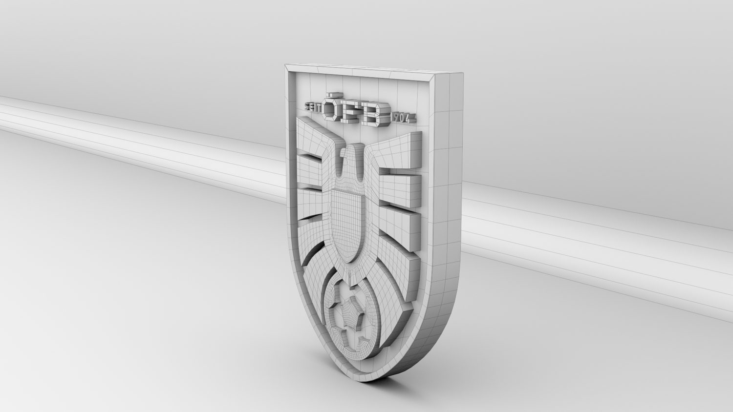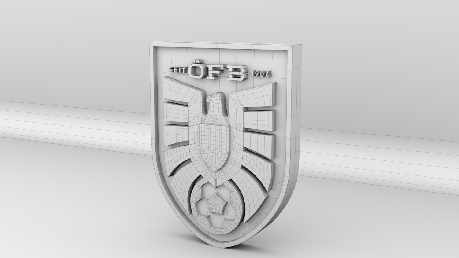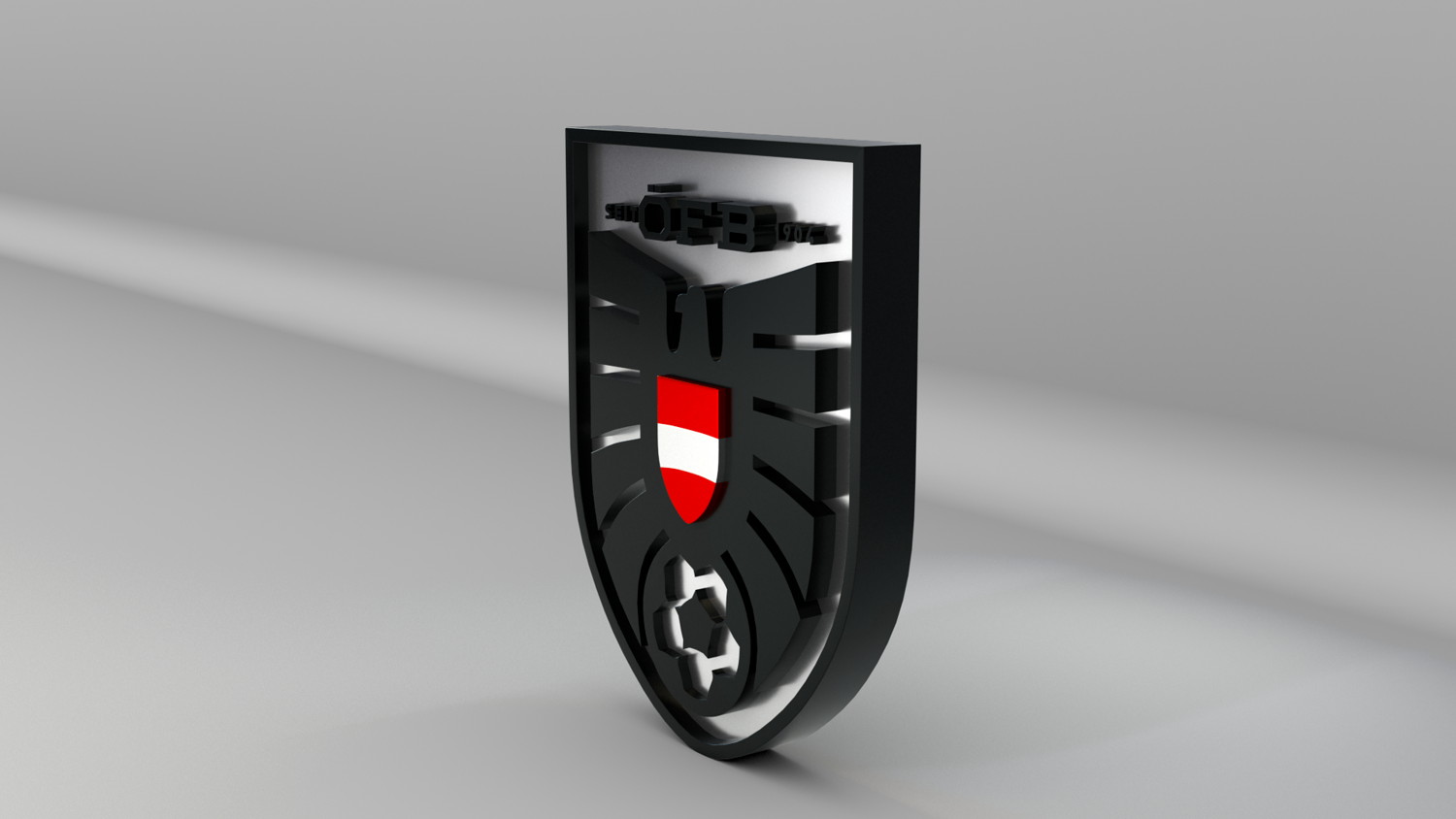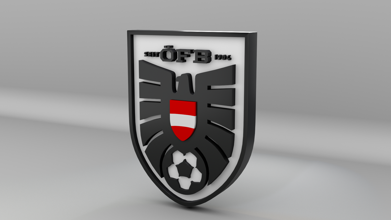 "Austria National Soccer Team Logo, modeled and rendered in Maya using Redshift, PBR Textures included (BaseColor, Metallic, Roughness and Normal Maps).
