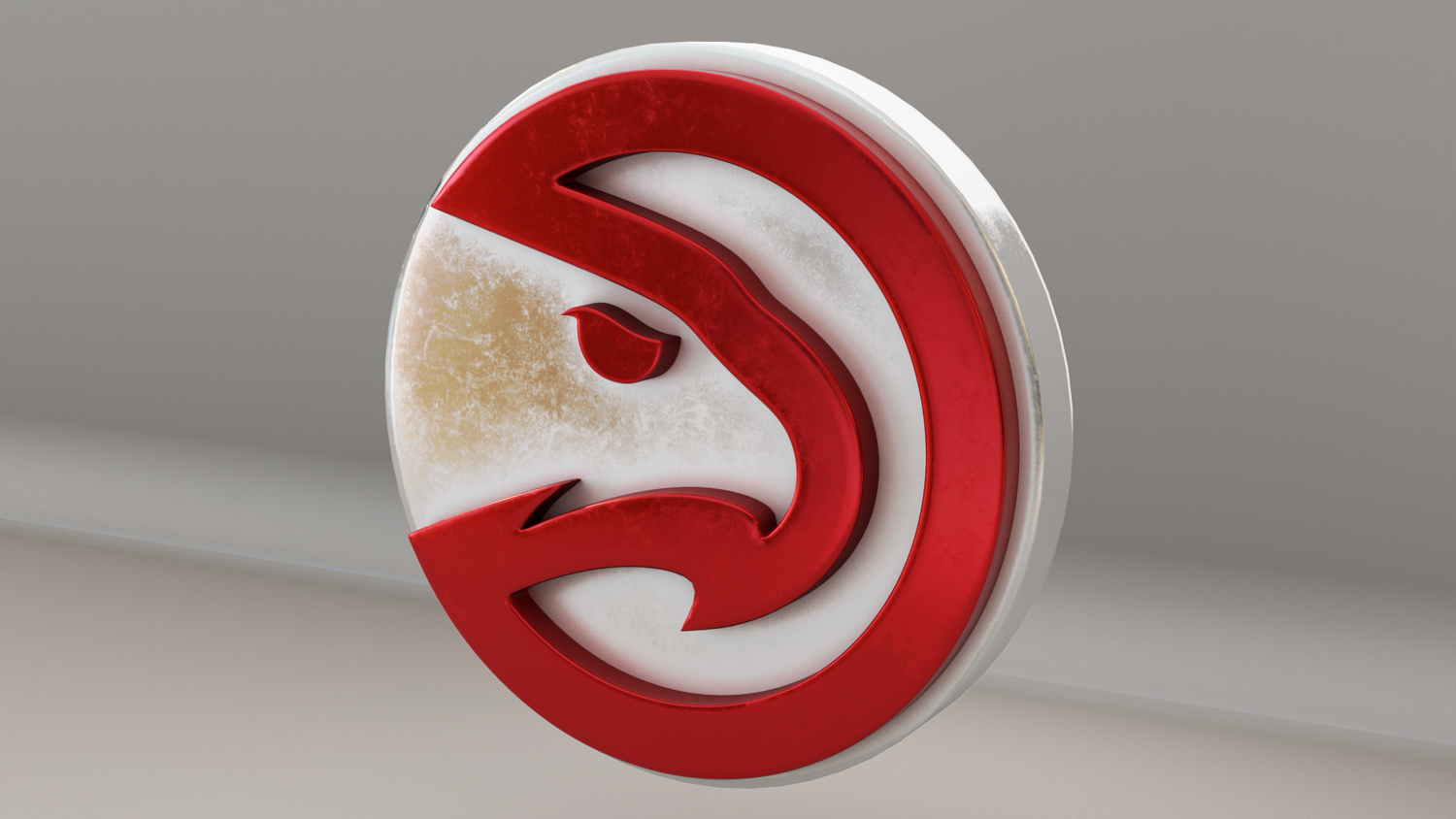 NBA Atlanta Hawks Team Logo, modeled and rendered in Maya using Redshift and textured in Substance Painter. It contains a base color and a packed metallic, roughness and AO. The renders are using the metallic texture, but if you don't use it you have the logo with it's original color, like the last picture.