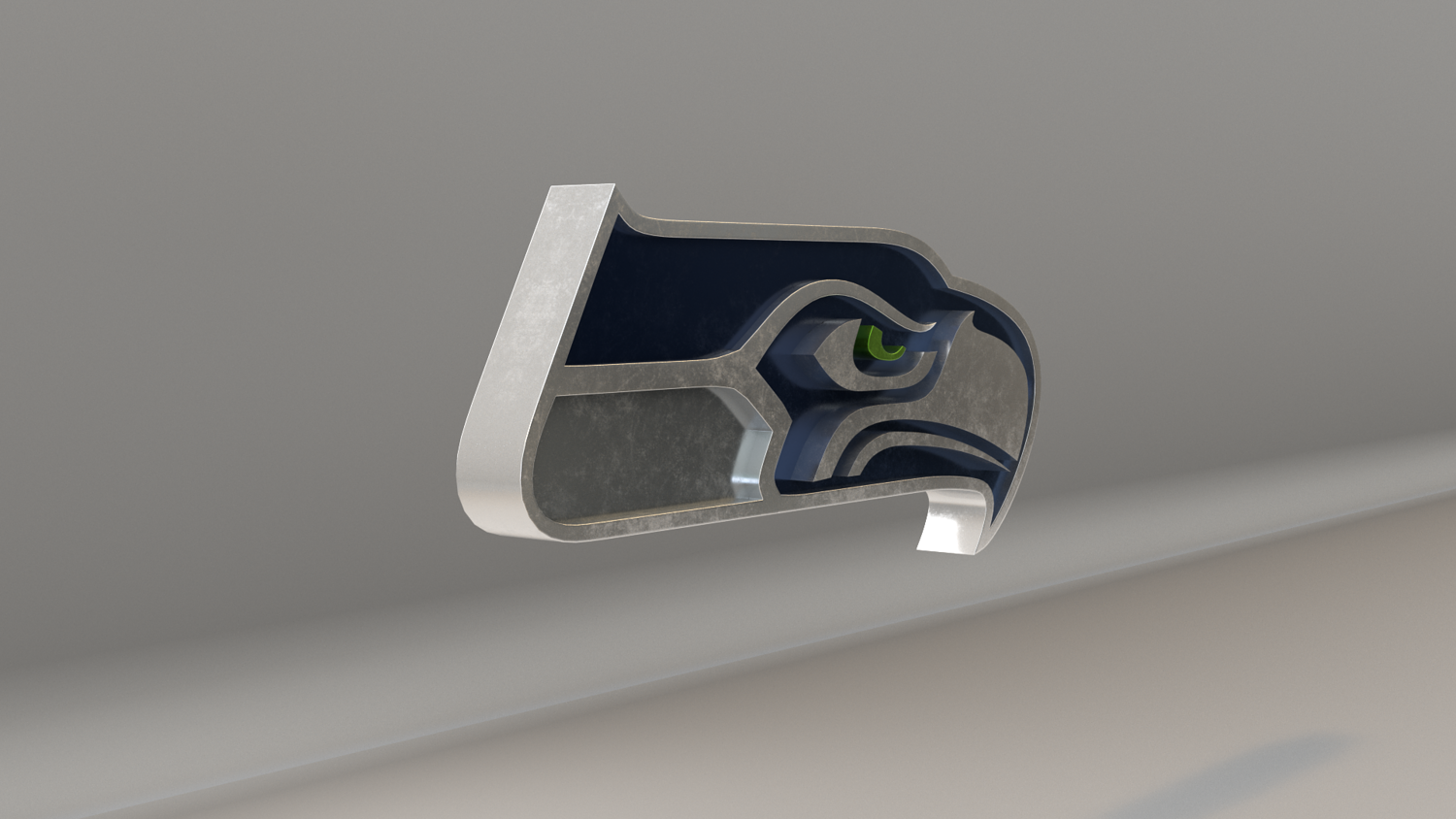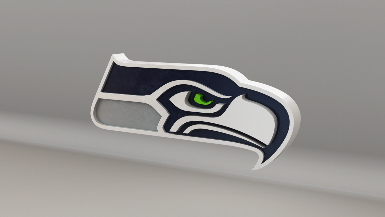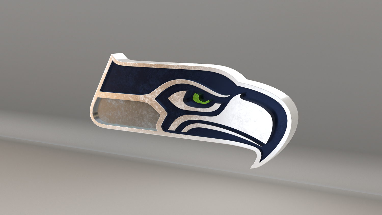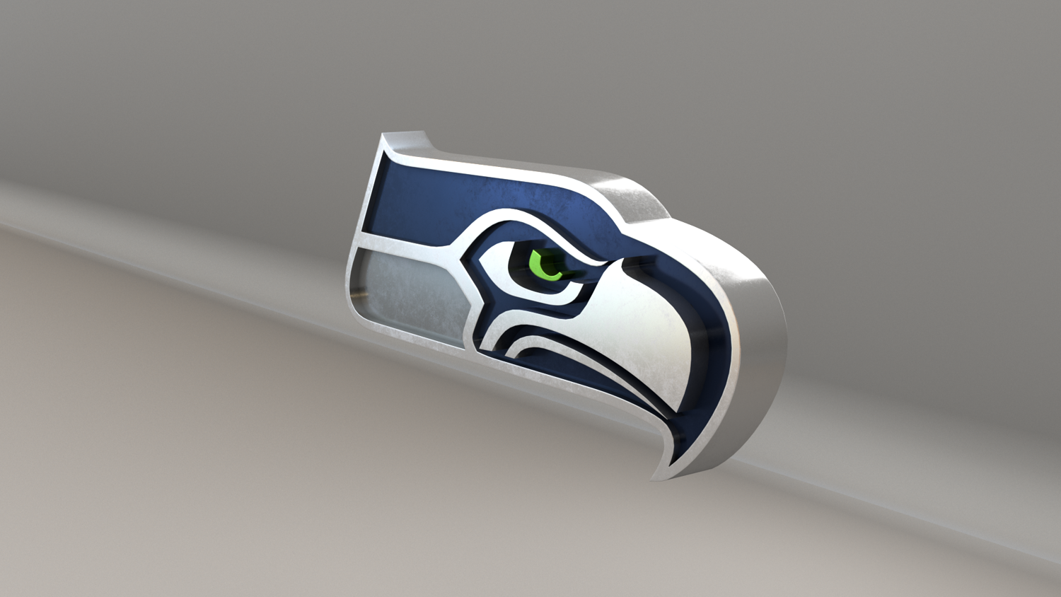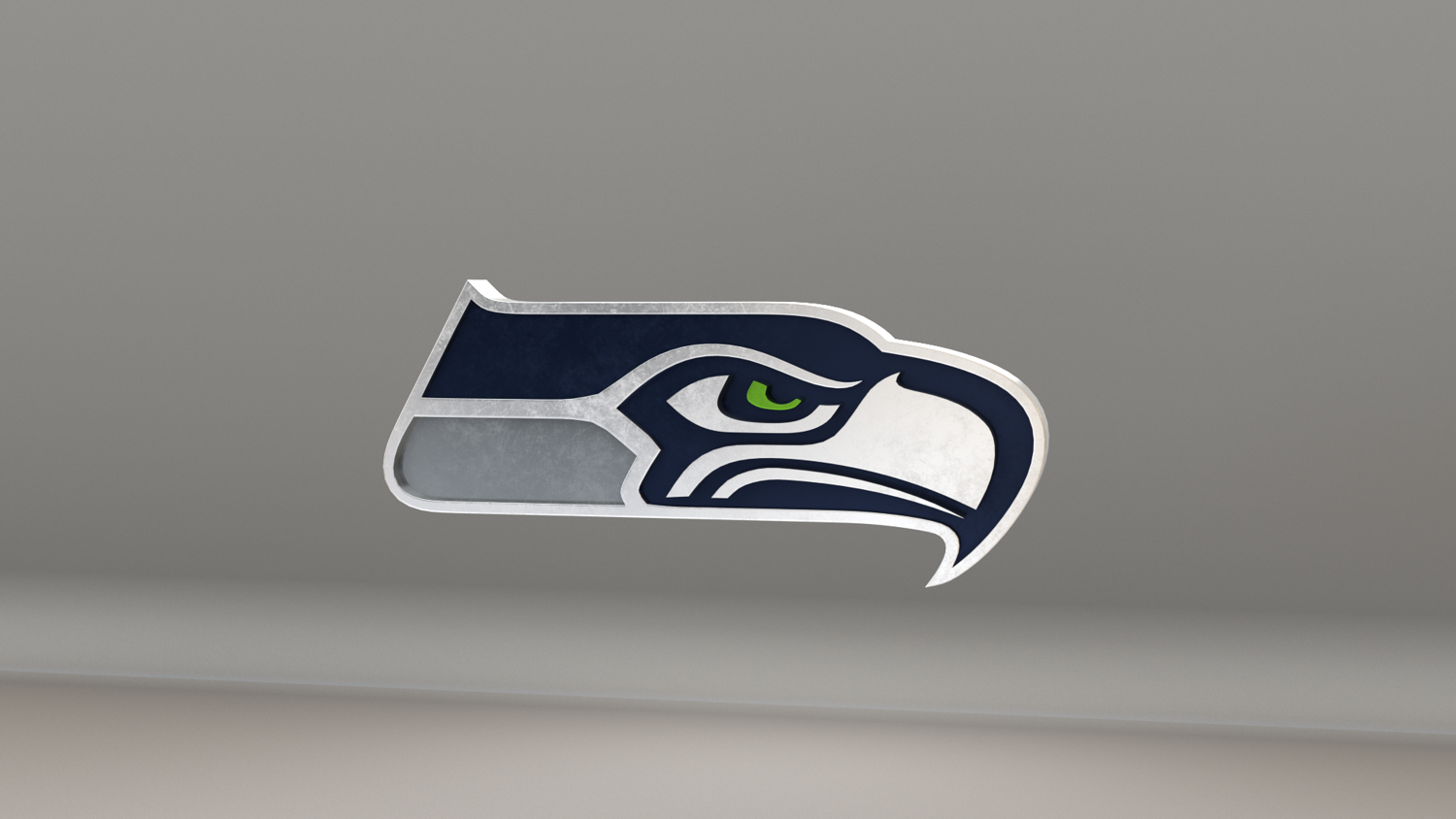 NFL Seattle Seahawks Logo, modeled and rendered in Maya using Redshift and textured in Substance Painter. It contains a base color and a packed metallic, roughness and AO. The renders are using the metallic texture, but if you don't use it you have the logo with it's original color, like the last picture.