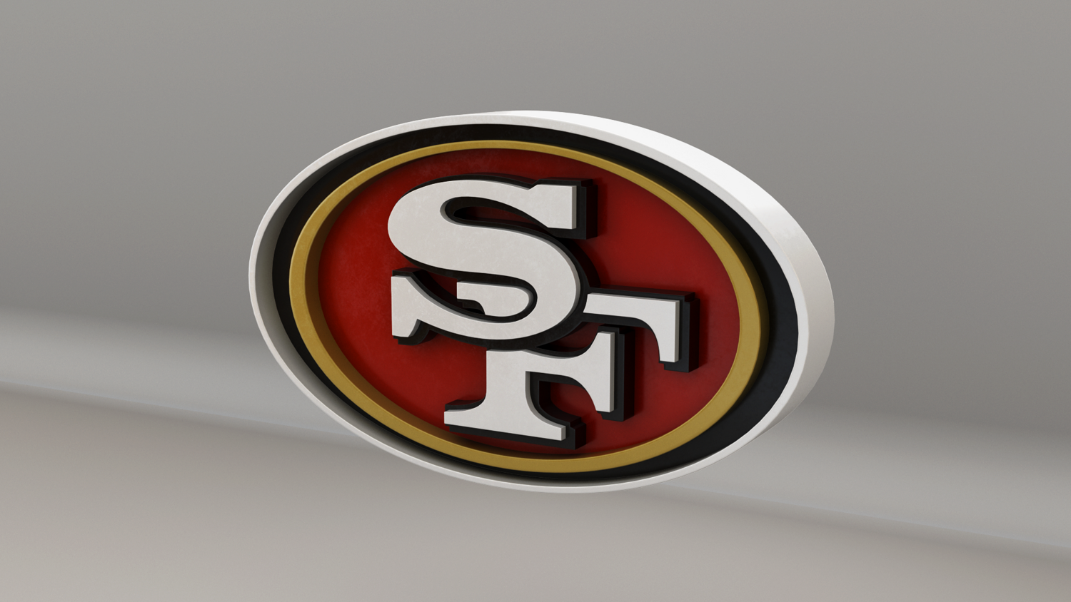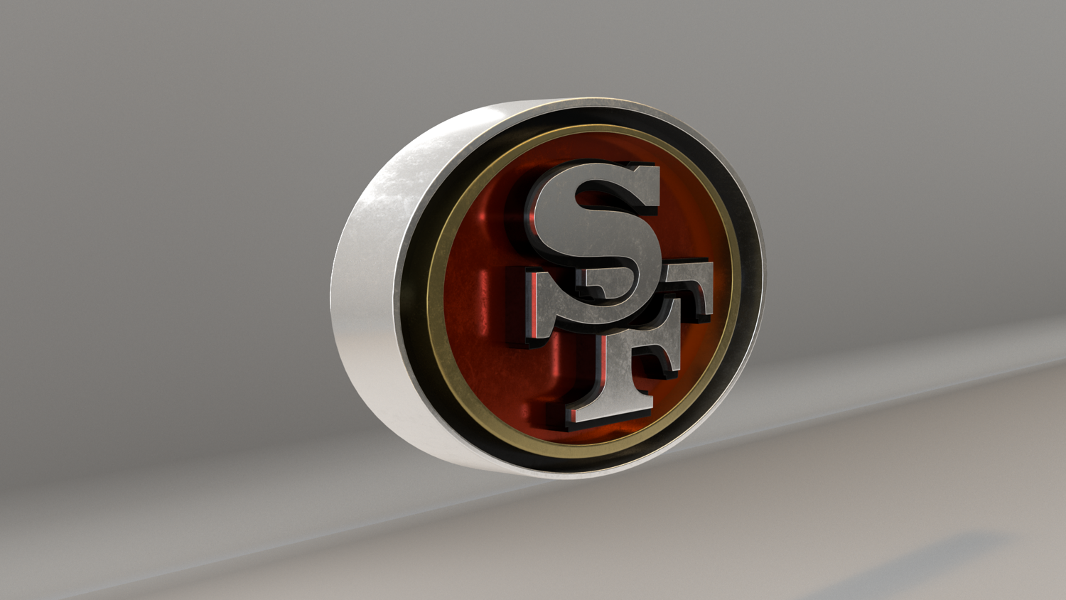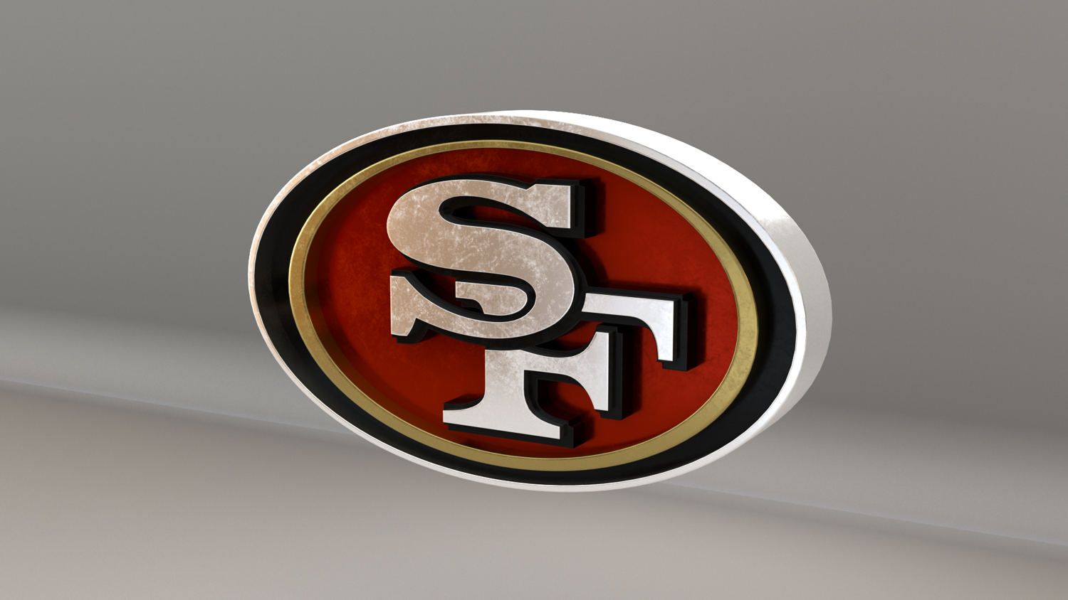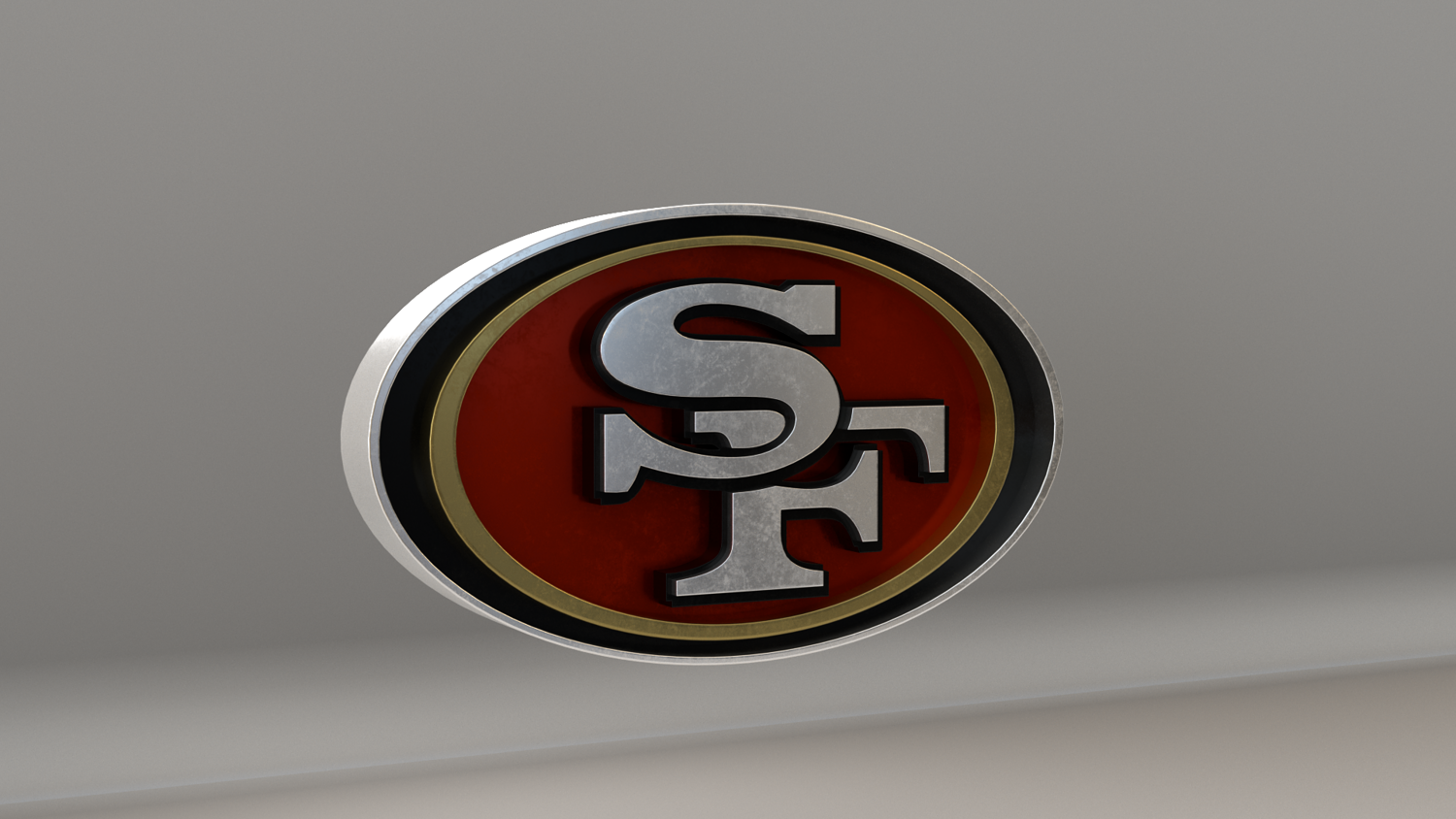 NFL San Francisco 49ers Logo, modeled and rendered in Maya using Redshift and textured in Substance Painter. It contains a base color and a packed metallic, roughness and AO. The renders are using the metallic texture, but if you don't use it you have the logo with it's original color, like the last picture.