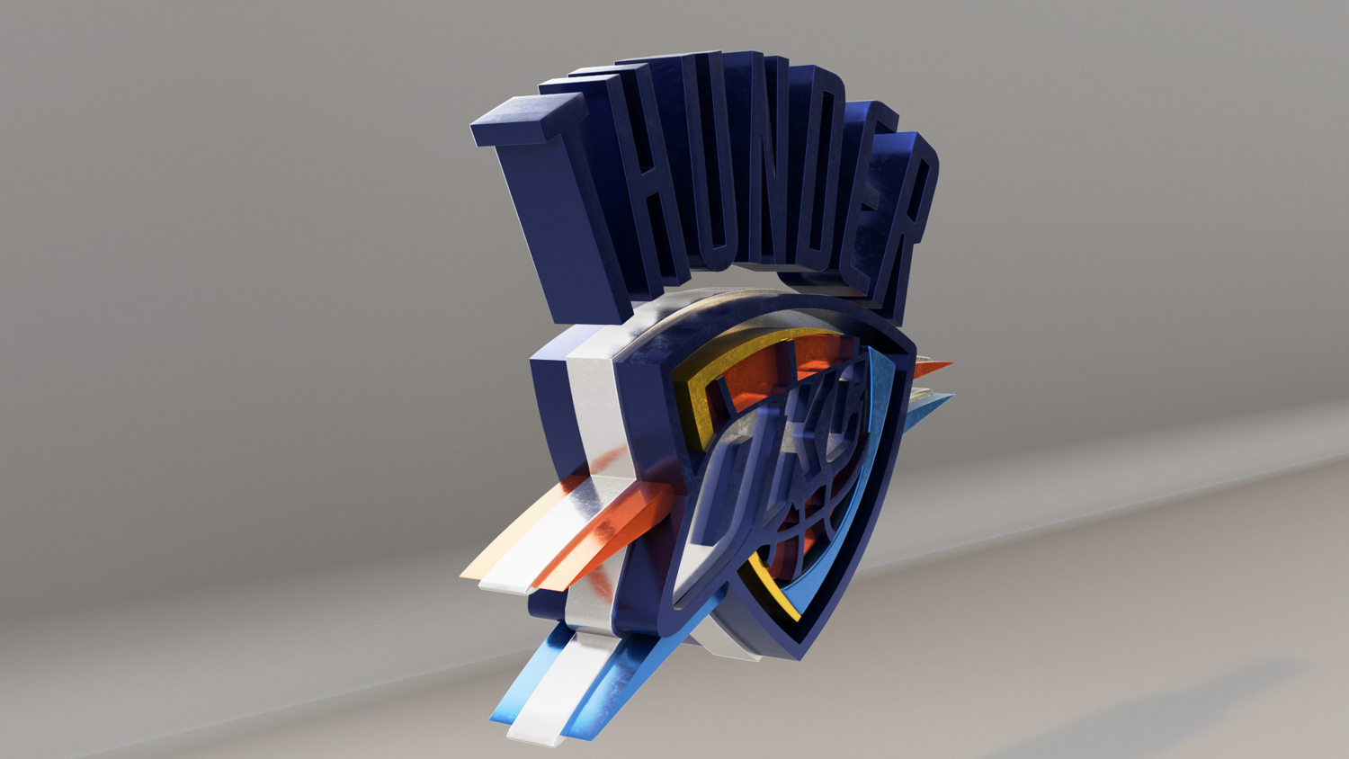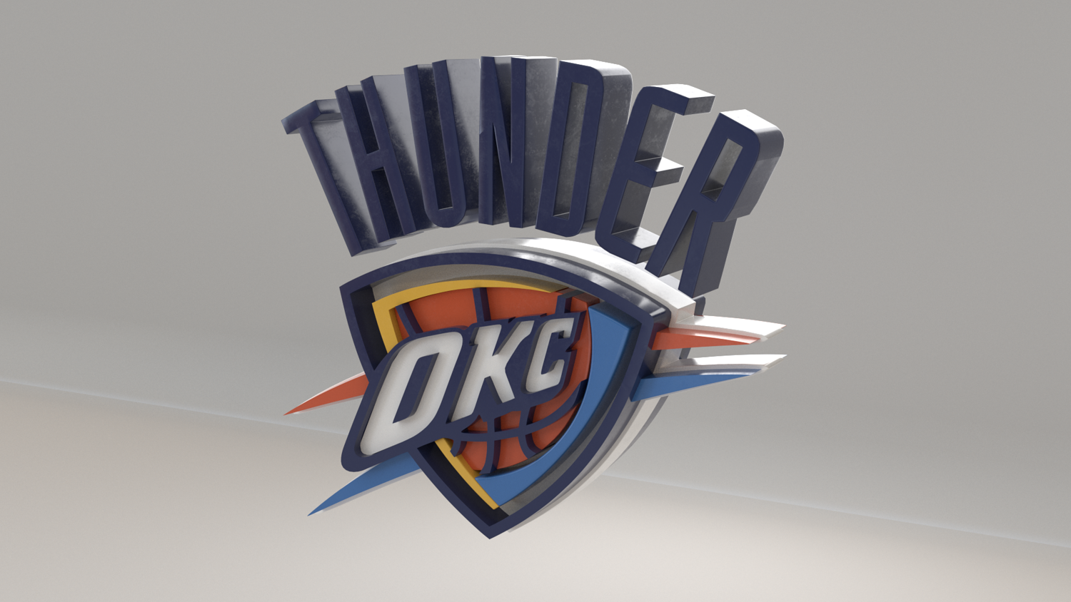NBA Oklahoma City Thunder Team Logo, modeled and rendered in Maya using Redshift and textured in Substance Painter. It contains a base color and a packed metallic, roughness and AO. The renders are using the metallic texture, but if you don't use it you have the logo with it's original color, like the last picture.