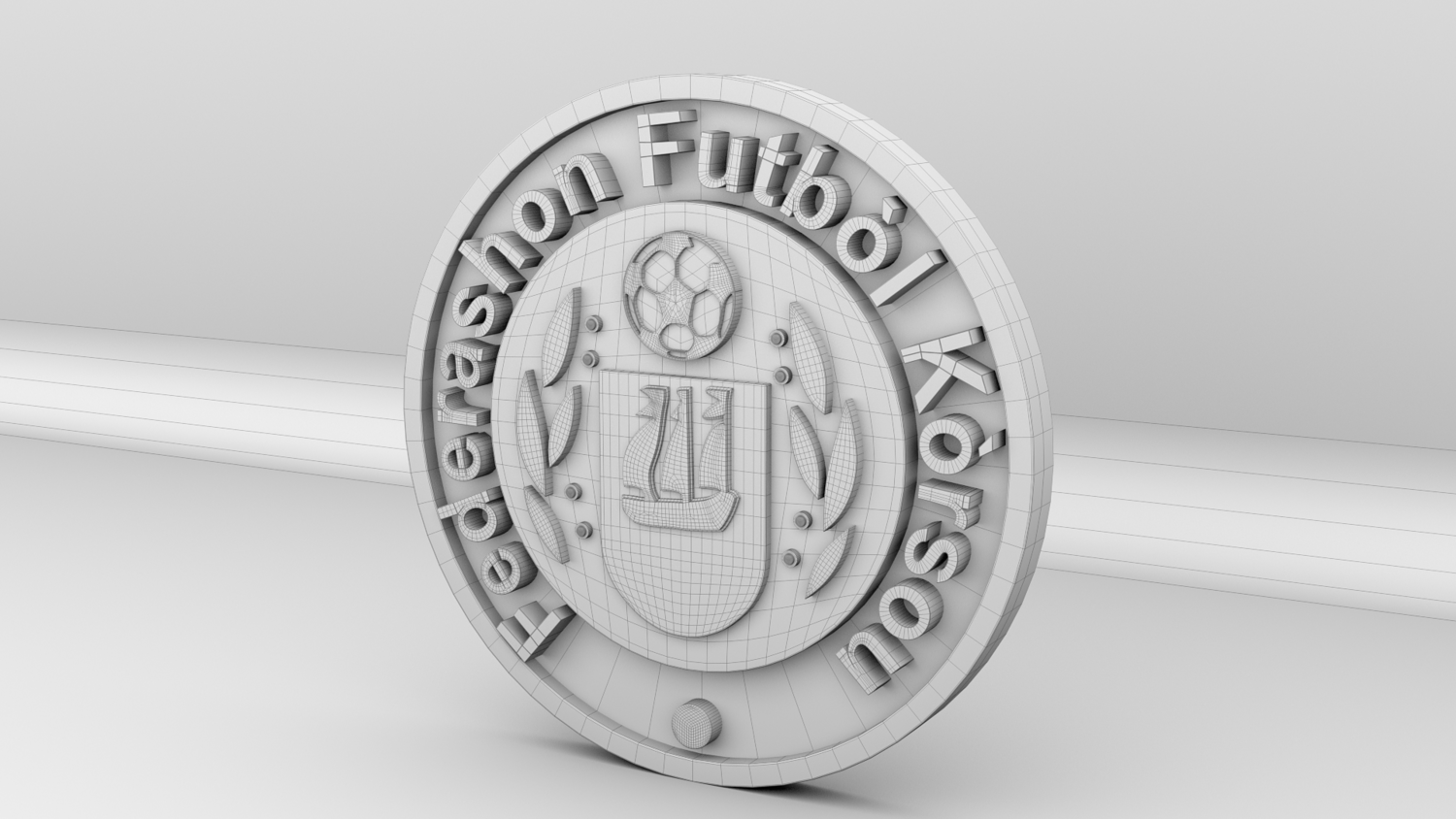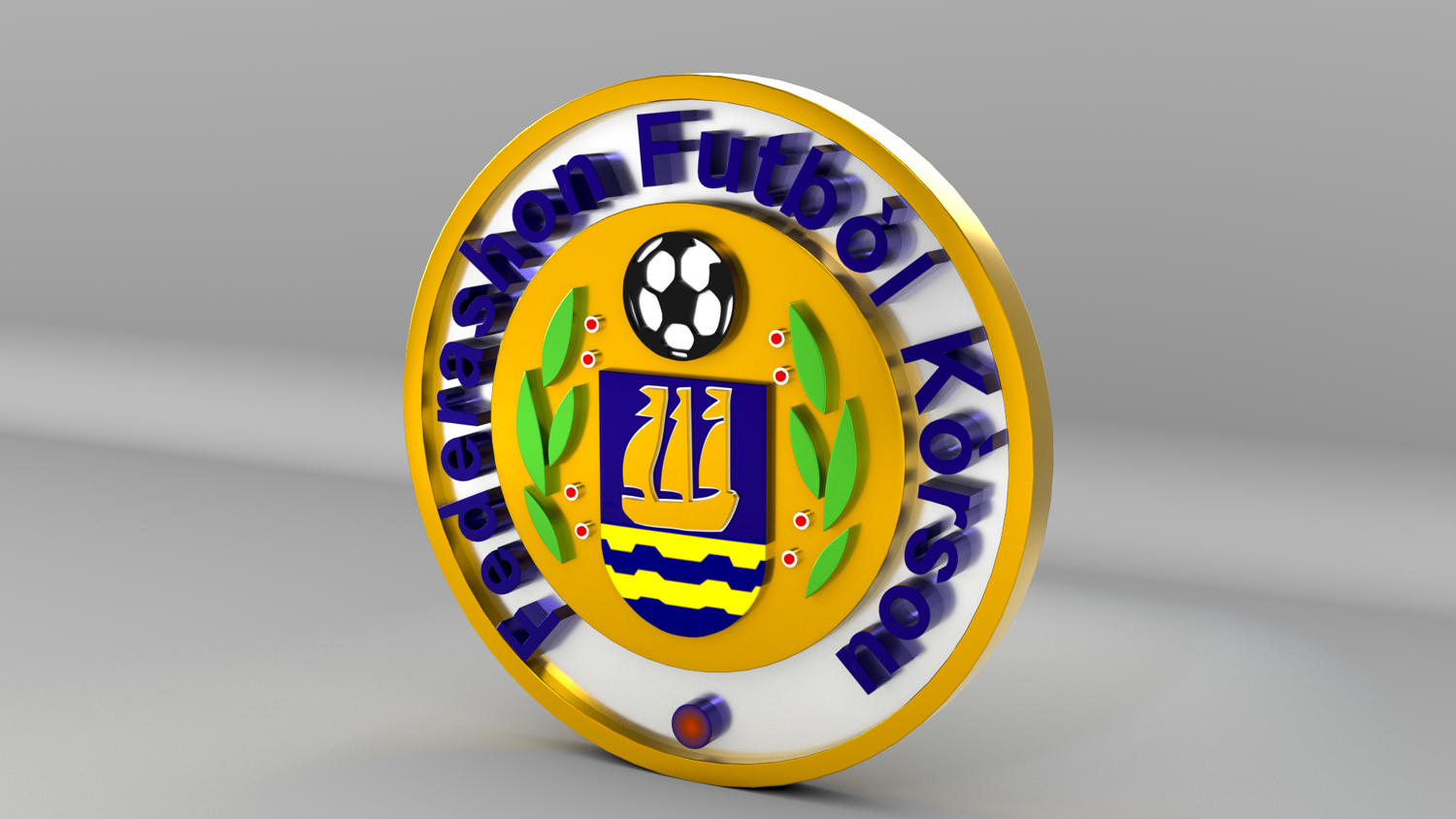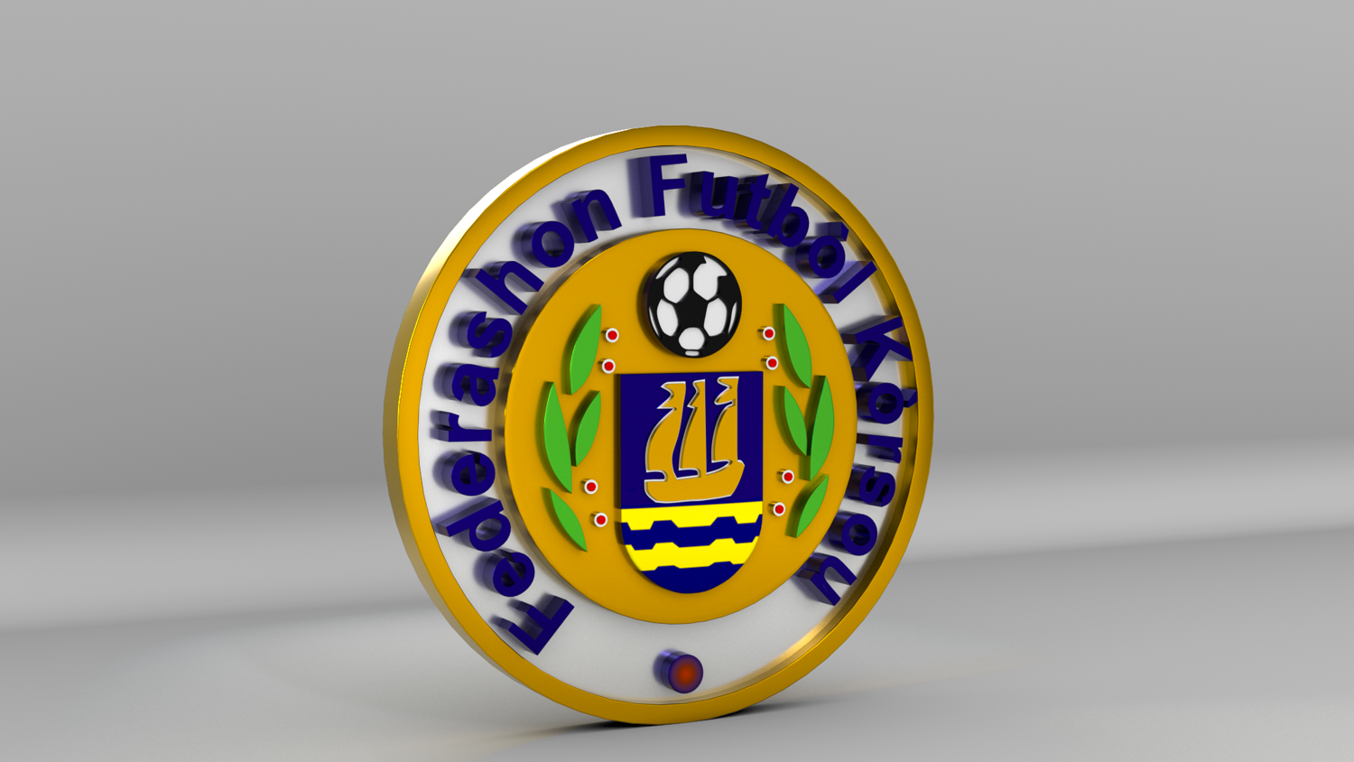 "Curaçao National Soccer Team Logo, modeled and rendered in Maya using Redshift, PBR Textures included (BaseColor, Metallic, Roughness and Normal Maps).