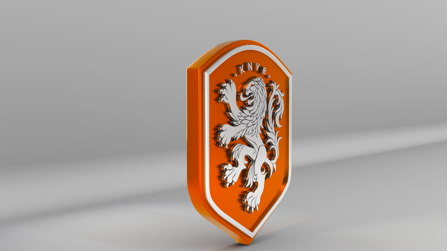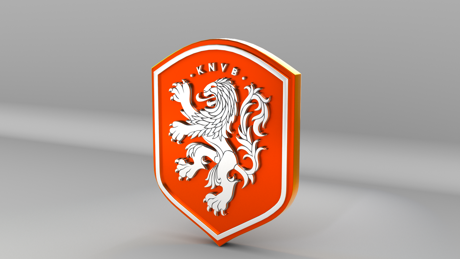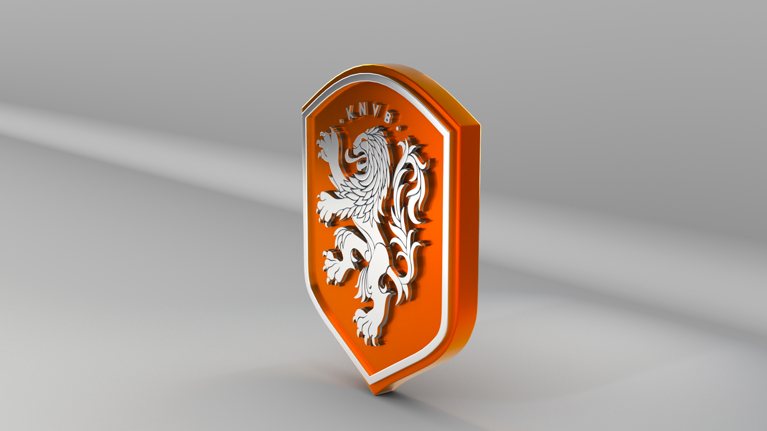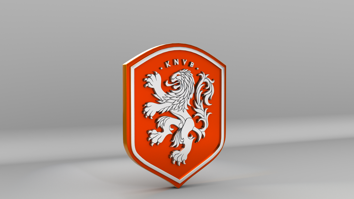 "Netherlands National Soccer Team Logo, modeled and rendered in Maya using Redshift, PBR Textures included (BaseColor, Metallic, Roughness and Normal Maps).