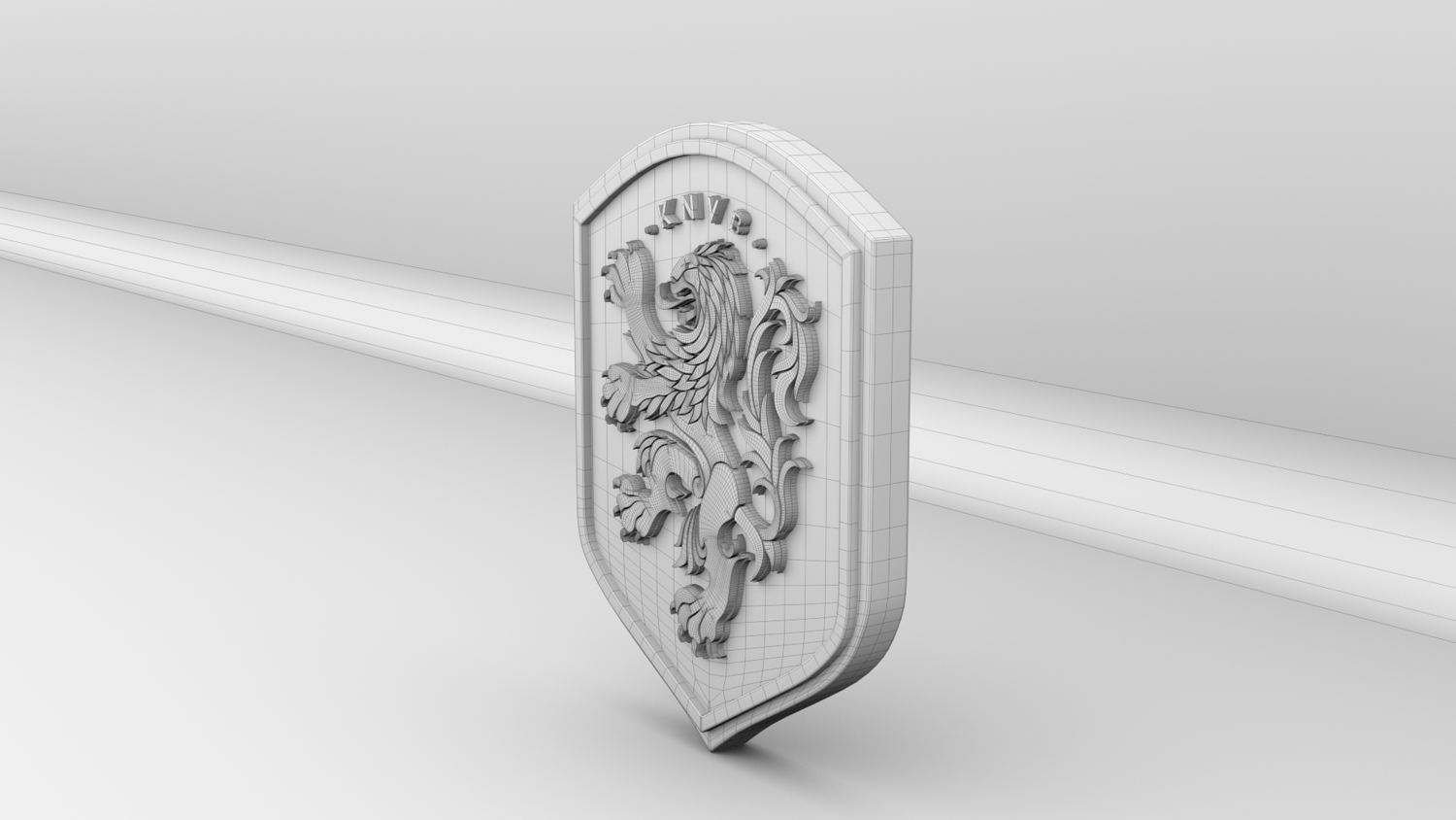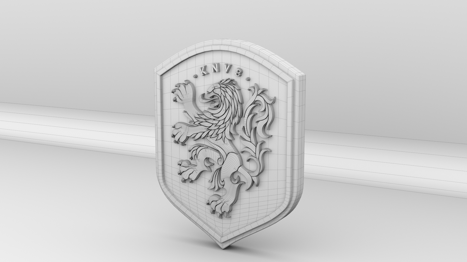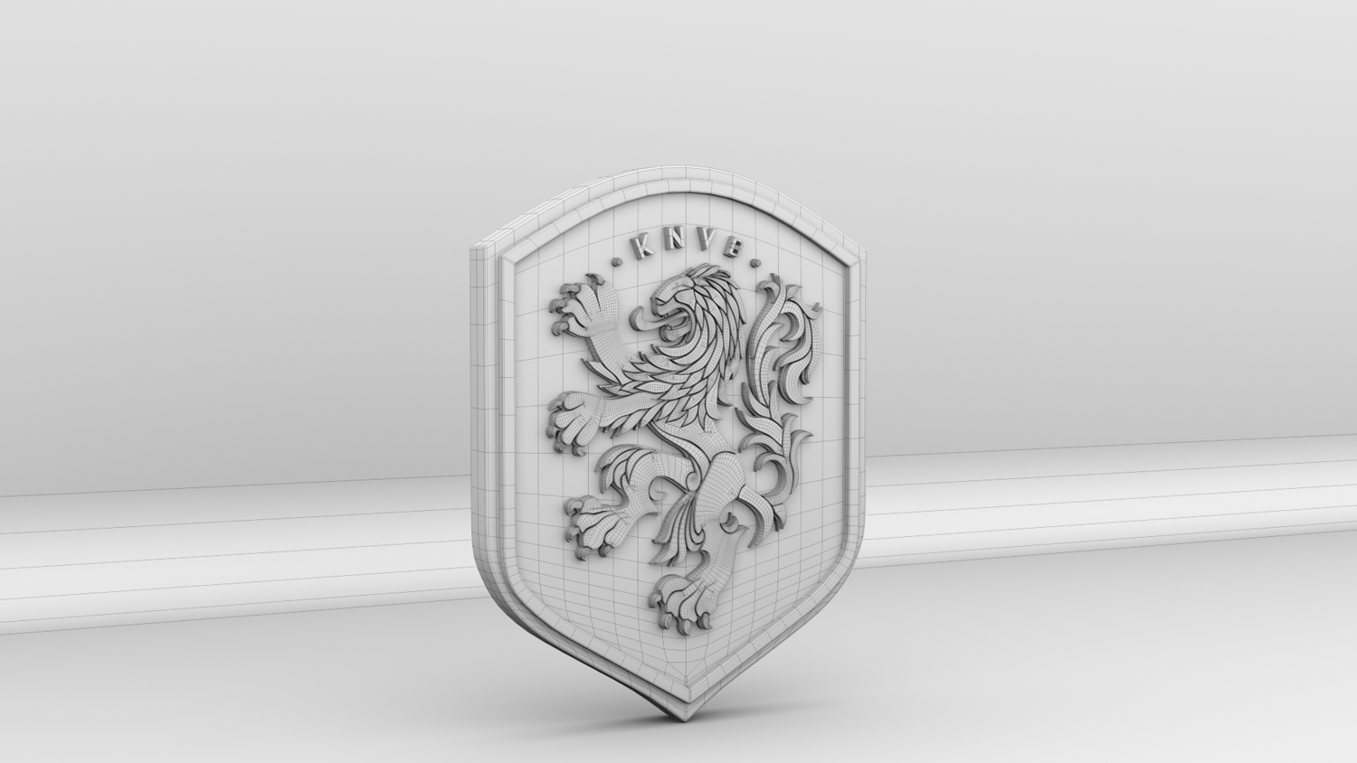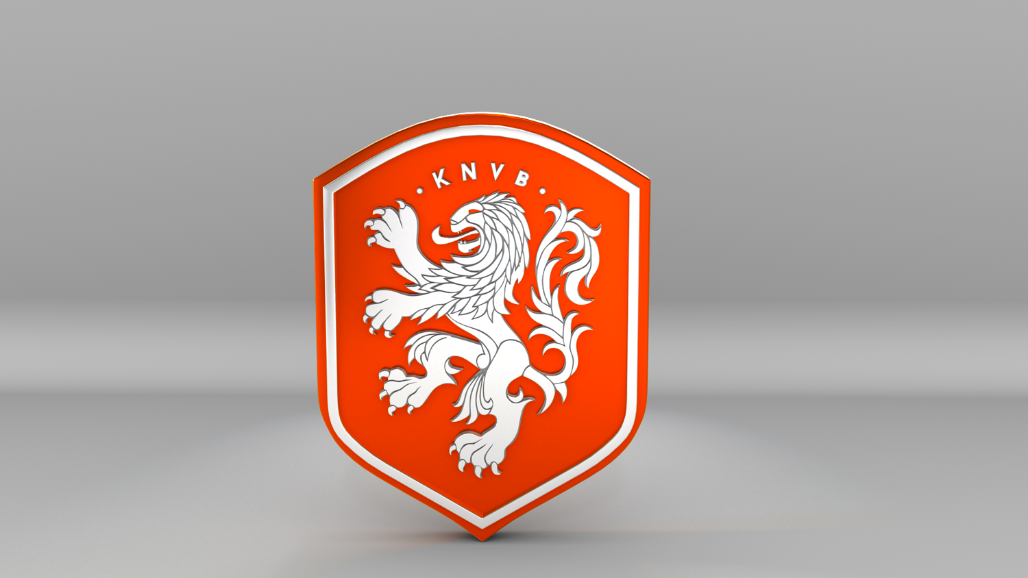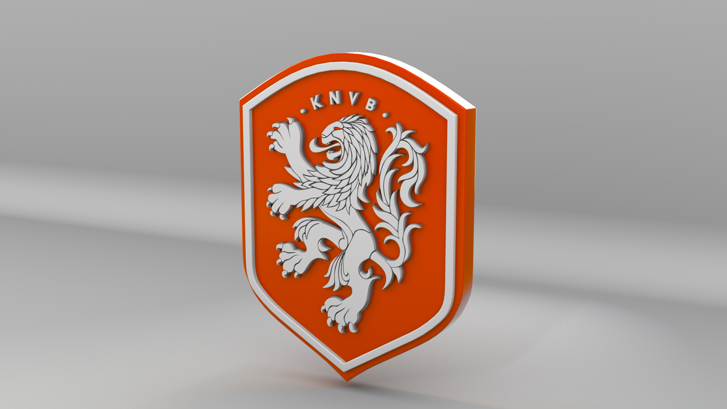"Netherlands National Soccer Team Logo, modeled and rendered in Maya using Redshift, PBR Textures included (BaseColor, Metallic, Roughness and Normal Maps).