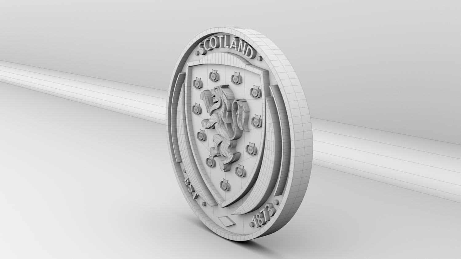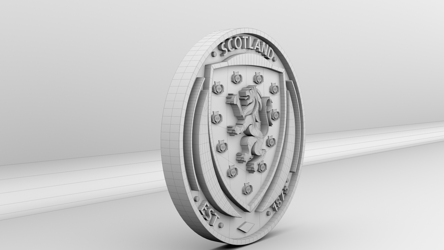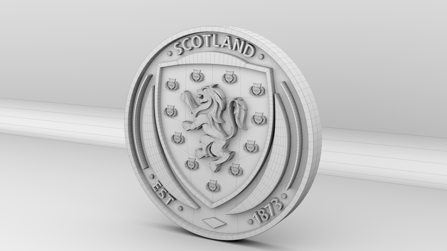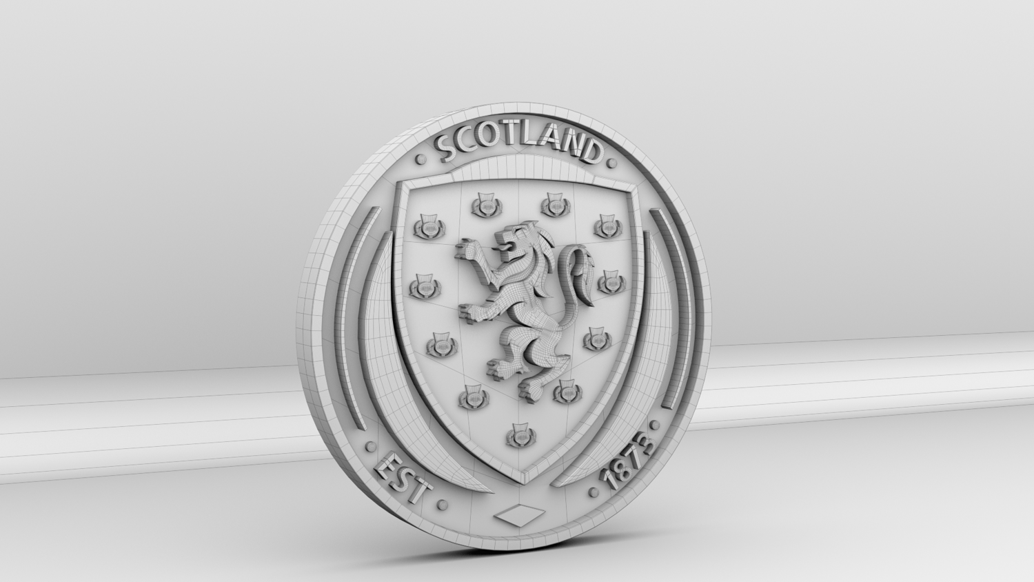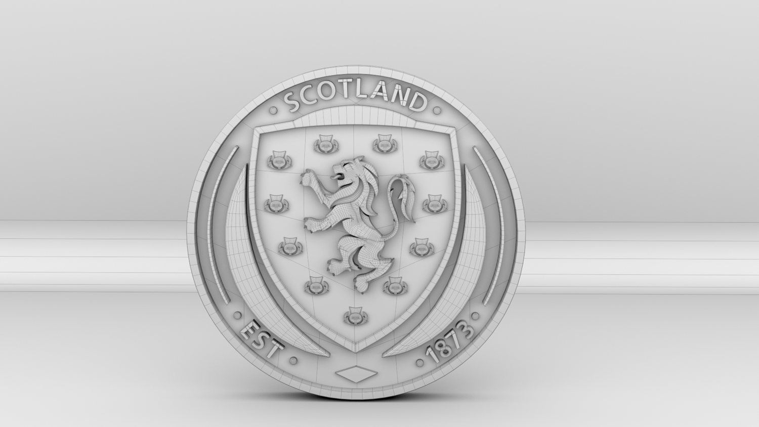 "Scotland National Soccer Team Logo, modeled and rendered in Maya using Redshift, PBR Textures included (BaseColor, Metallic, Roughness and Normal Maps).