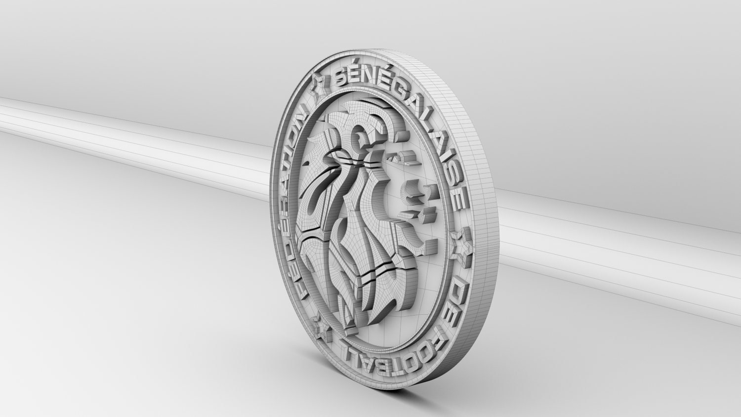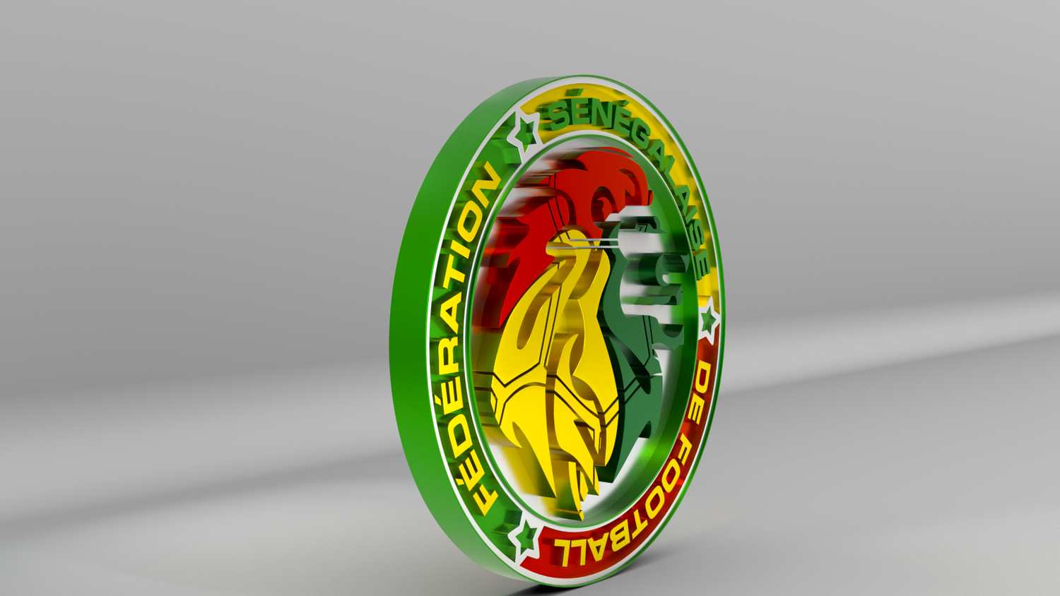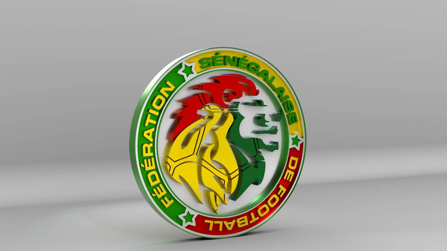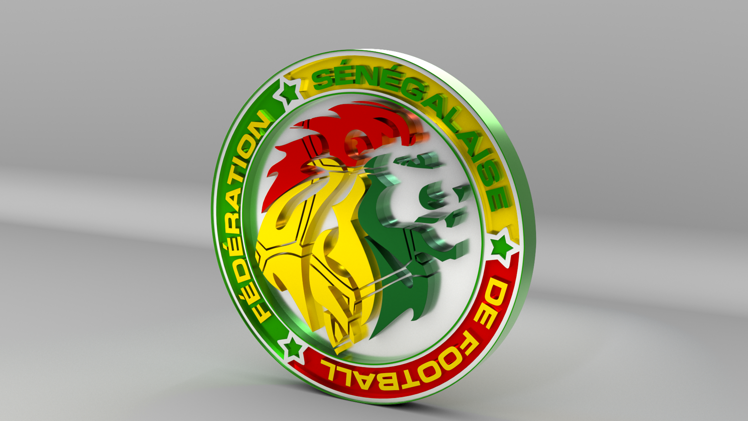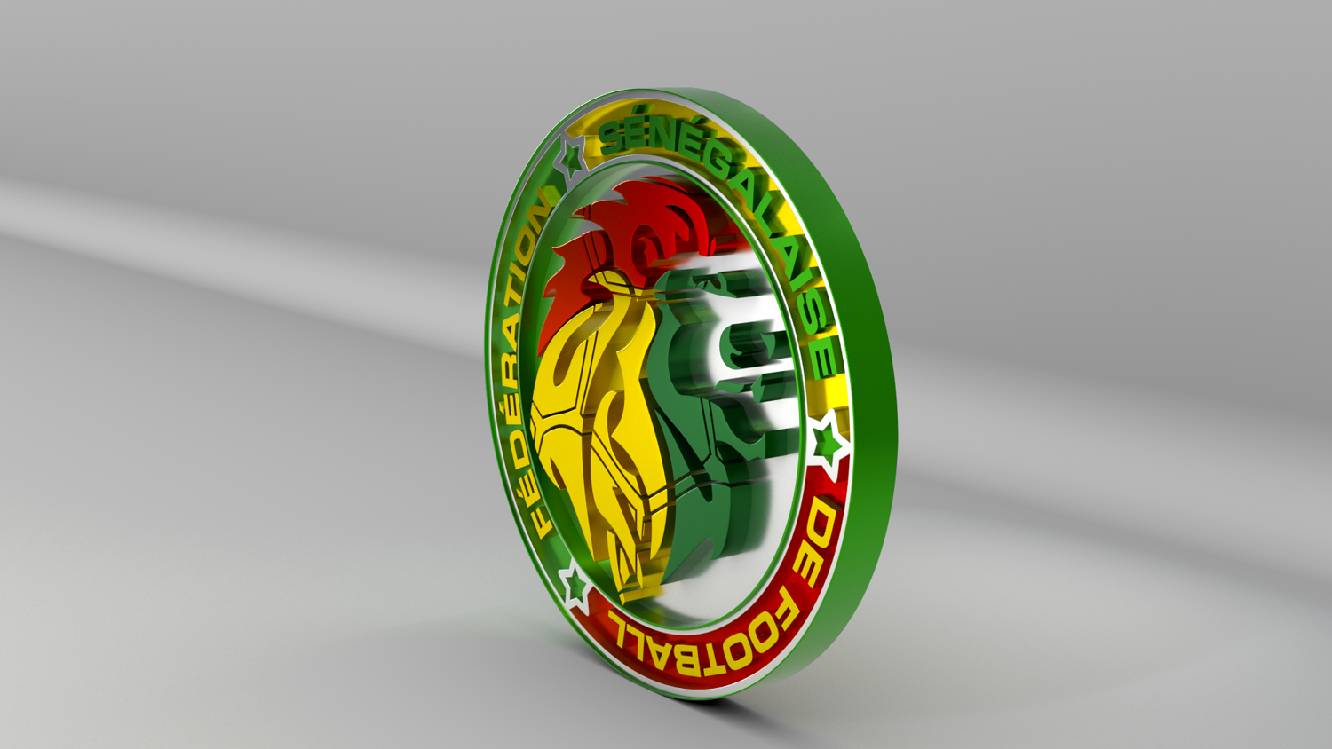 "Senegal National Soccer Team Logo, modeled and rendered in Maya using Redshift, PBR Textures included (BaseColor, Metallic, Roughness and Normal Maps).
