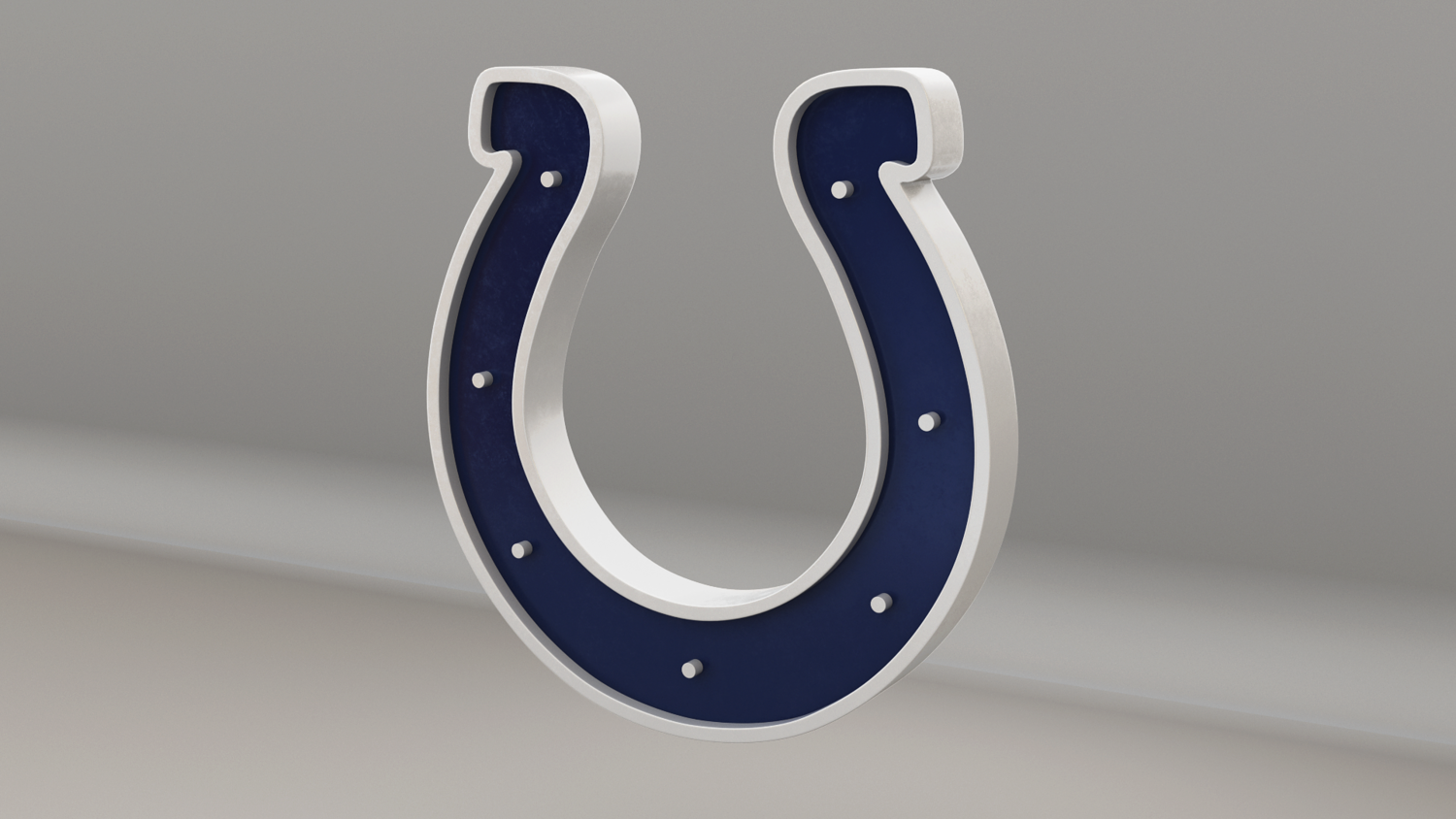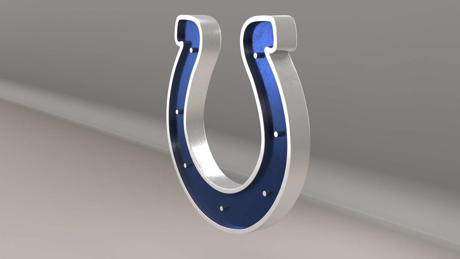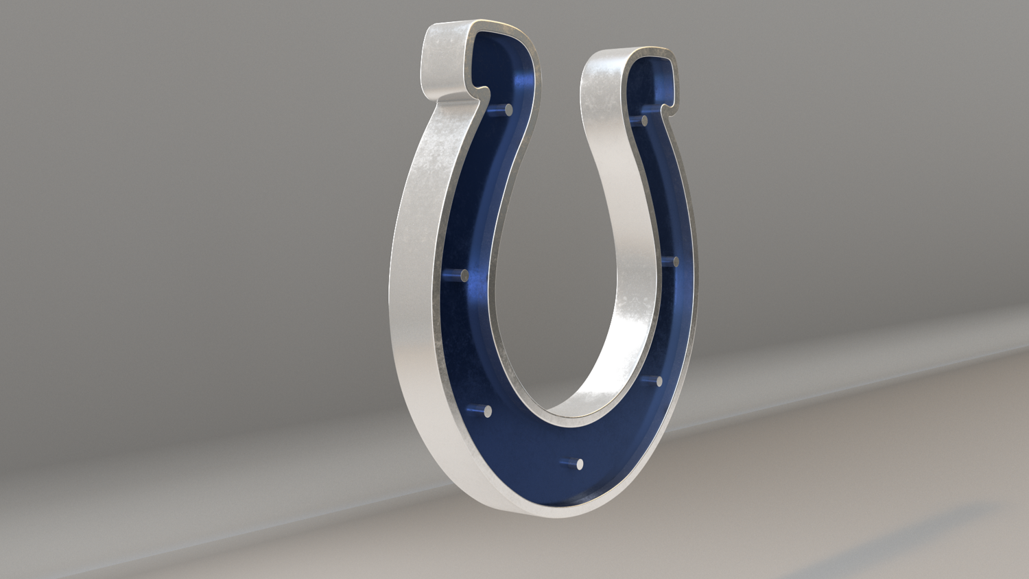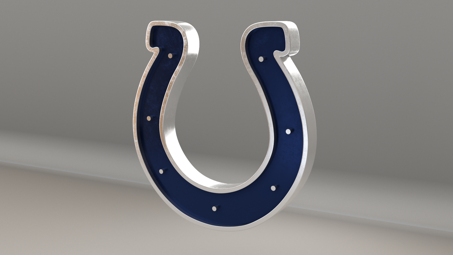 NFL Indianapolis Colts Logo, modeled and rendered in Maya using Redshift and textured in Substance Painter. It contains a base color and a packed metallic, roughness and AO. The renders are using the metallic texture, but if you don't use it you have the logo with it's original color, like the last picture.