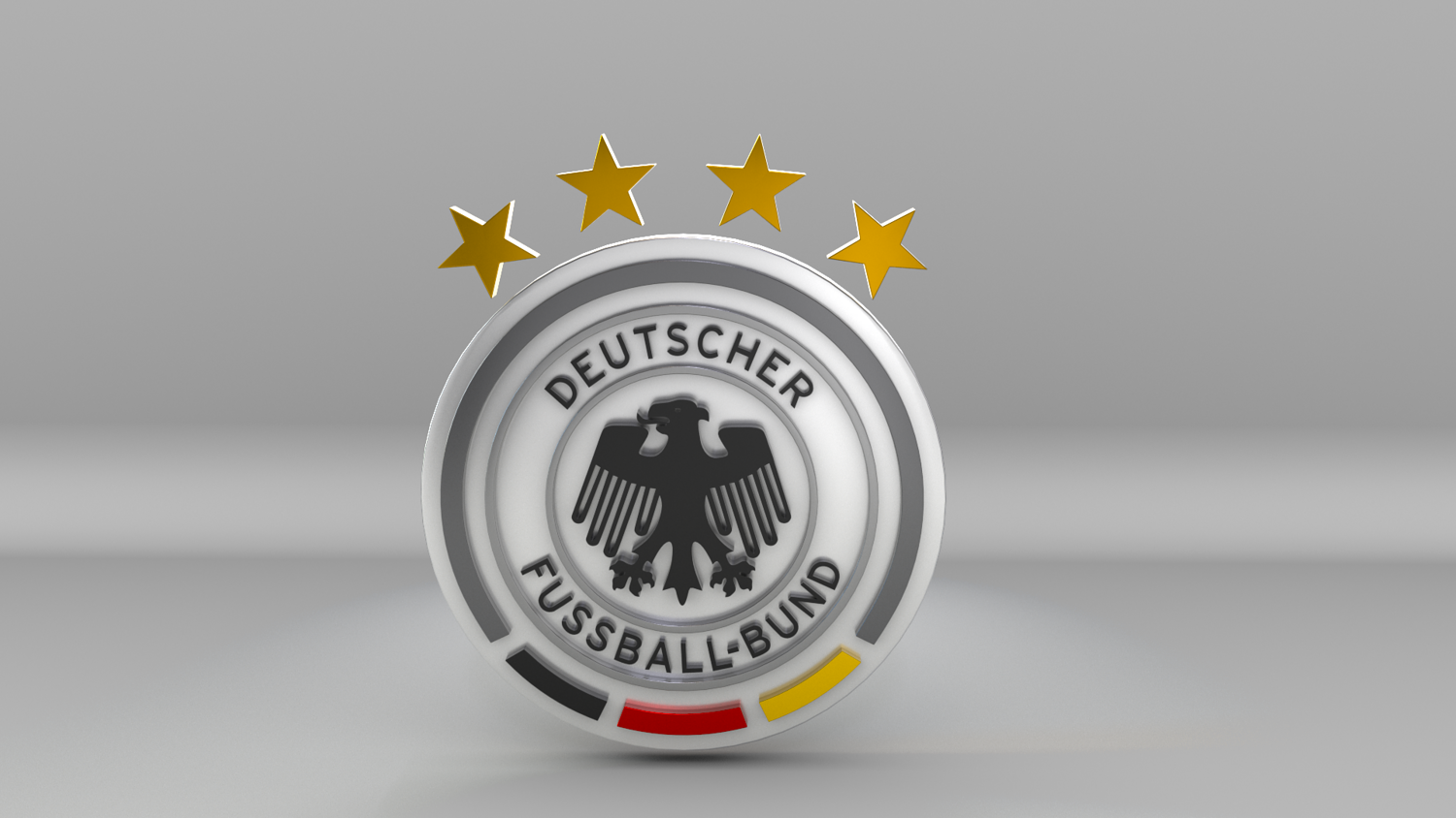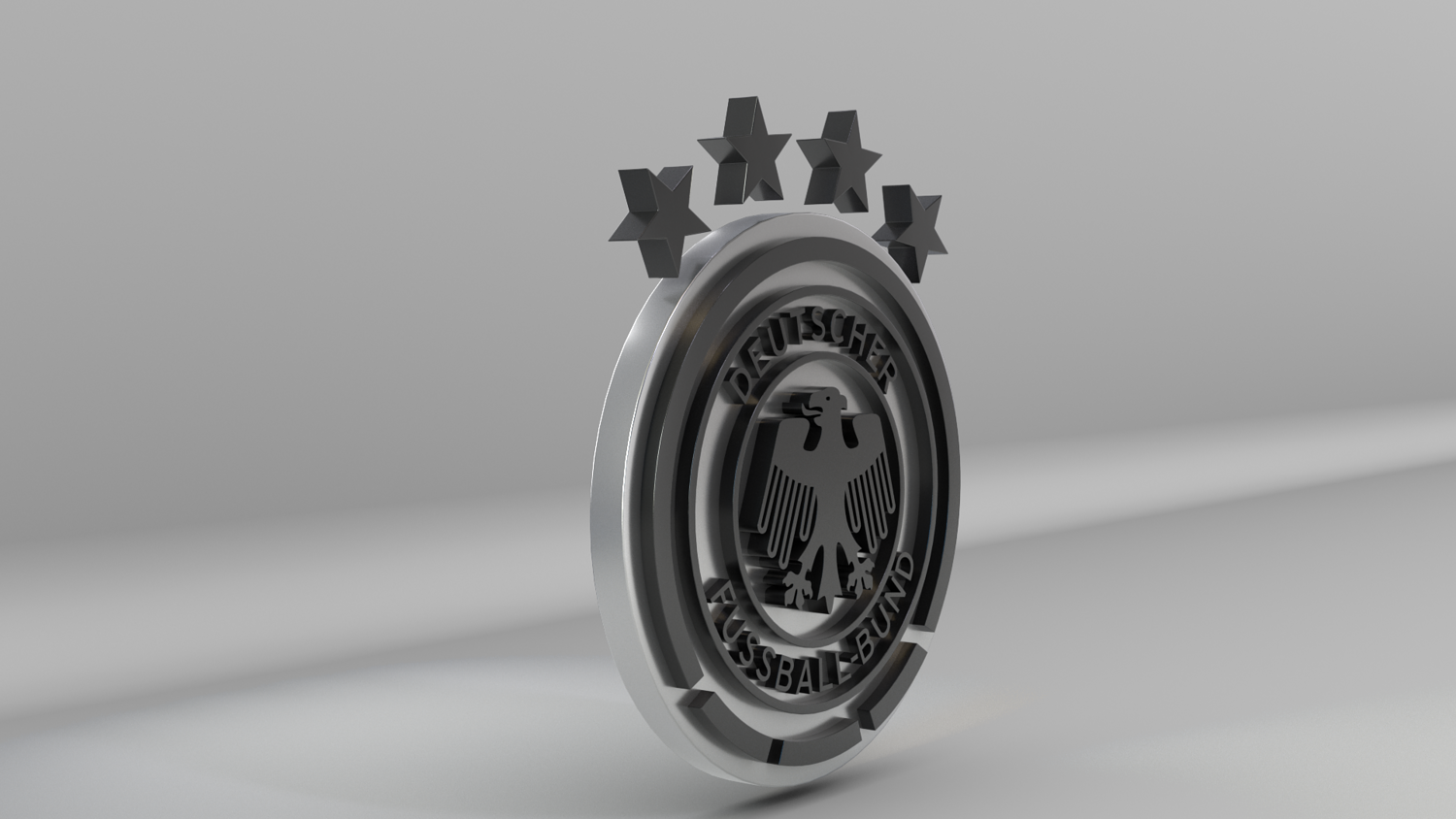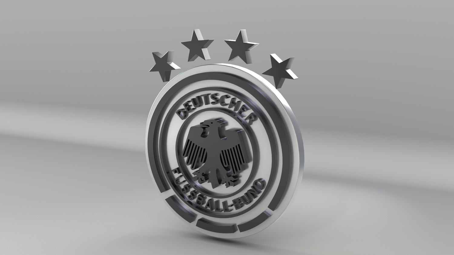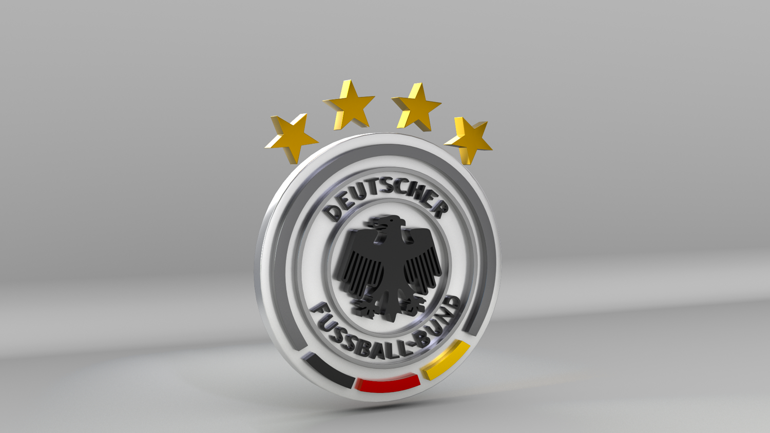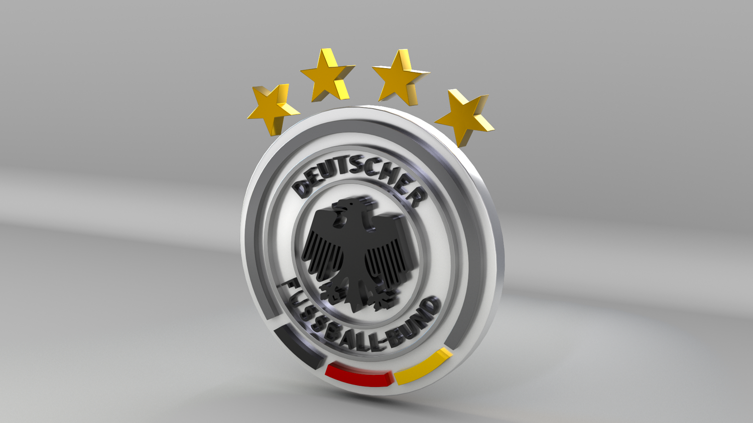 "Germany National Soccer Team Logo, modeled and rendered in Maya using Redshift, PBR Textures included (BaseColor, Metallic, Roughness and Normal Maps).
