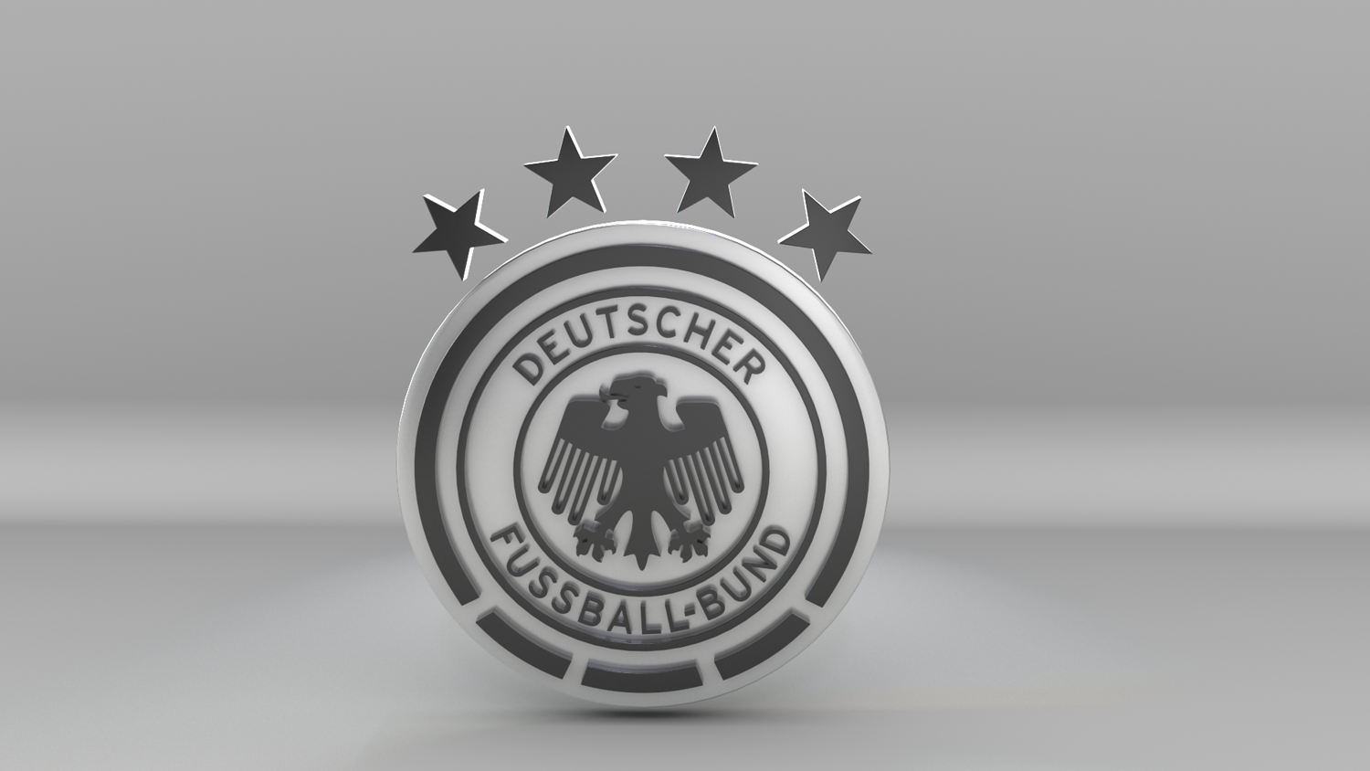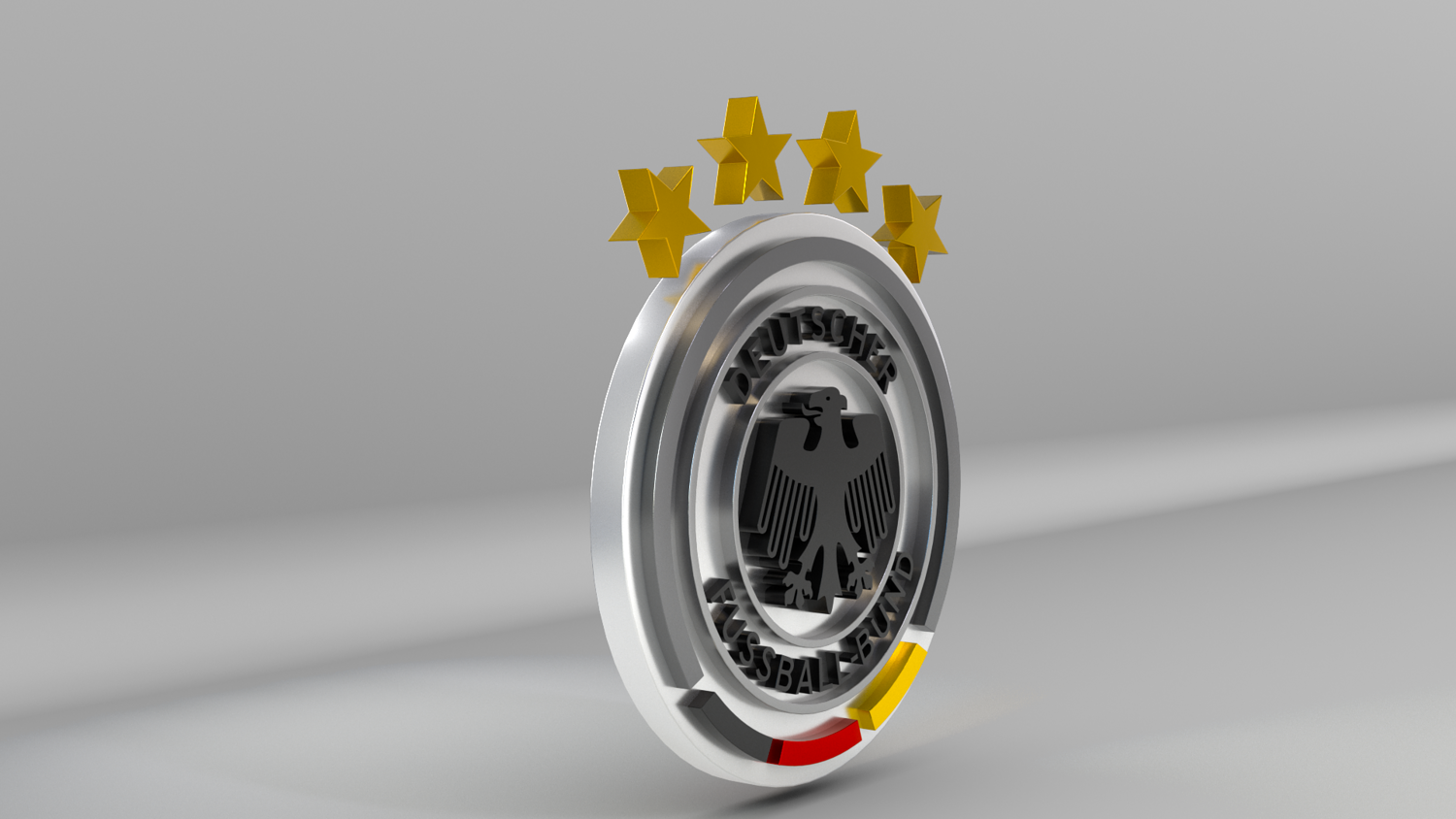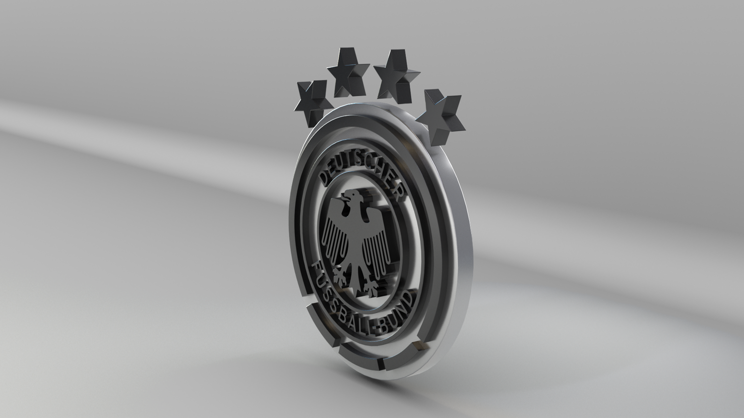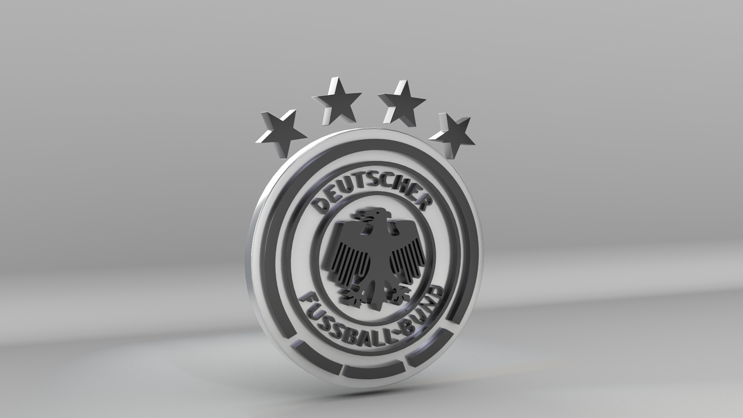 "Germany National Soccer Team Logo, modeled and rendered in Maya using Redshift, PBR Textures included (BaseColor, Metallic, Roughness and Normal Maps).