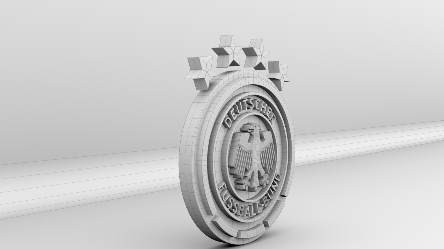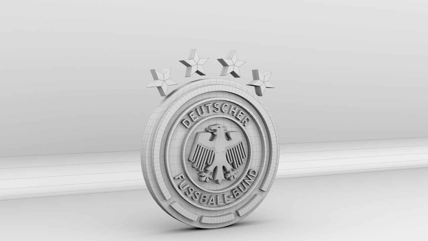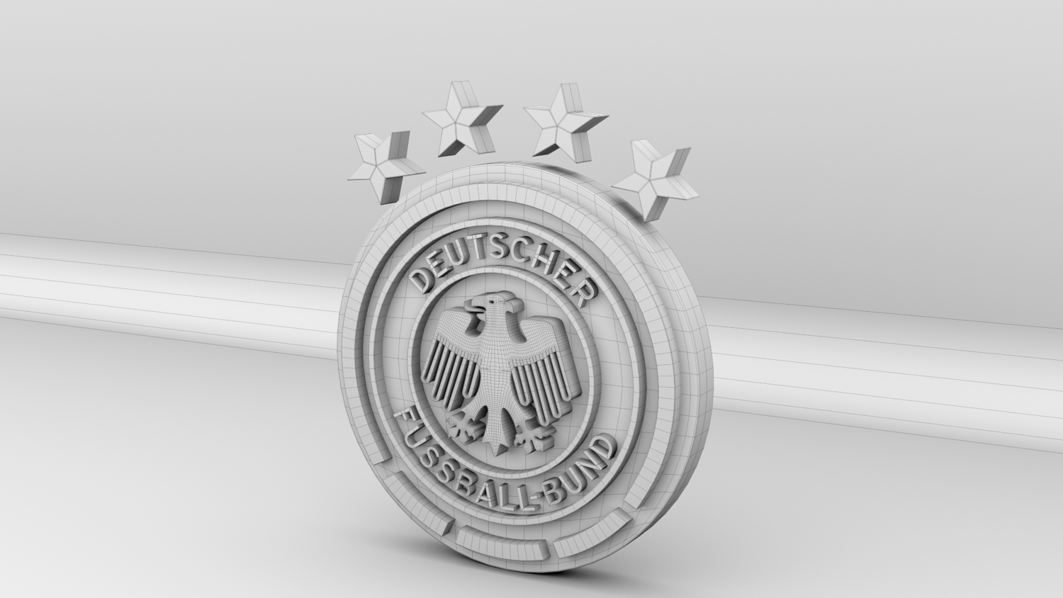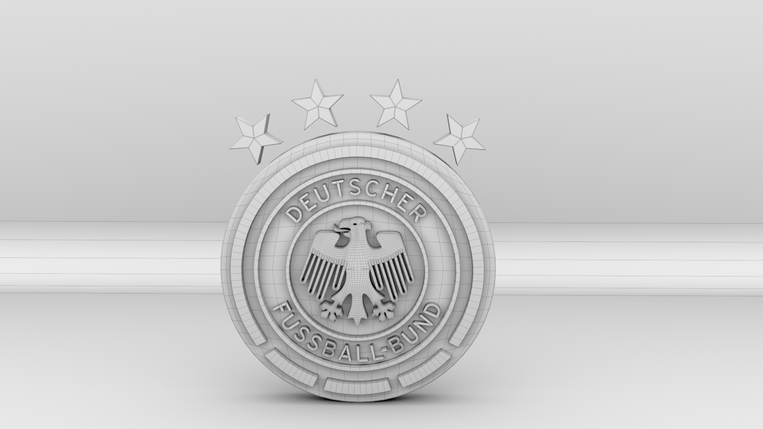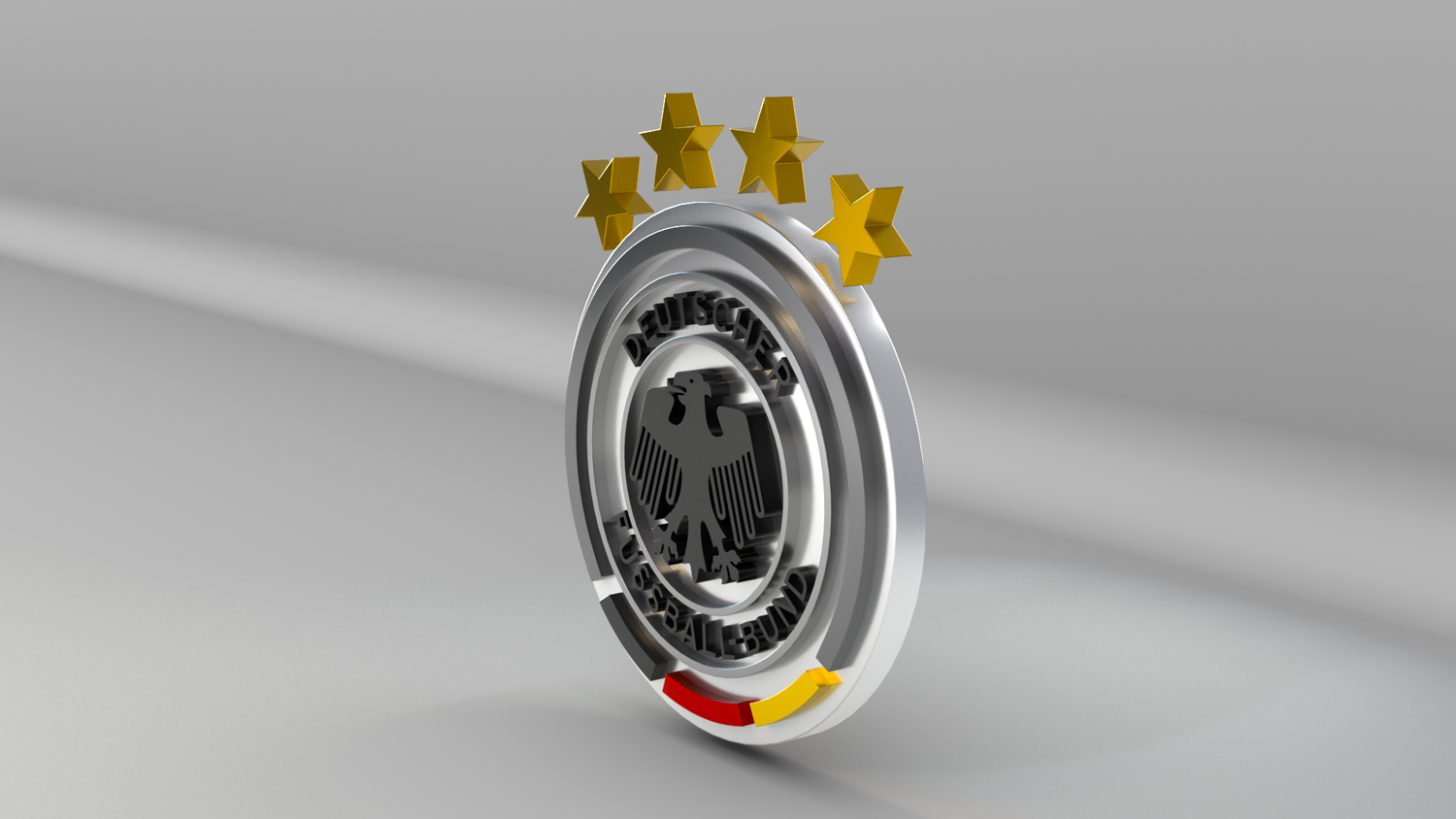 "Germany National Soccer Team Logo, modeled and rendered in Maya using Redshift, PBR Textures included (BaseColor, Metallic, Roughness and Normal Maps).