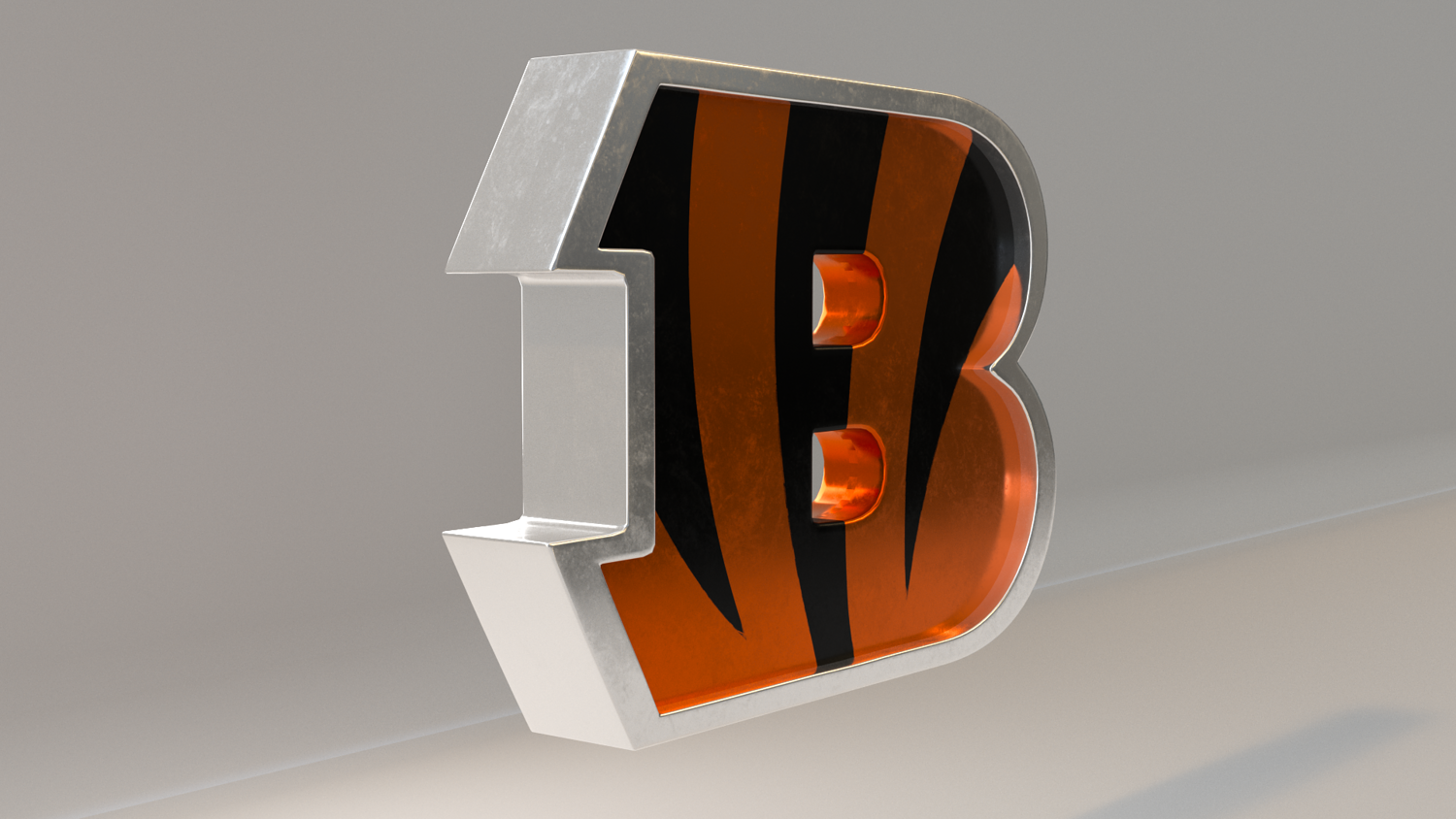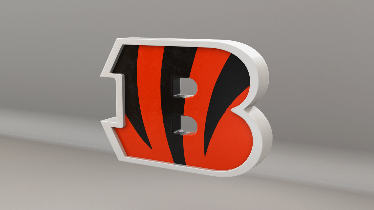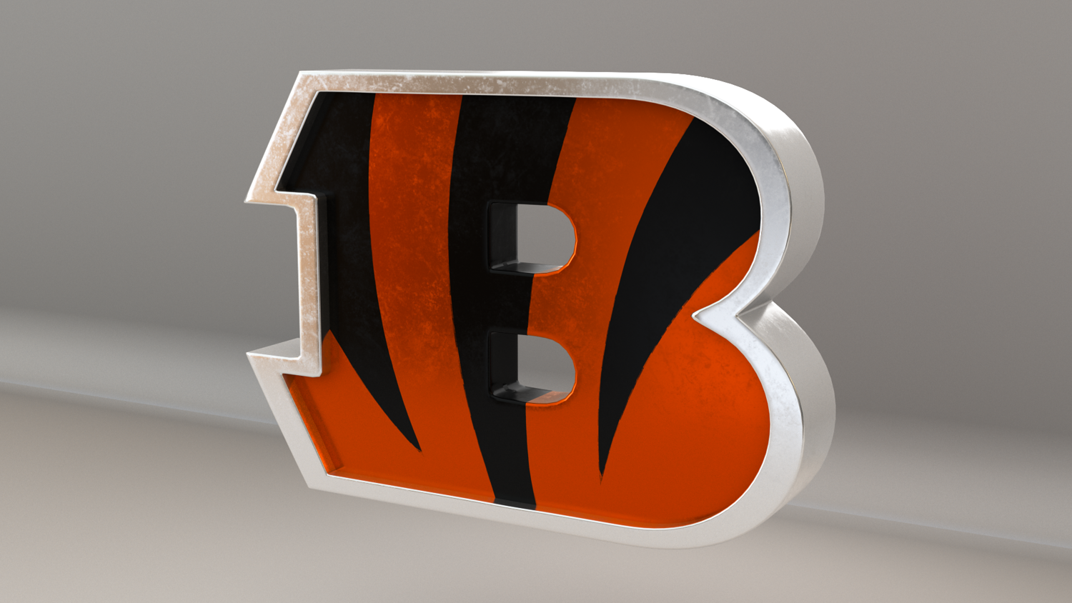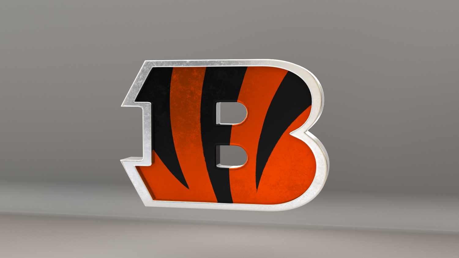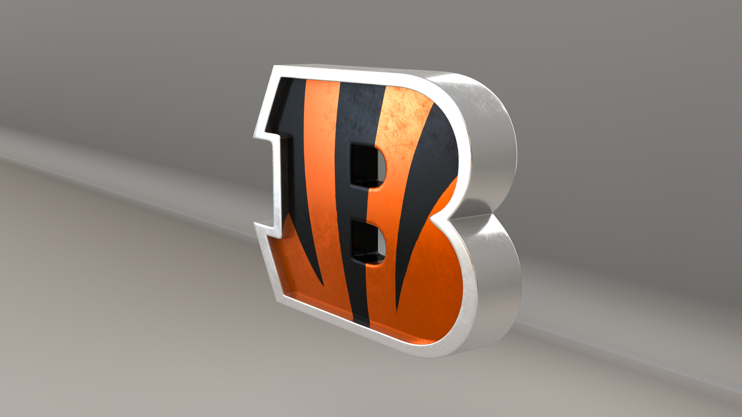 NFL Cincinnati Bengals Logo, modeled and rendered in Maya using Redshift and textured in Substance Painter. It contains a base color and a packed metallic, roughness and AO. The renders are using the metallic texture, but if you don't use it you have the logo with it's original color, like the last picture.