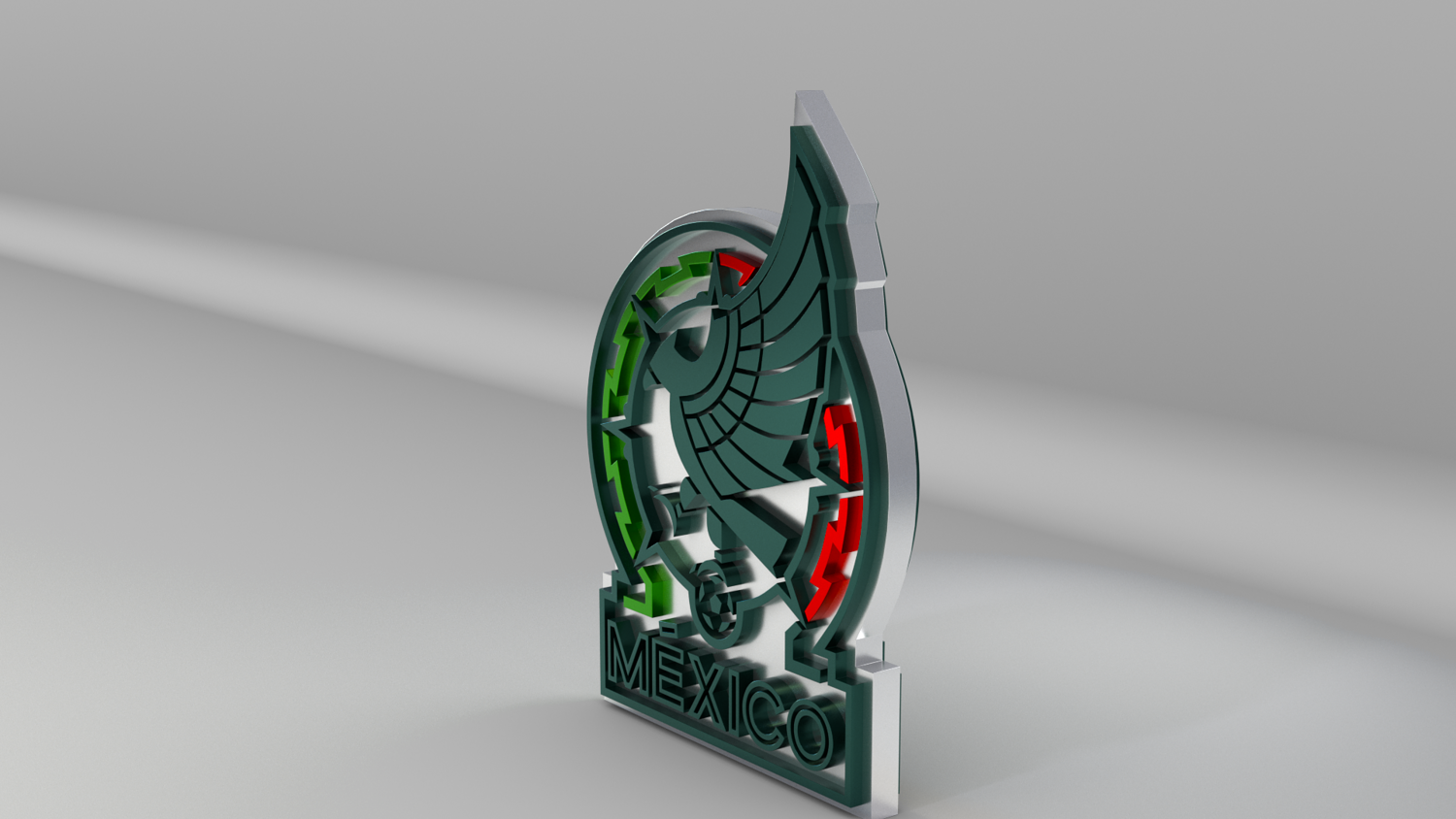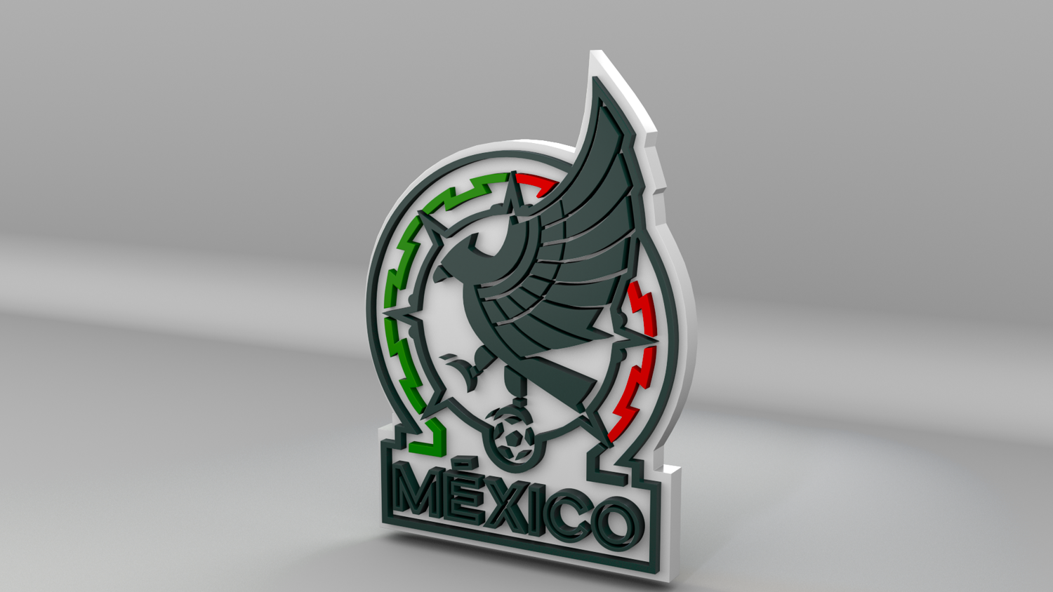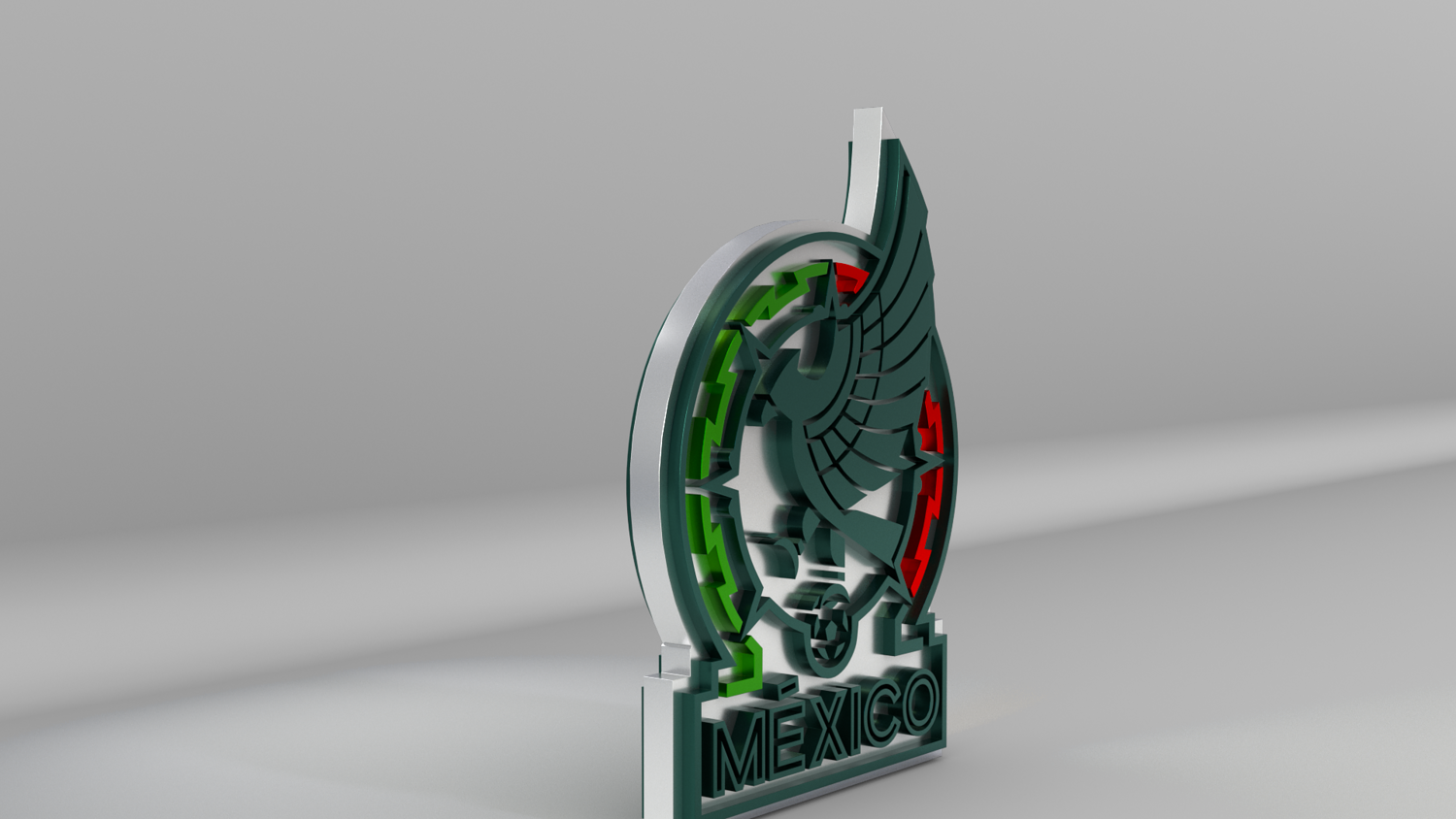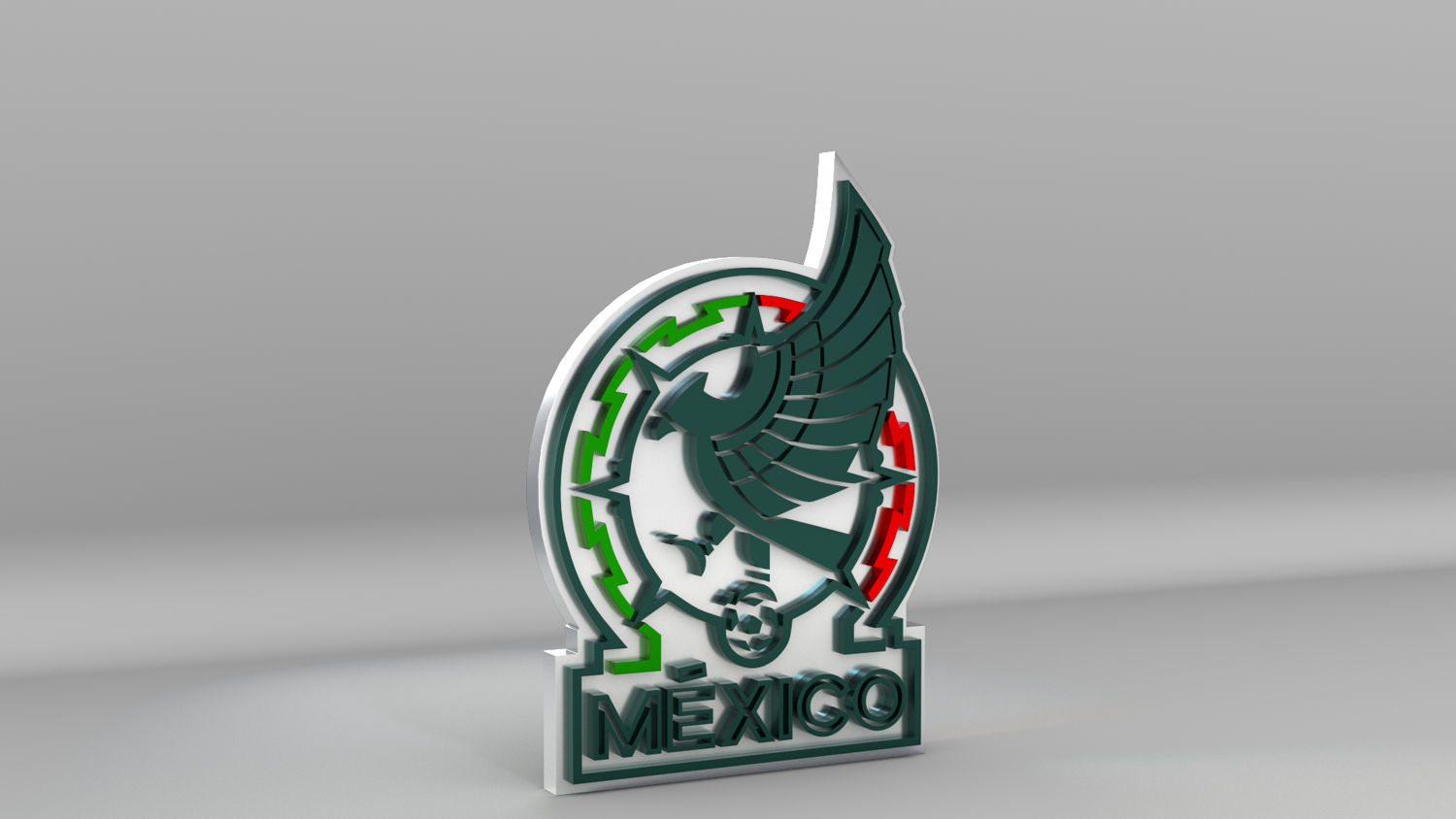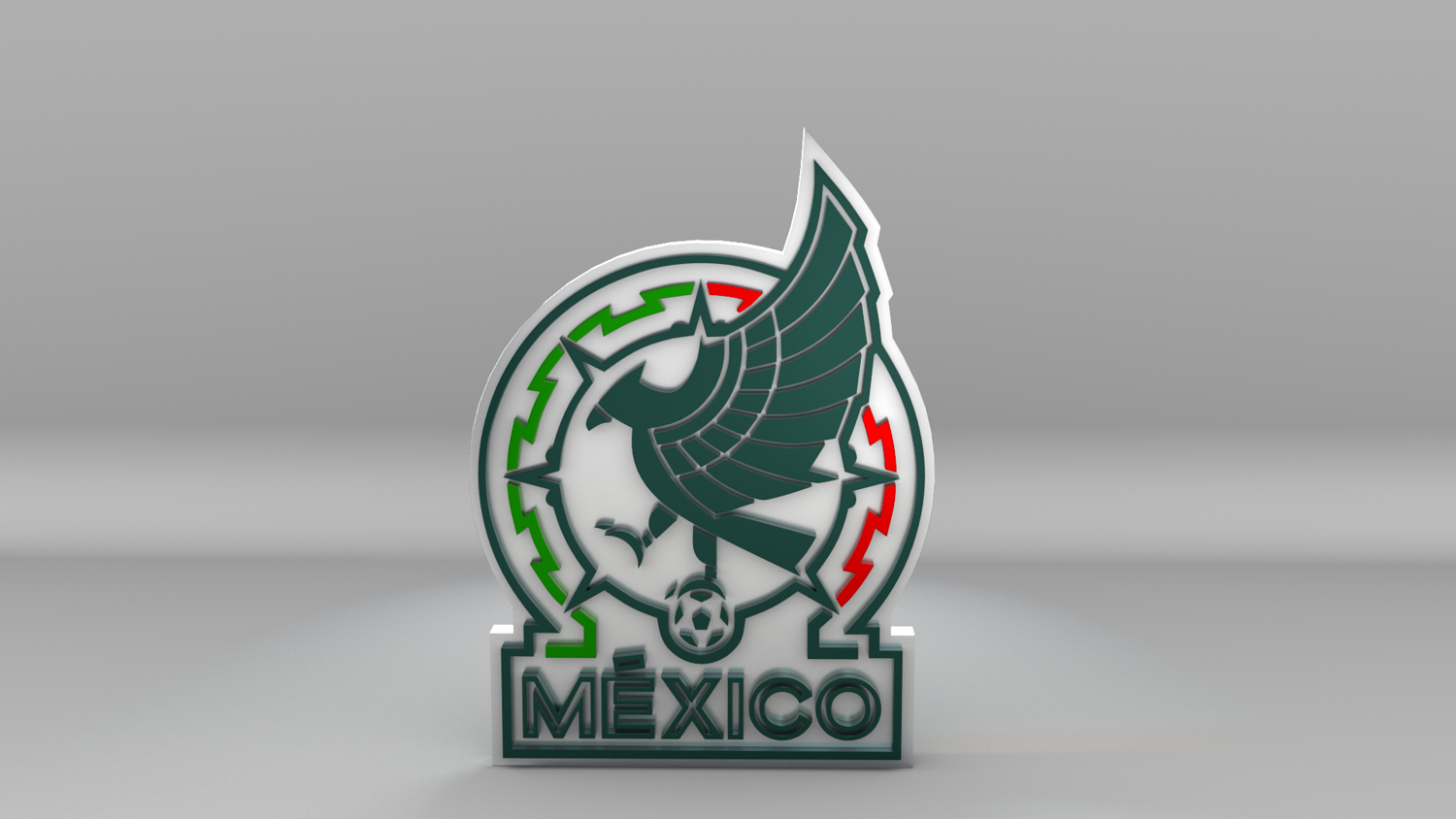 "Mexico National Soccer Team Logo, modeled and rendered in Maya using Redshift, PBR Textures included (BaseColor, Metallic, Roughness and Normal Maps).