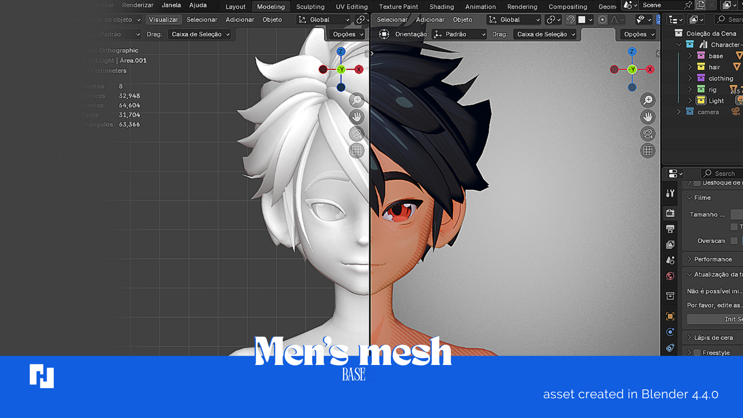 Anime style base character created in blender V 4.4.0, this resource contains male character, with UV, material and textures and rig available in the format: blend and obj