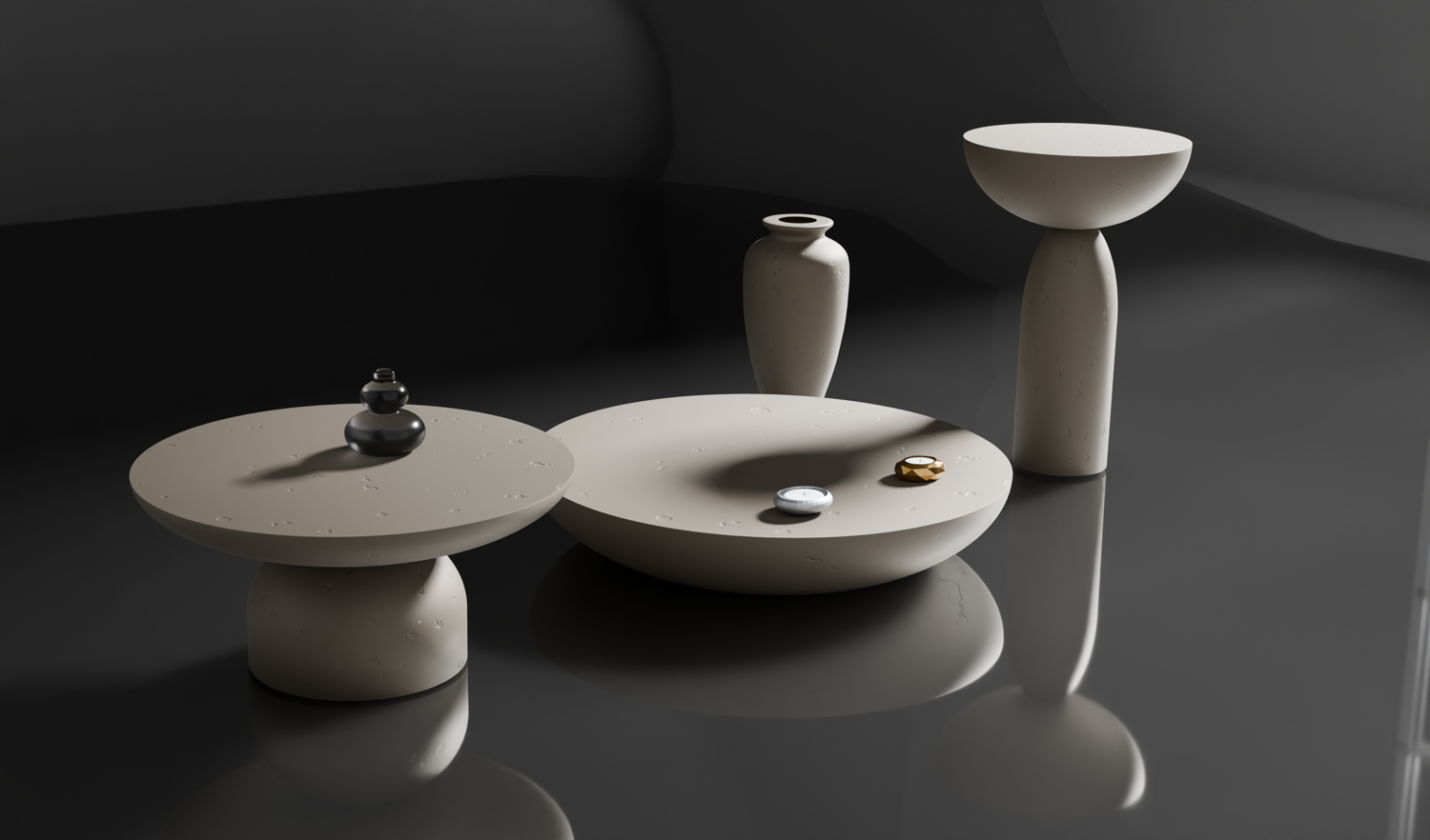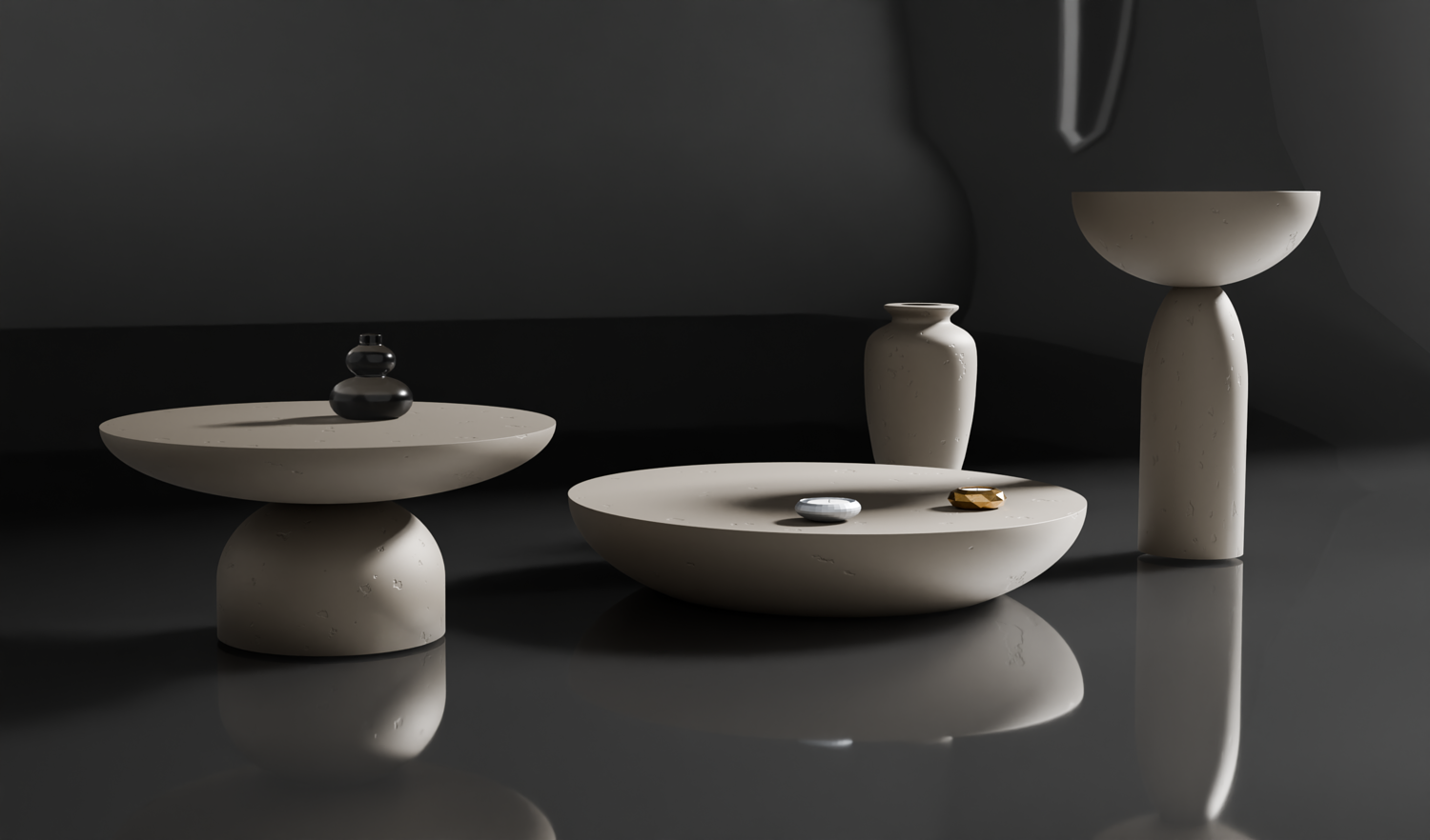 Original beton hard Table complect for coffee and decor vase candel .This model made by blender,render by Cycles.I'm a 3D artist, modeling different furniture, building, etc., this is my favorite hobby.All models are designed to fit perfectly into any interior and exterior.If you want to see all my works, you can go to the Instagram site and register there to be aware of when and what will appear on 3d drains next time.