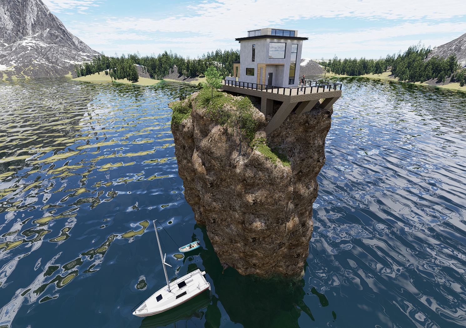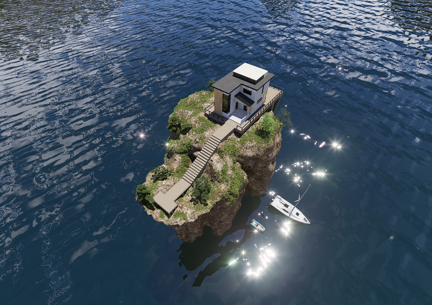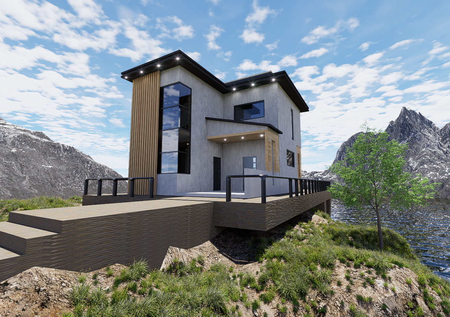 Modern House cottage and landscape big rock.This model made by blender,render by D5 .I'm a 3D artist, modeling different furniture, building, etc., this is my favorite hobby.All models are designed to fit perfectly into any interior and exterior.If you want to see all my works, you can go to the Instagram site and register there to be aware of when and what will appear on 3d drains next time.