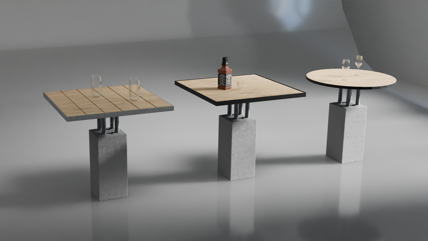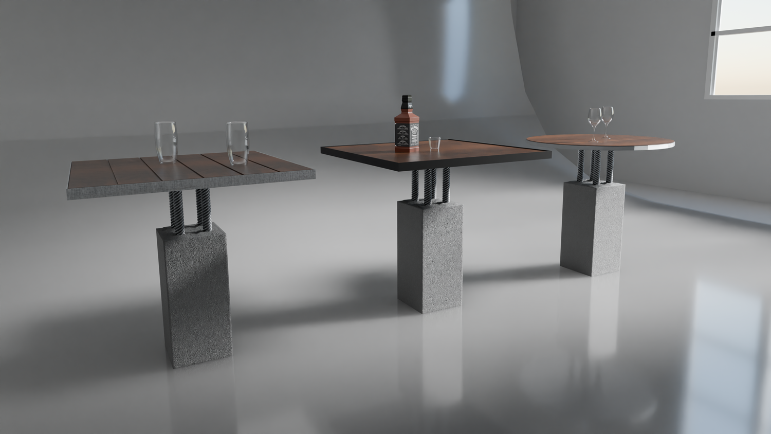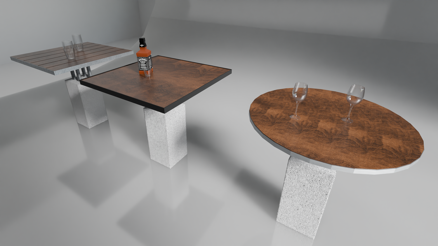 Hard Table for coffee and beer.That model made by blender, render by Cycles.Texture and material: Iron, Wood, Wood2, beton.