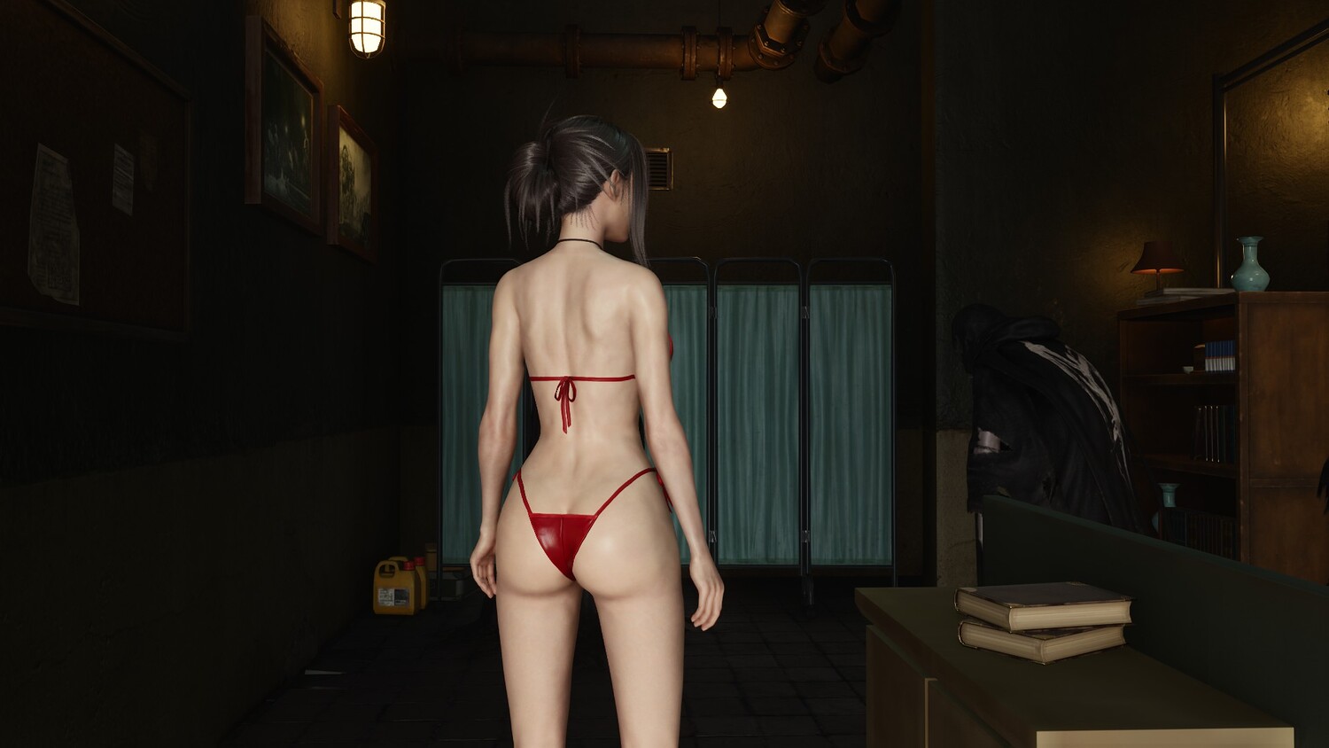 One piece swimsuit for Tifa - 6 color choice - 2 hair option, standard longhair & costa hair - barefoot variations on default black & red color