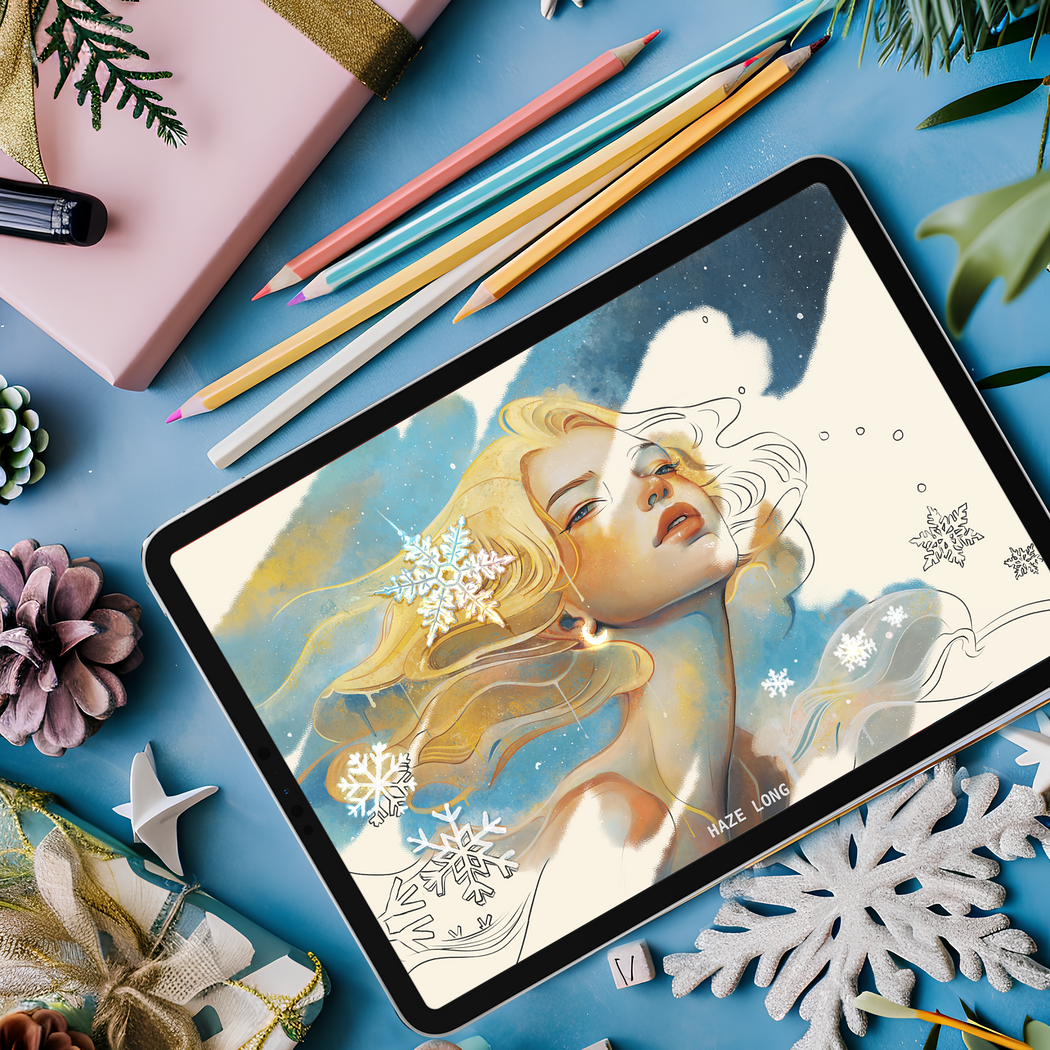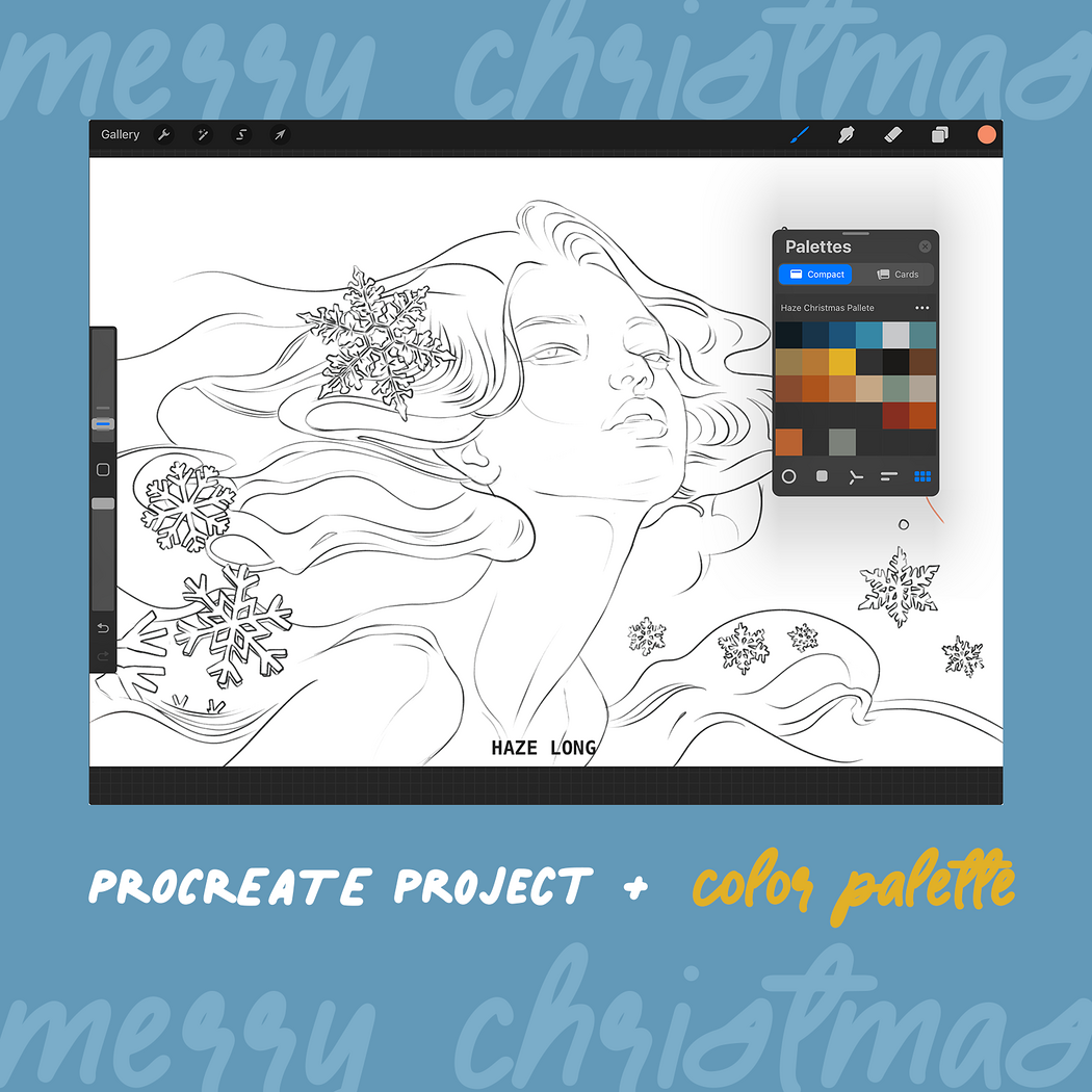 Spreading Christmas cheer and celebrating my return to Youtube + Procreate with a coloring page, color palette and tutorial.