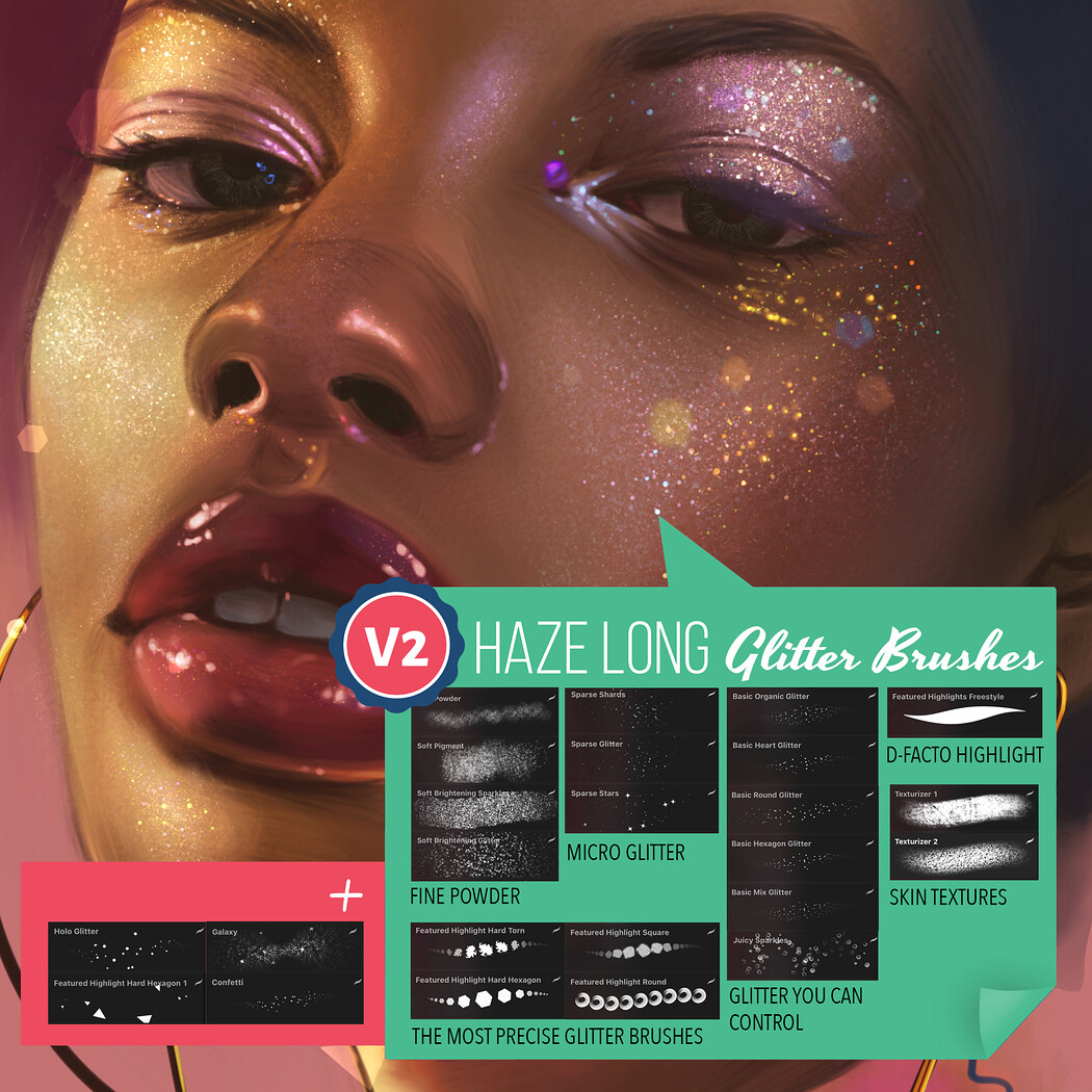 Complete brush set of 20 glitter brushes for Procreate painting, updated for Procreate 5.