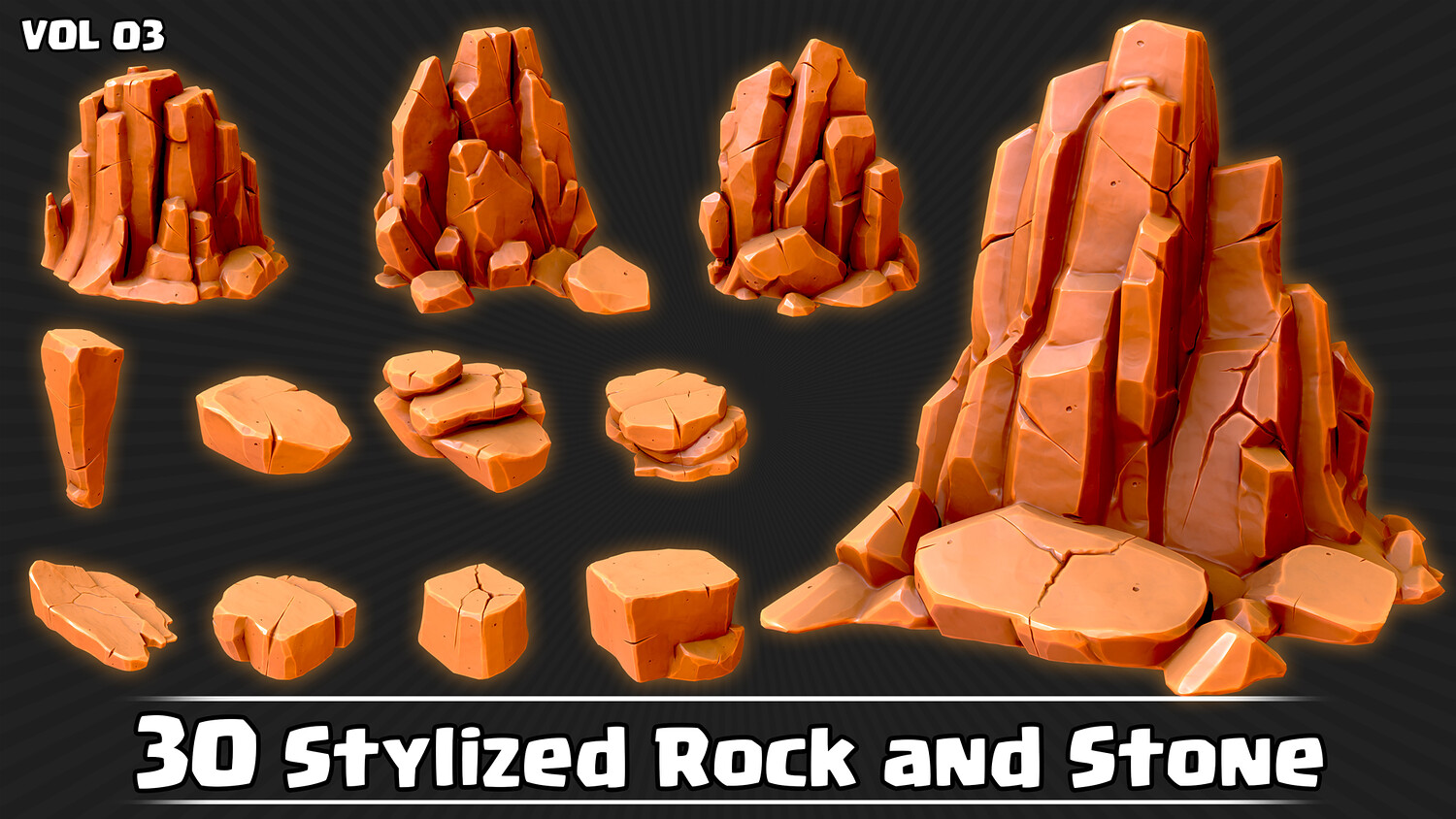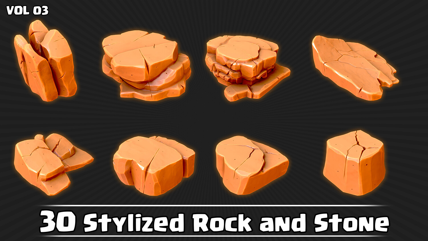 You can use 30 Stylized Rock & Stone Model in ZBRUSH - 3dsmax - Blender - Unreal Engine - Unity or any Software.