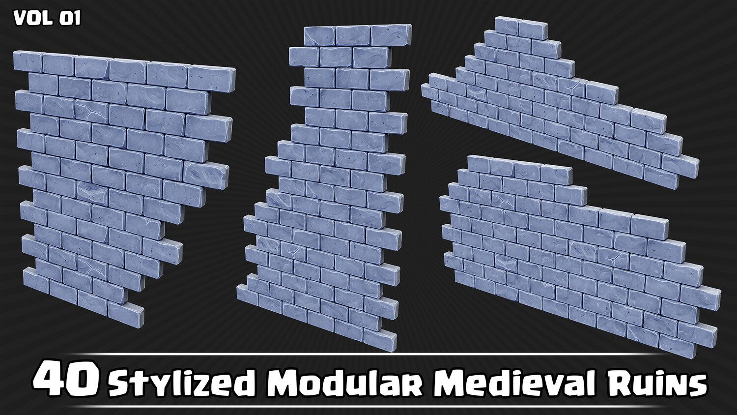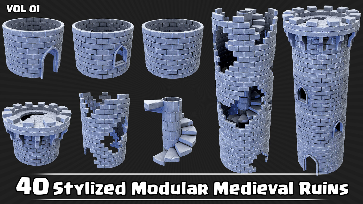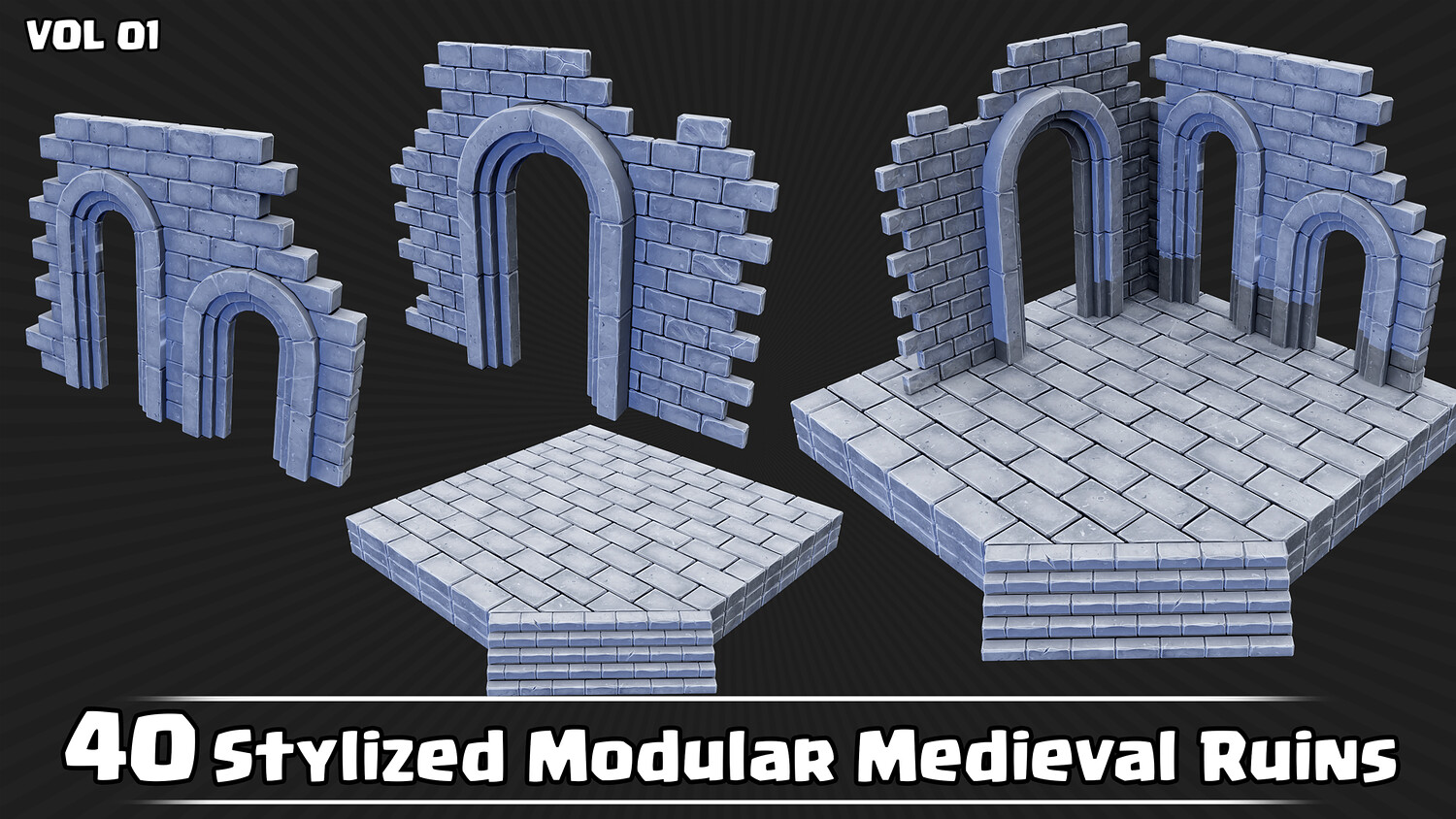 You can use 40 Stylized Modular Medieval Ruins Model in ZBRUSH - 3dsmax - Blender - Unreal Engine - Unity or any Software.