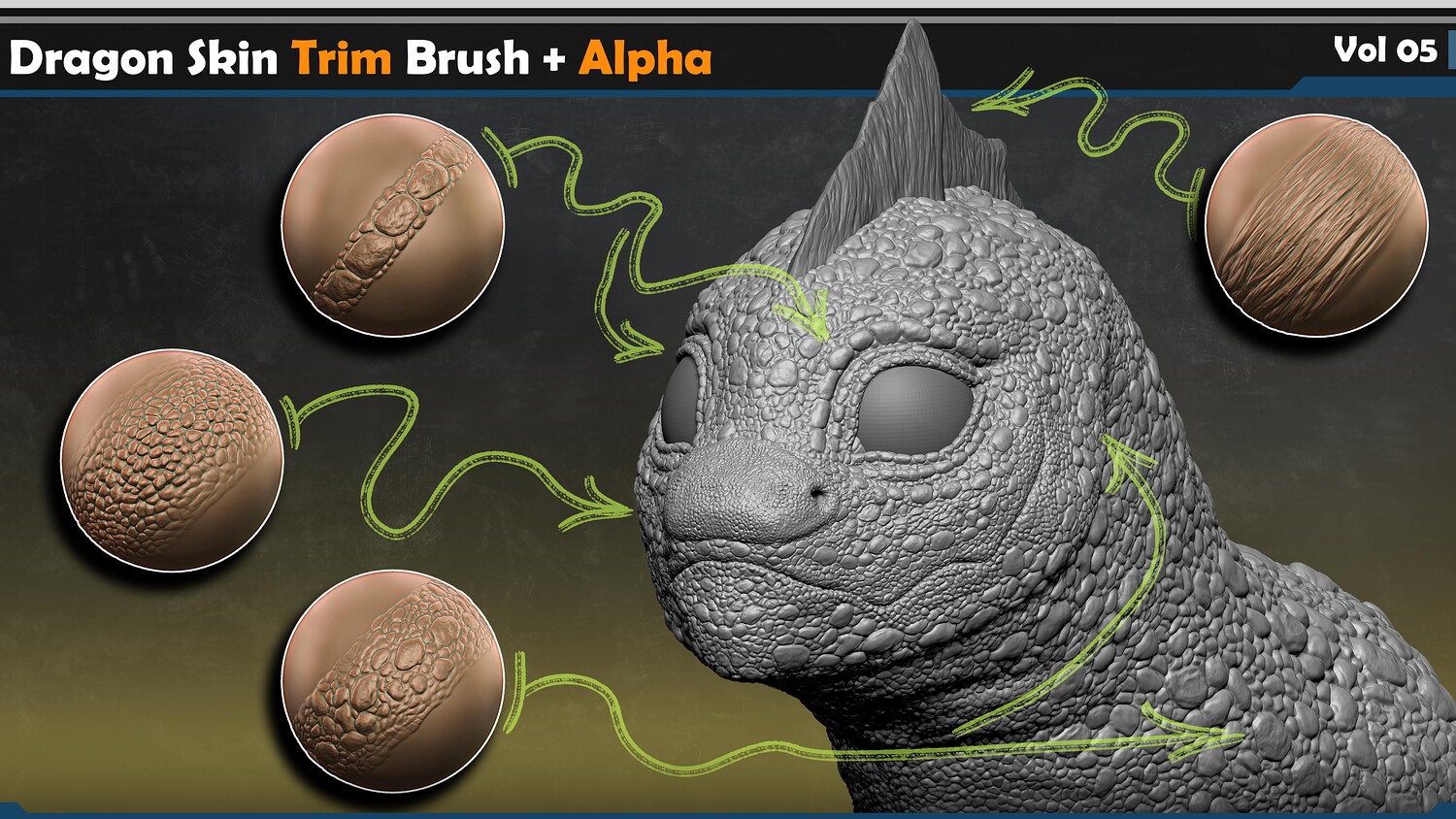 This pack is made for you — a truly unrivaled collection of dragon skin trim brushes for ZBrush, designed to save time, boost quality, and give you total control over the finest details.