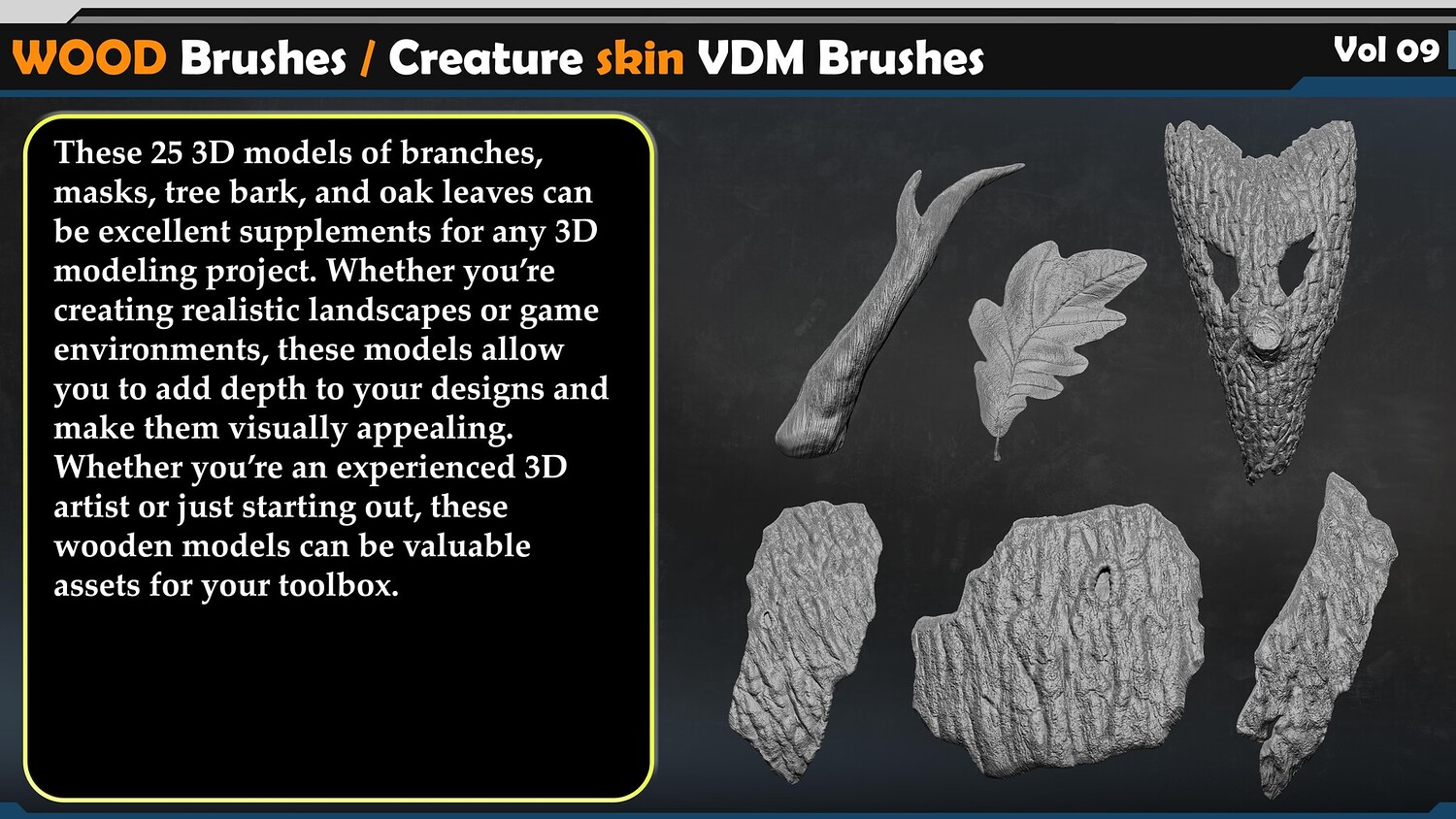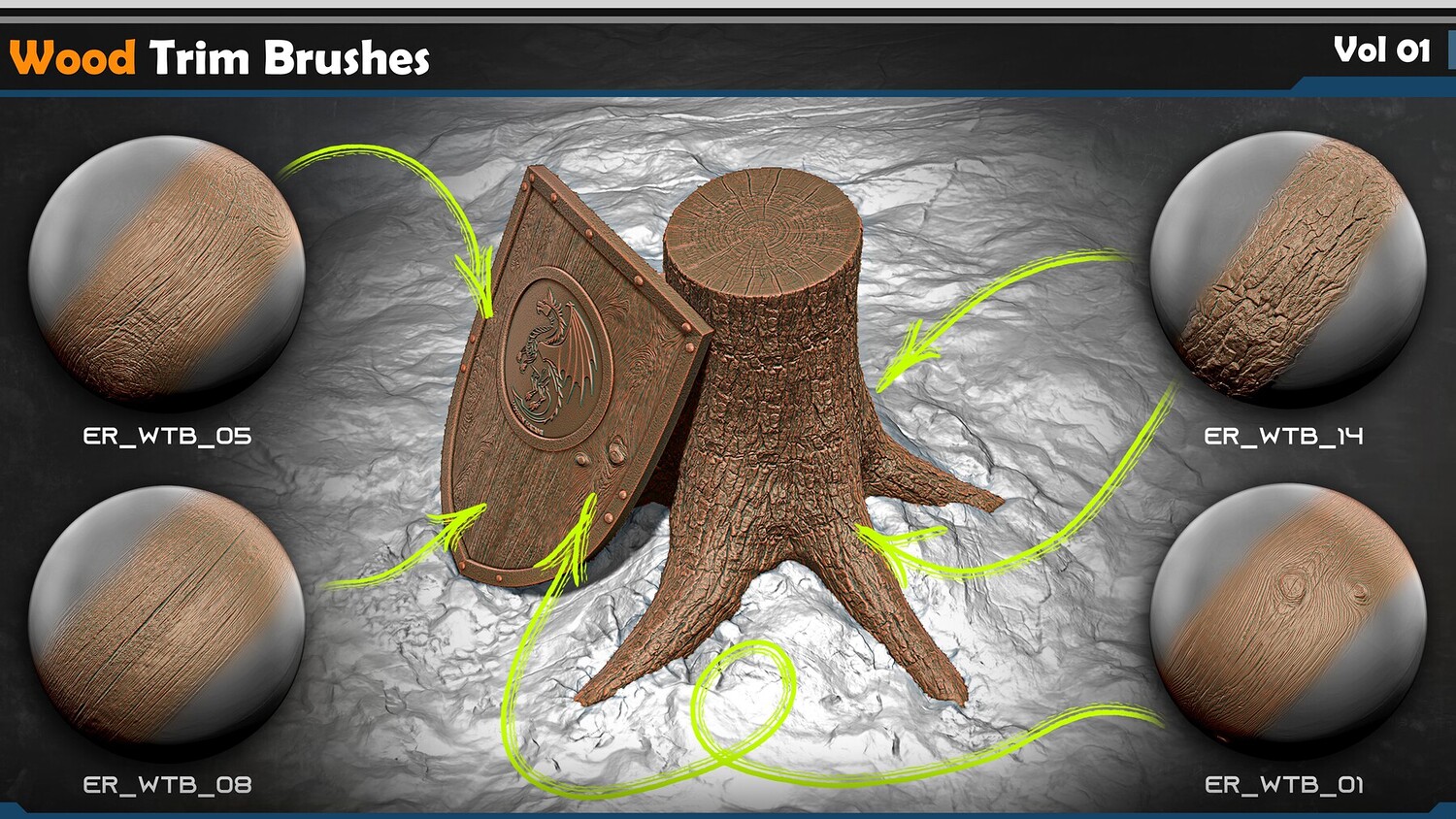 You can use this set to detail and texture a wide variety of wooden elements, including: Weapons and war equipment such as swords, shields, chariots, and other combat assets Wooden structures and architectural elements Interior and exterior props (furniture, doors, floors, walls, and decorations) Environmental assets for games, cinematic scenes, and realistic renders
